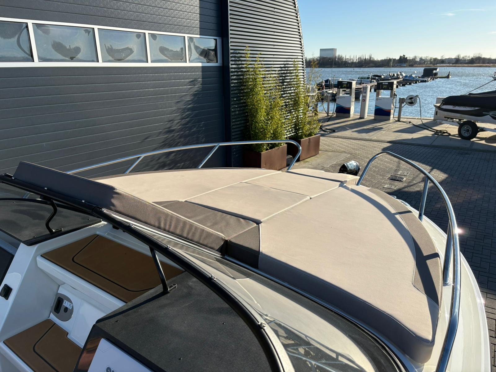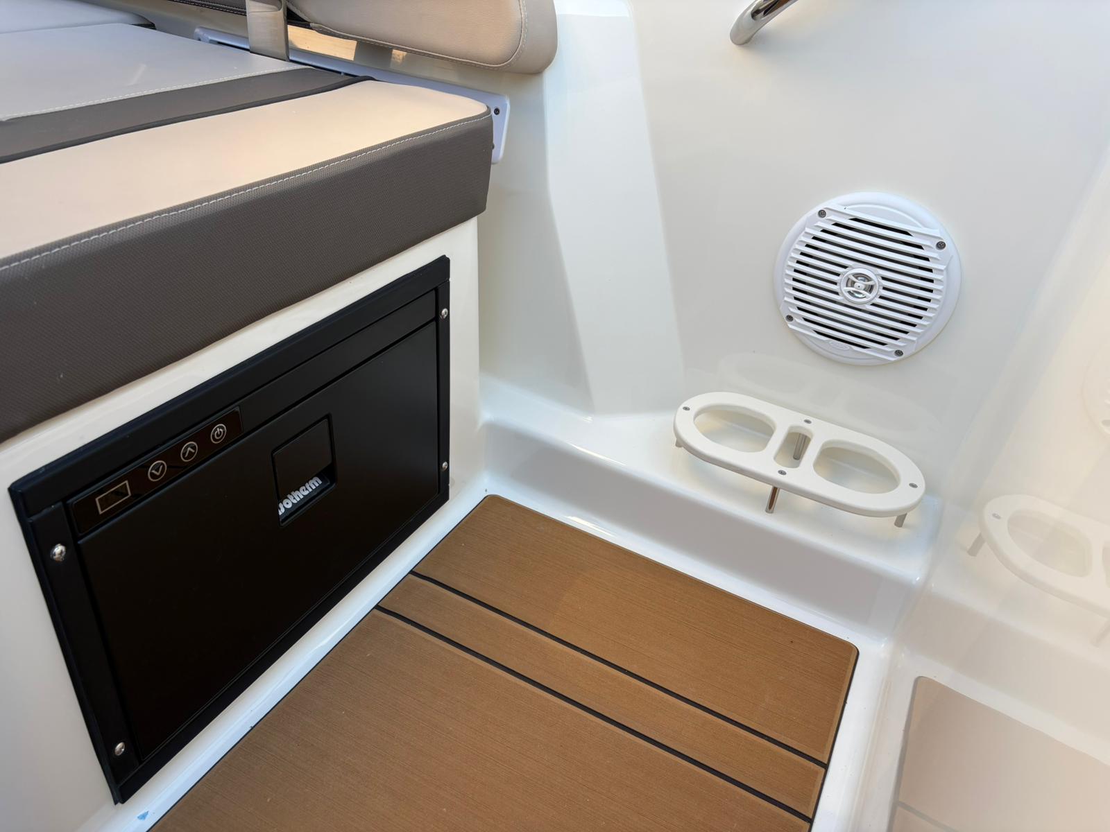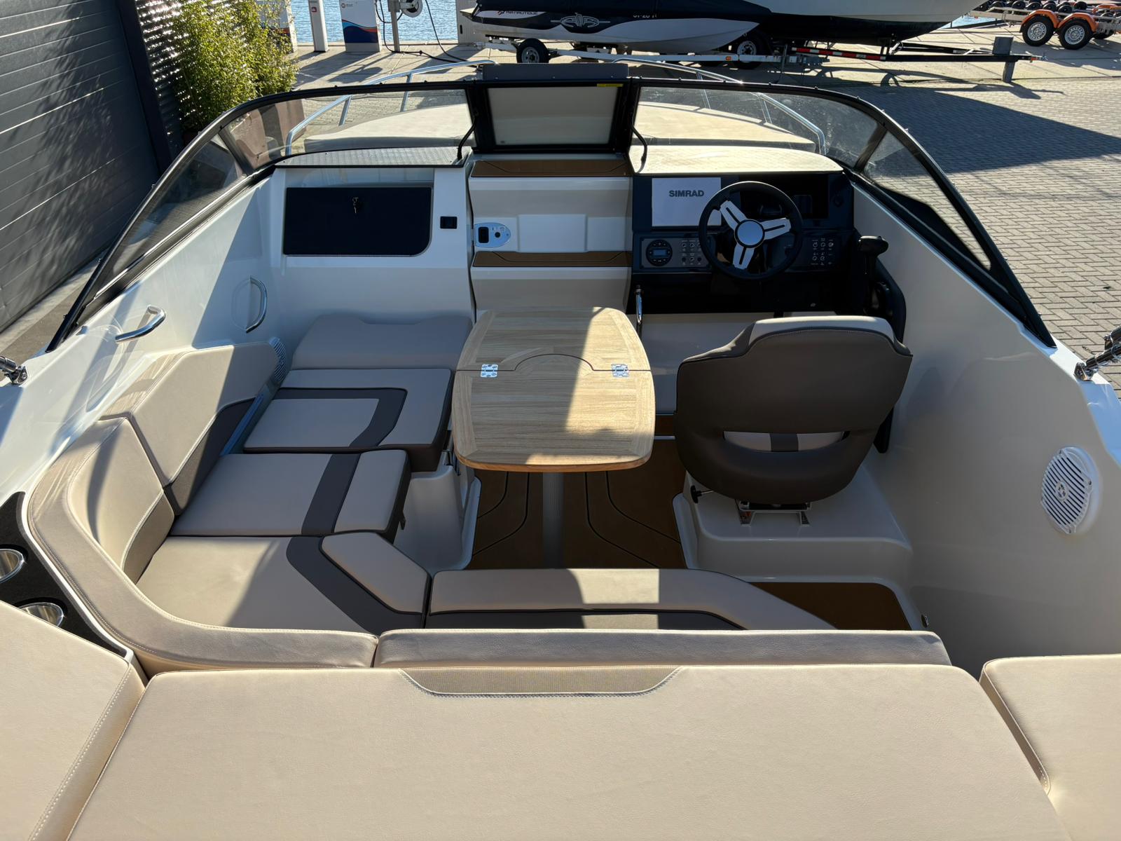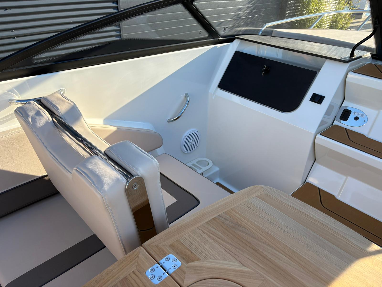 Buiten biedt de C21i alles wat je verwacht van een moderne daycruiser. De lijnen van de romp zijn strak en sportief, met een stijlvolle doorlopende voorruit die het design elegant en eigentijds maakt. Aan de achterzijde nodigt een royale zonlounge uit om achterover te leunen en te genieten van de zon, terwijl de brede instap en de geïntegreerde zwemplatforms het aan boord gaan – en weer in het water springen – moeiteloos maken. Alles voelt logisch en doordacht aan, van de zitopstelling tot aan de beschikbare bergruimte die verspreid over de hele boot aanwezig is, zelfs in de vloer.