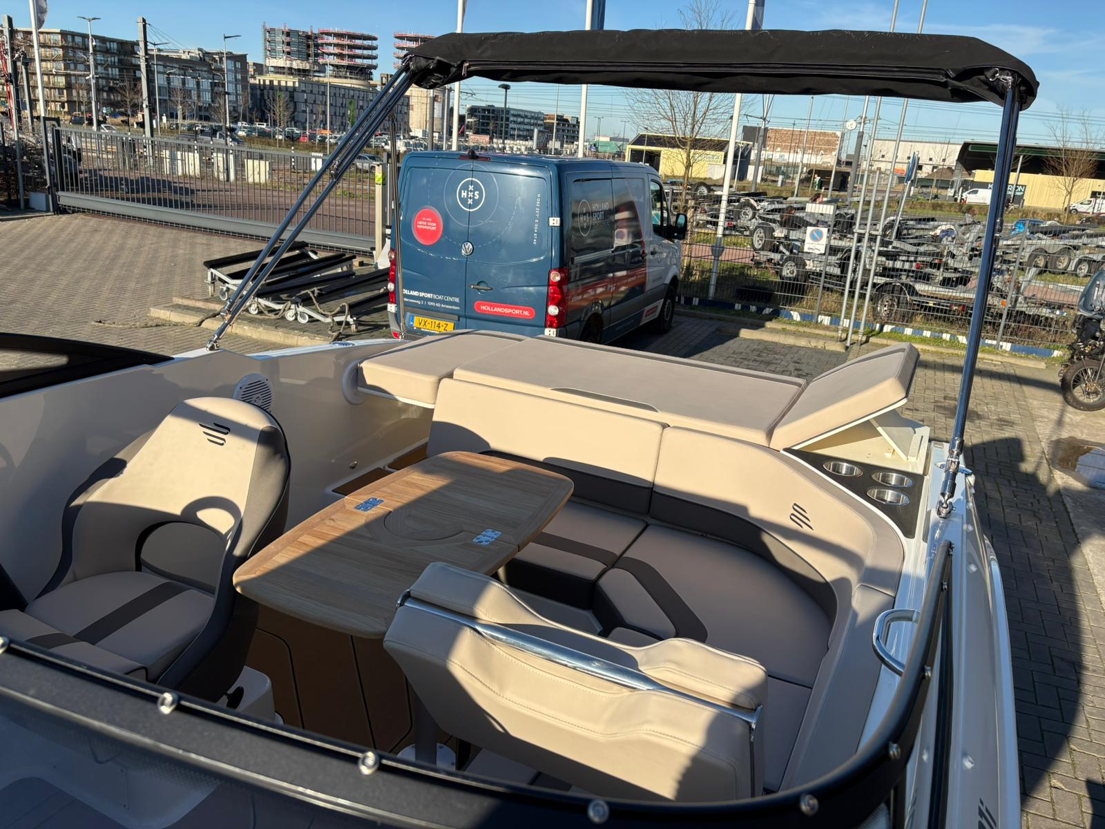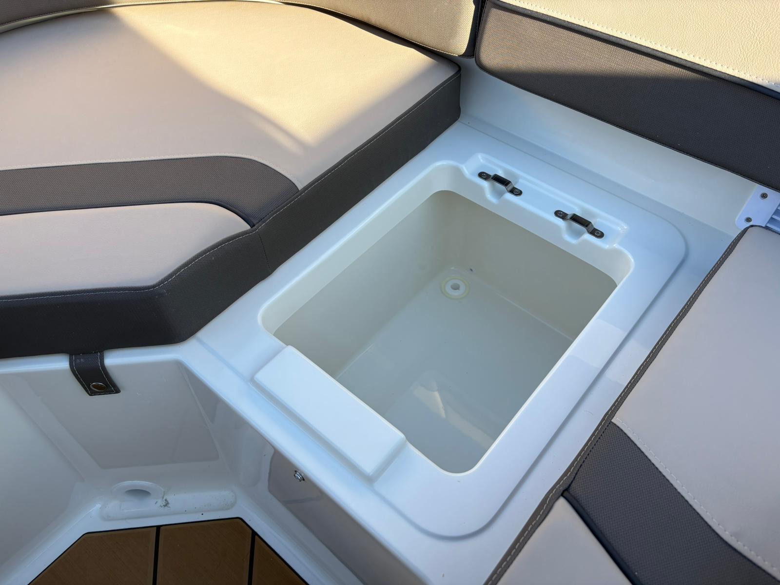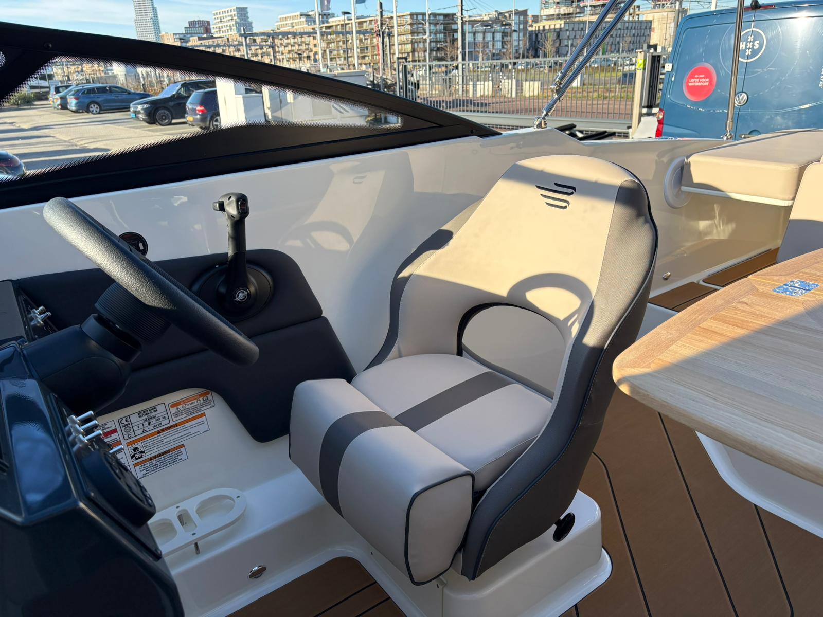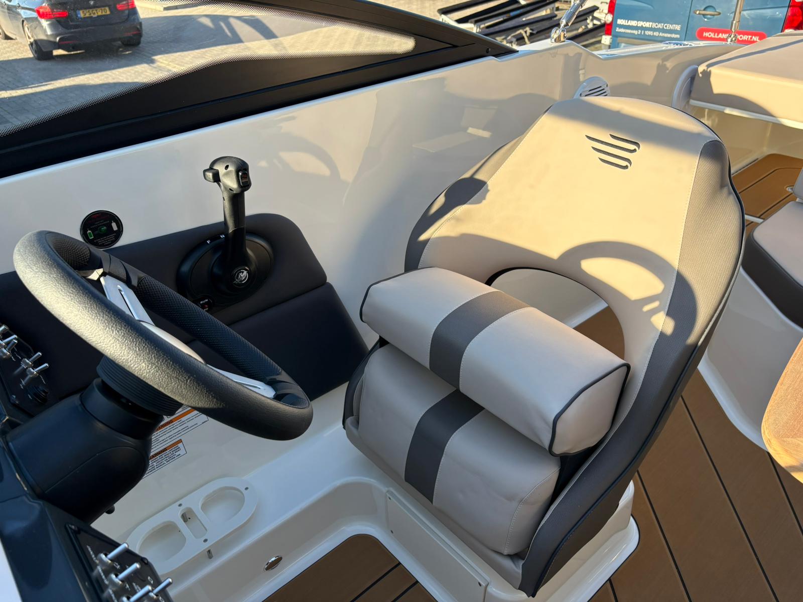 Buiten biedt de C21i alles wat je verwacht van een moderne daycruiser. De lijnen van de romp zijn strak en sportief, met een stijlvolle doorlopende voorruit die het design elegant en eigentijds maakt. Aan de achterzijde nodigt een royale zonlounge uit om achterover te leunen en te genieten van de zon, terwijl de brede instap en de geïntegreerde zwemplatforms het aan boord gaan – en weer in het water springen – moeiteloos maken. Alles voelt logisch en doordacht aan, van de zitopstelling tot aan de beschikbare bergruimte die verspreid over de hele boot aanwezig is, zelfs in de vloer.