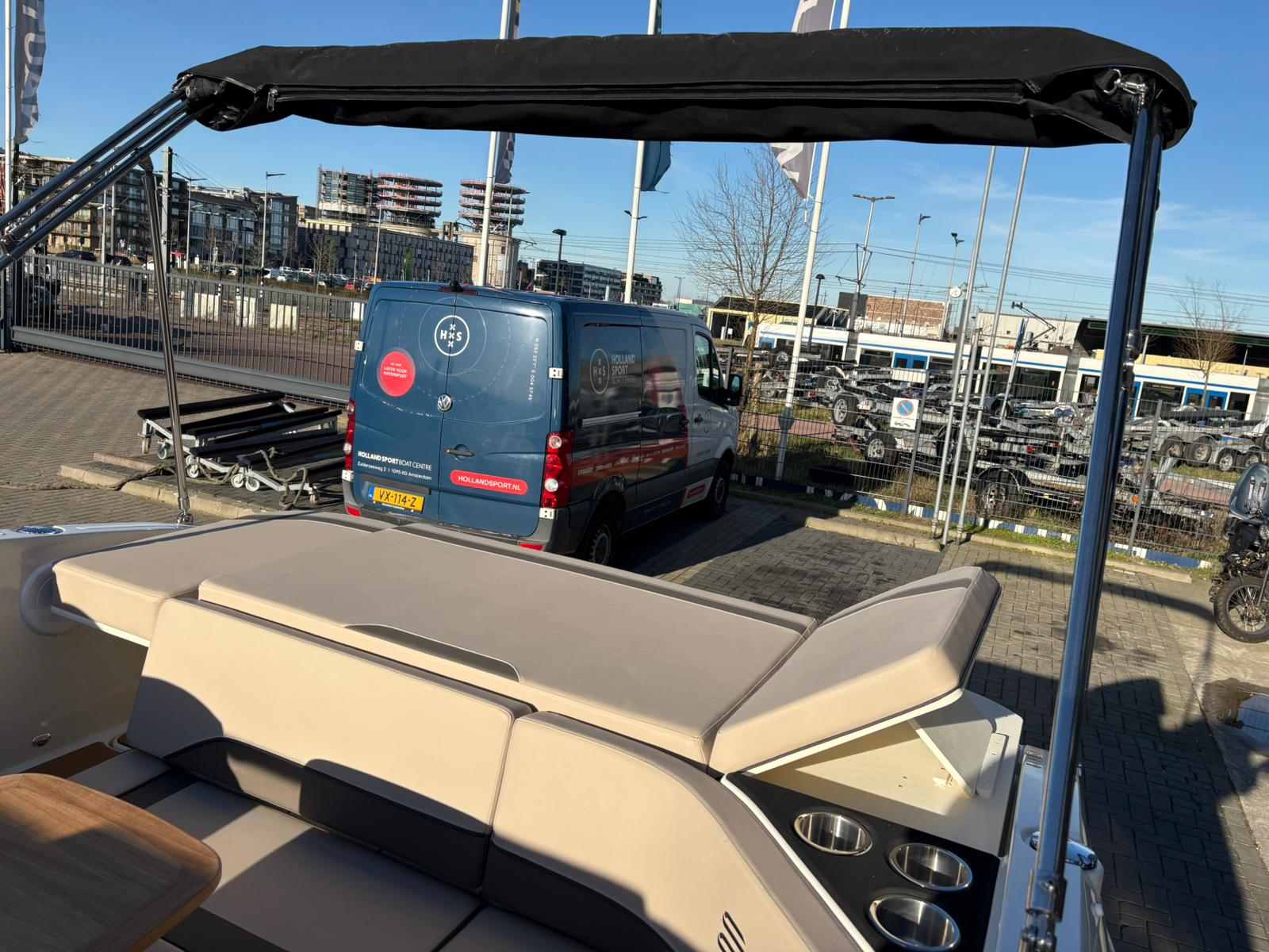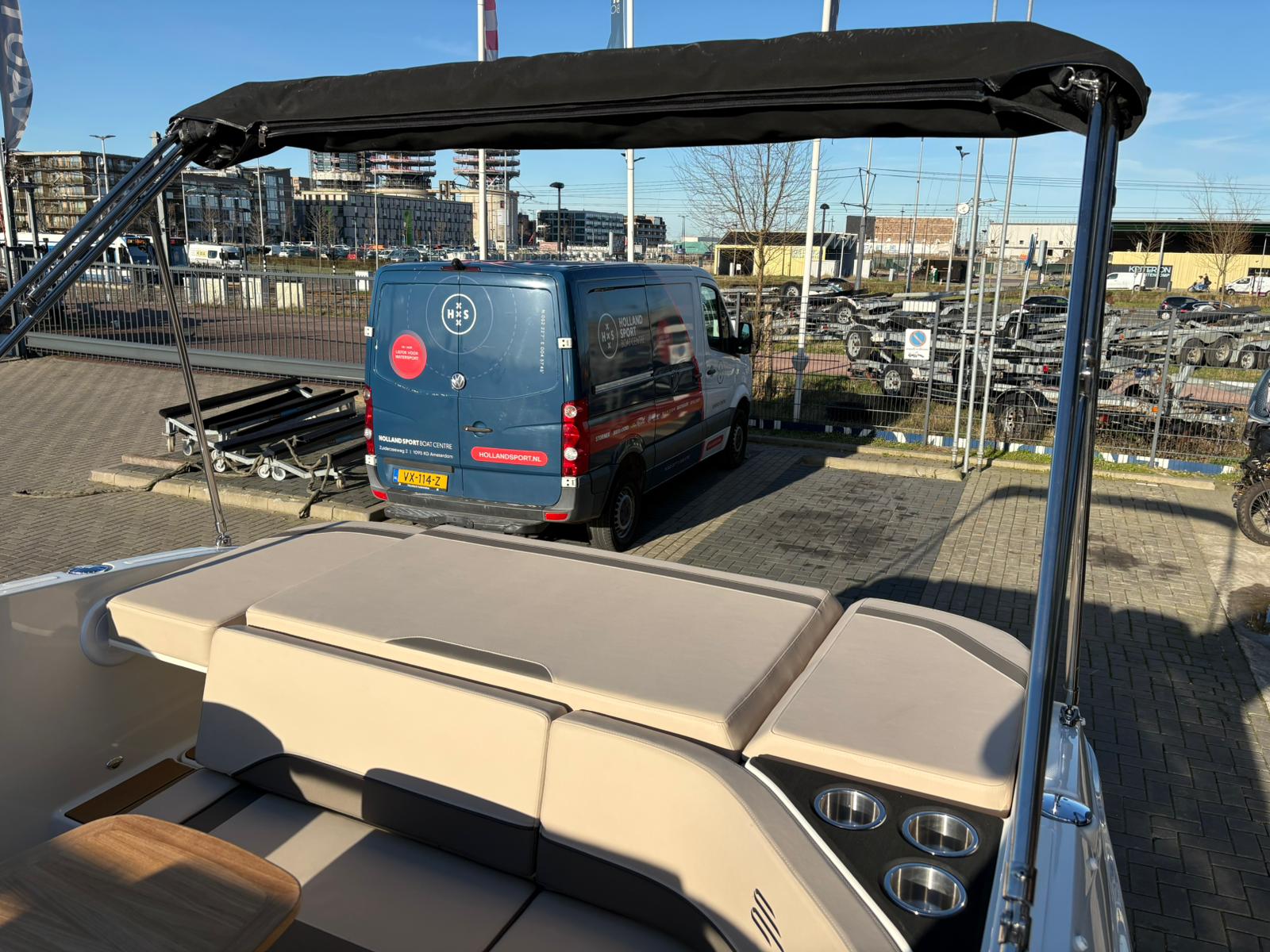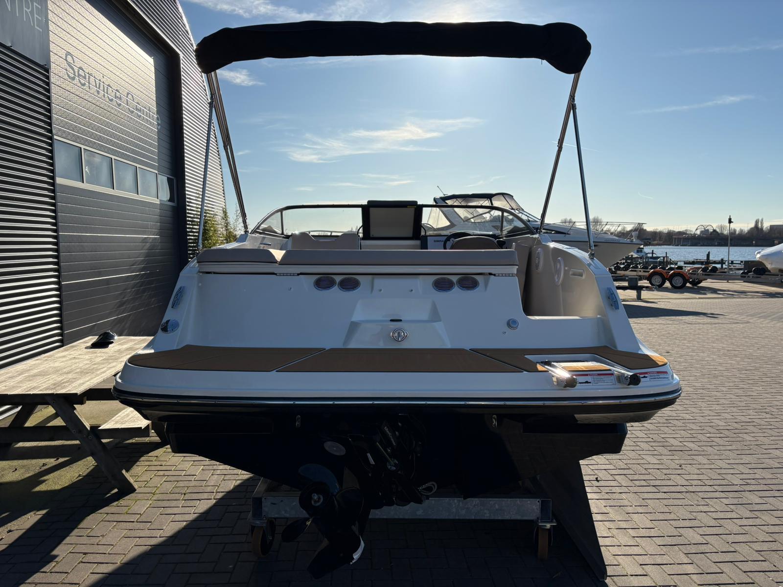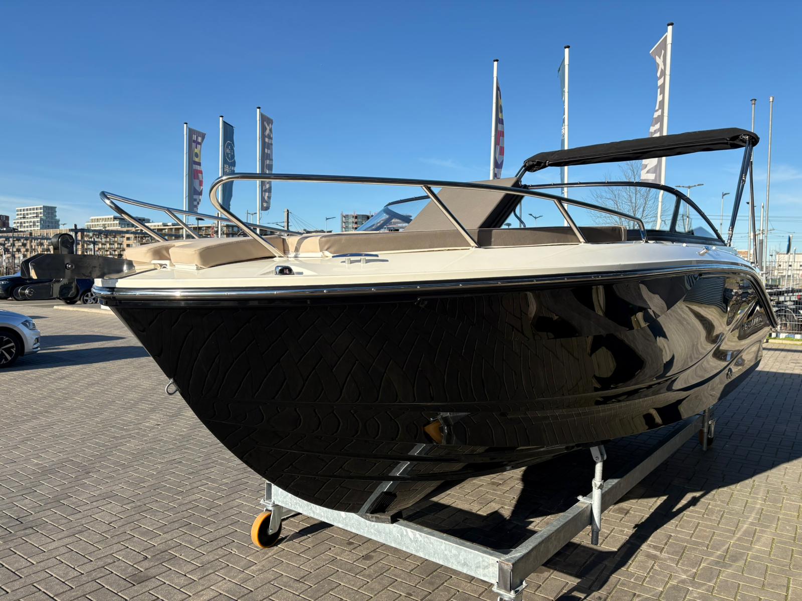 Buiten biedt de C21i alles wat je verwacht van een moderne daycruiser. De lijnen van de romp zijn strak en sportief, met een stijlvolle doorlopende voorruit die het design elegant en eigentijds maakt. Aan de achterzijde nodigt een royale zonlounge uit om achterover te leunen en te genieten van de zon, terwijl de brede instap en de geïntegreerde zwemplatforms het aan boord gaan – en weer in het water springen – moeiteloos maken. Alles voelt logisch en doordacht aan, van de zitopstelling tot aan de beschikbare bergruimte die verspreid over de hele boot aanwezig is, zelfs in de vloer.