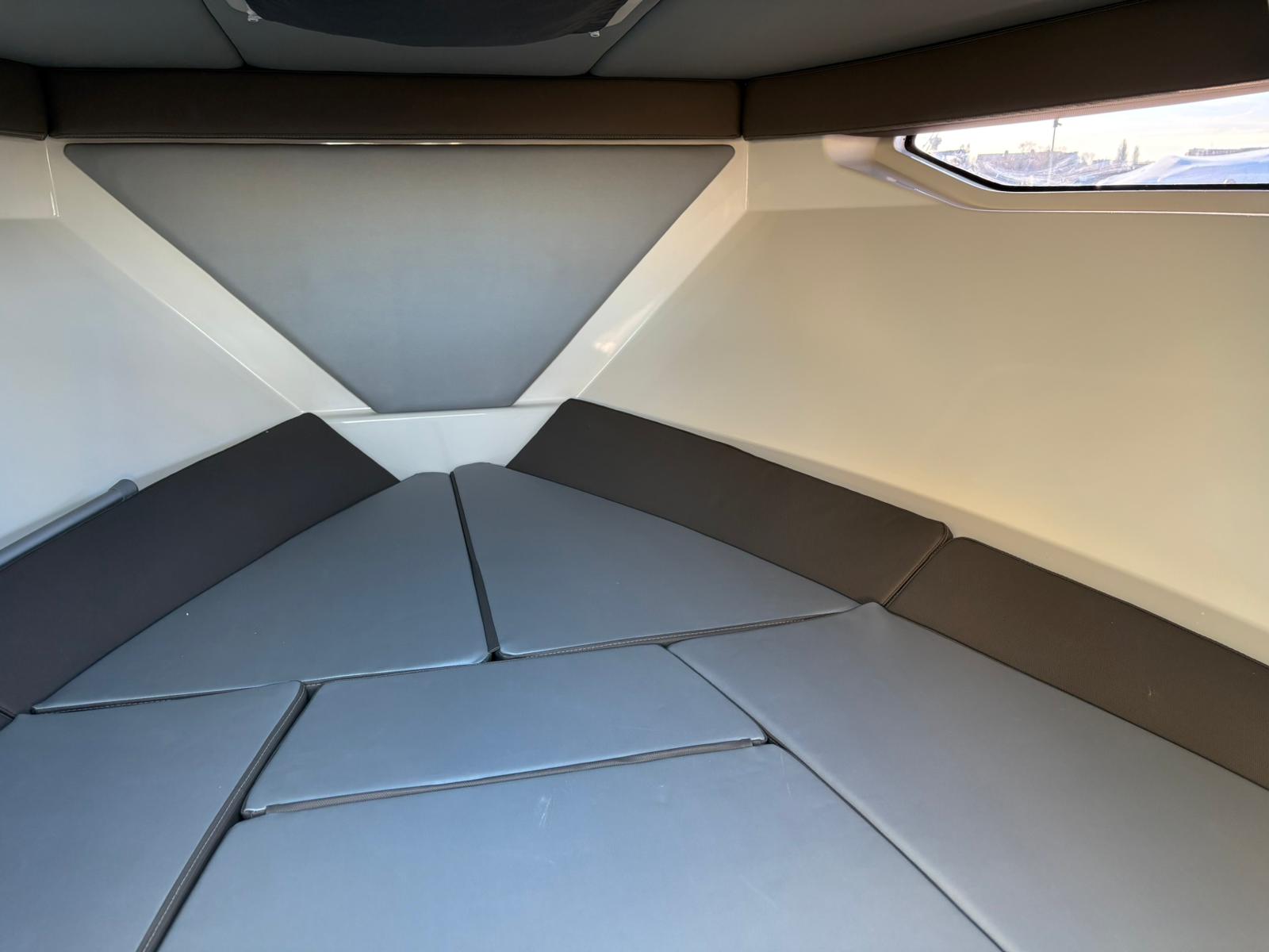 De C21i sterndrive is een boot die je meteen het gevoel geeft dat alles klopt. Zodra je aan boord stapt, merk je dat er bij het ontwerp aandacht is besteed aan elk detail – van de comfortabele indeling tot de slimme, praktische oplossingen. Deze boot is gebouwd volgens het ‘cuddy-first’ principe, waarbij de cabine niet zomaar een extraatje is, maar een volwaardig en sfeervol onderdeel van het geheel. Binnen vind je een verrassend ruime slaapcabine, geschikt voor twee personen, met een gezellige U-vormige zit die eenvoudig om te bouwen is tot een comfortabel bed. De natuurlijke lichtinval via de zijramen en het dakluik maakt het geheel licht en uitnodigend, perfect voor een ontspannen overnachting of een rustig moment midden op het water.