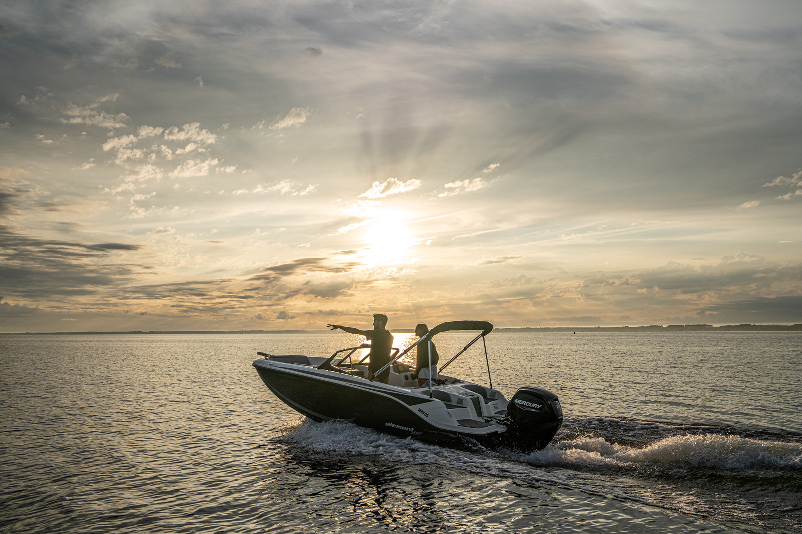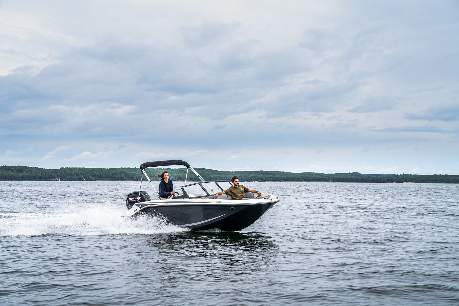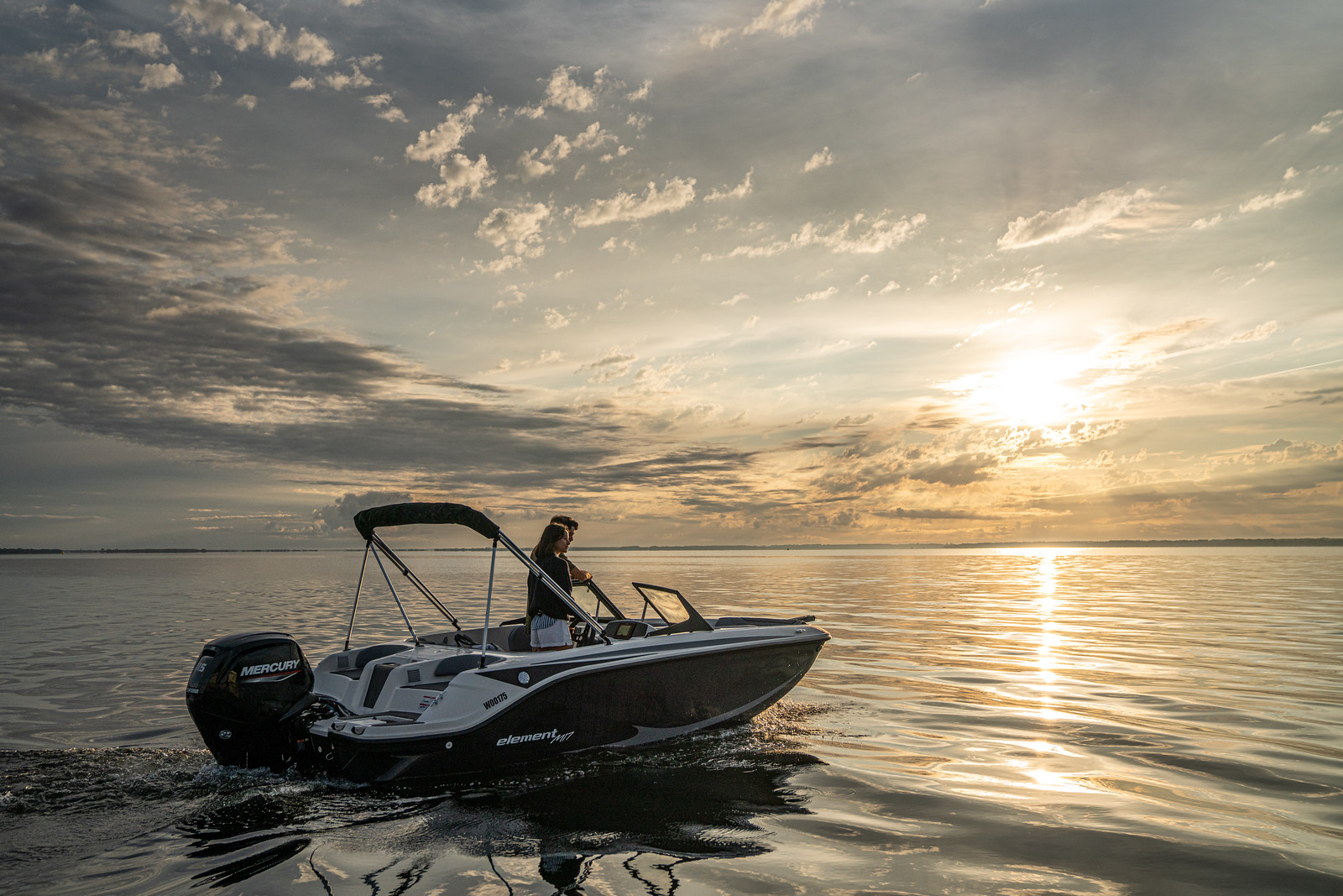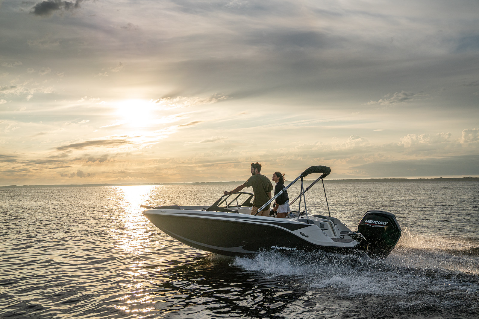 De Bayliner M17 is leverbaar met Mercury buitenboordmotoren tot 115 PK, waarmee de boot moeiteloos accelereert en soepel manoeuvreert. De romp is ontworpen voor efficiënt brandstofverbruik en stabiel vaargedrag – ideaal voor tochten over meren, rivieren of kustwater.