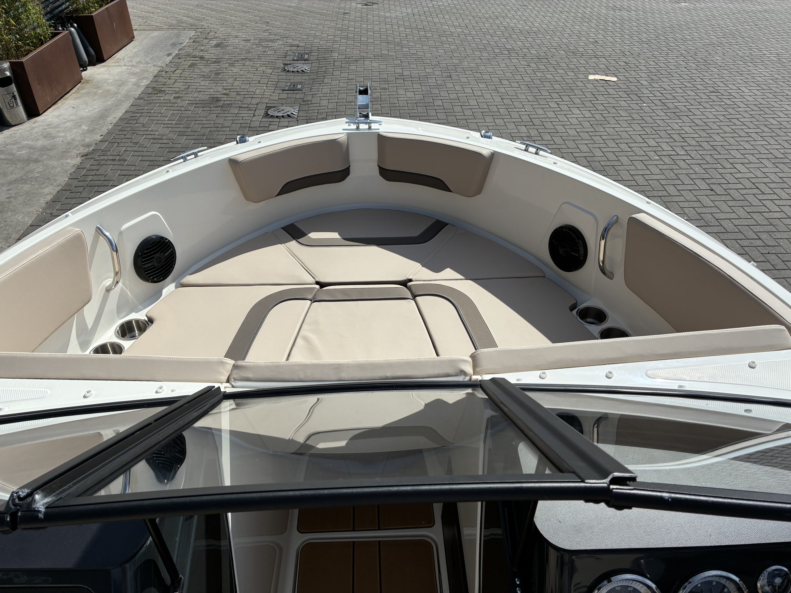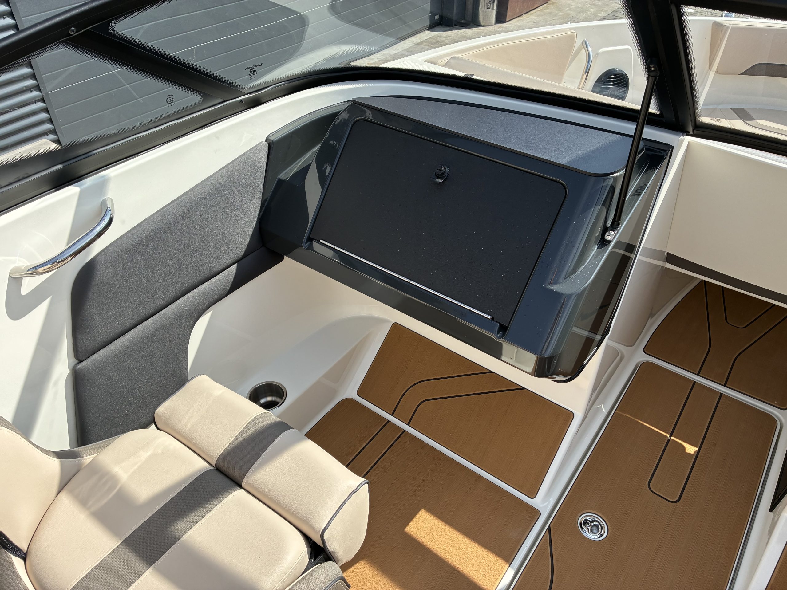 De motor start soepel. Je stuurt met één hand, dankzij het sportieve stuur en de hydraulische besturing, terwijl je met de andere een blik werpt op het overzichtelijke dashboard met multifunctionele meters. De romp snijdt moeiteloos door het water. Of je nu rustig wilt cruisen of kiest voor snelheid en actie – de Bayliner V20 reageert alert en krachtig, precies zoals jij het wilt.