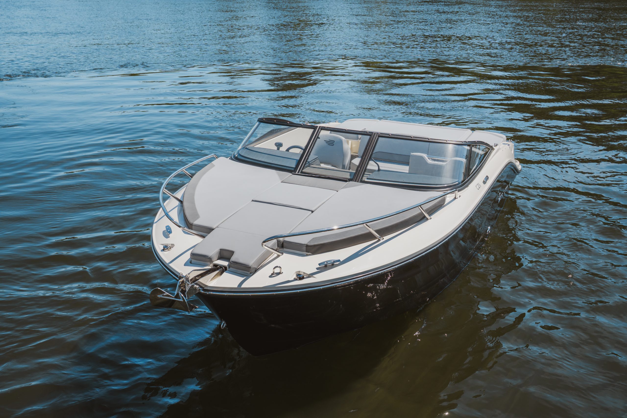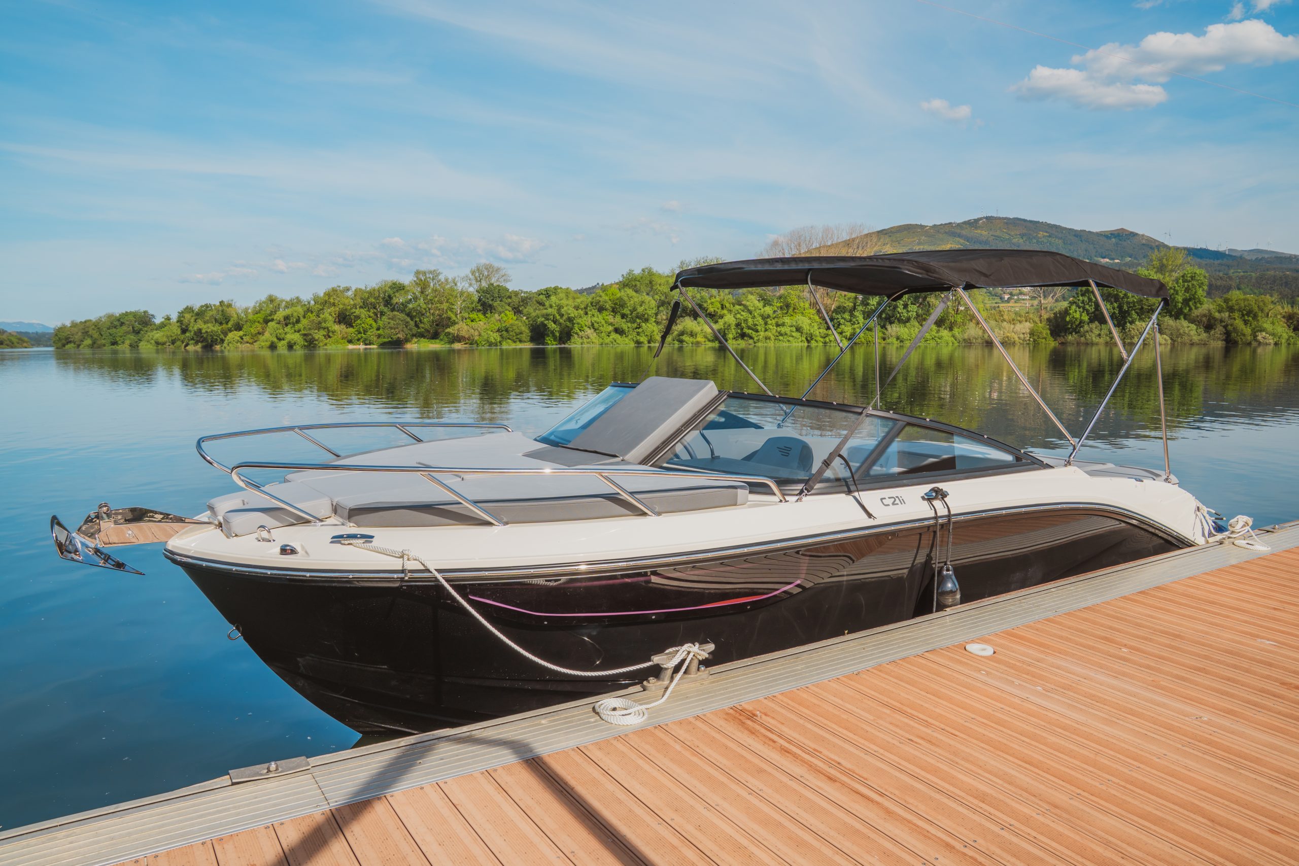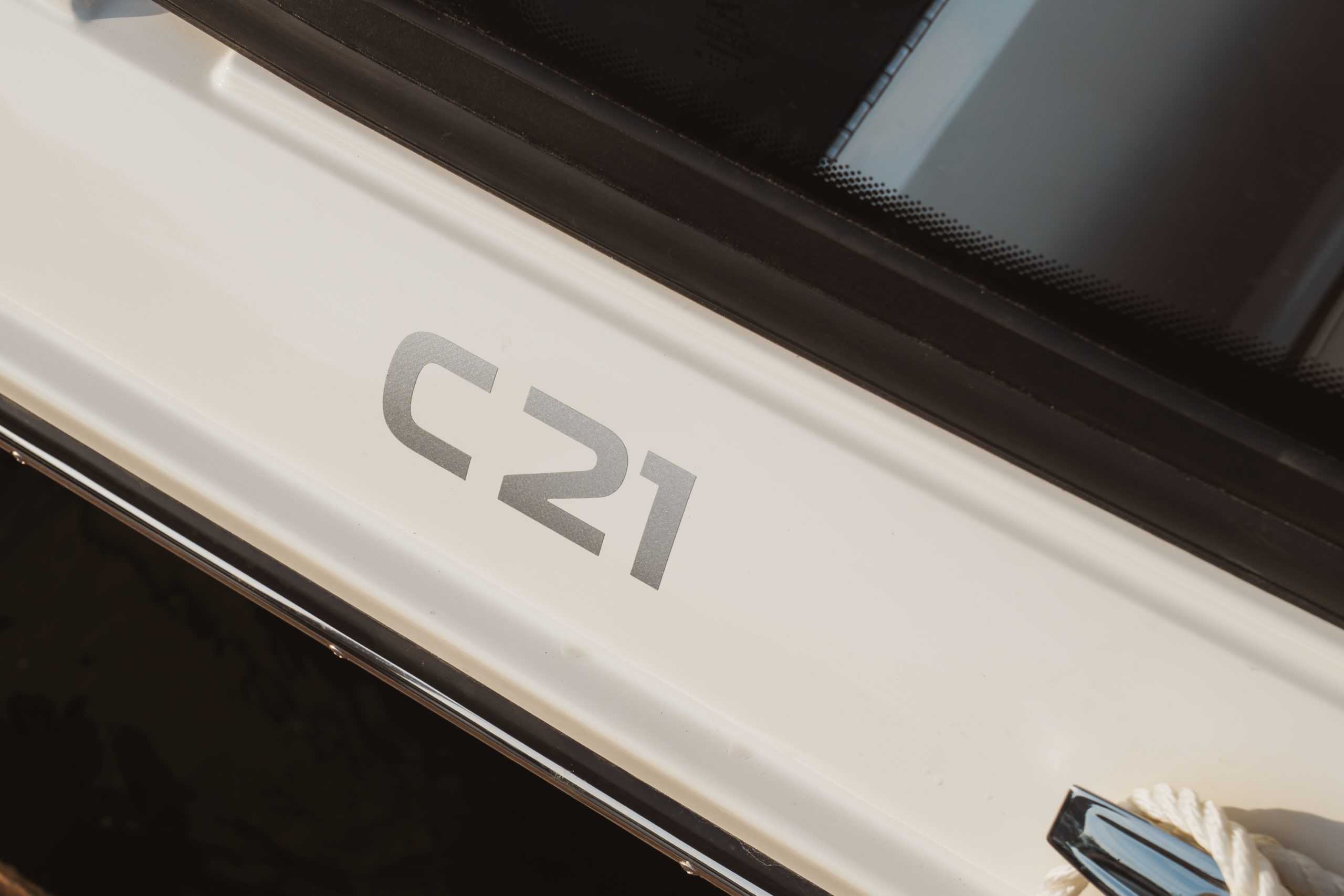 Het strakke, moderne design van de C21i springt direct in het oog. De gesculpteerde romp, de sportieve lijnen en de stijlvolle wraparound voorruit zorgen voor een dynamisch en elegant silhouet. Dankzij het verhoogde ontwerp en de brede kuiptoegang is de boot niet alleen fraai om te zien, maar ook uiterst praktisch in gebruik. De grote zwemplatformen met telescoop zwemtrap maken het aan- en van boord gaan eenvoudig en veilig – ideaal voor gezinnen of vrienden die graag het water in duiken.
