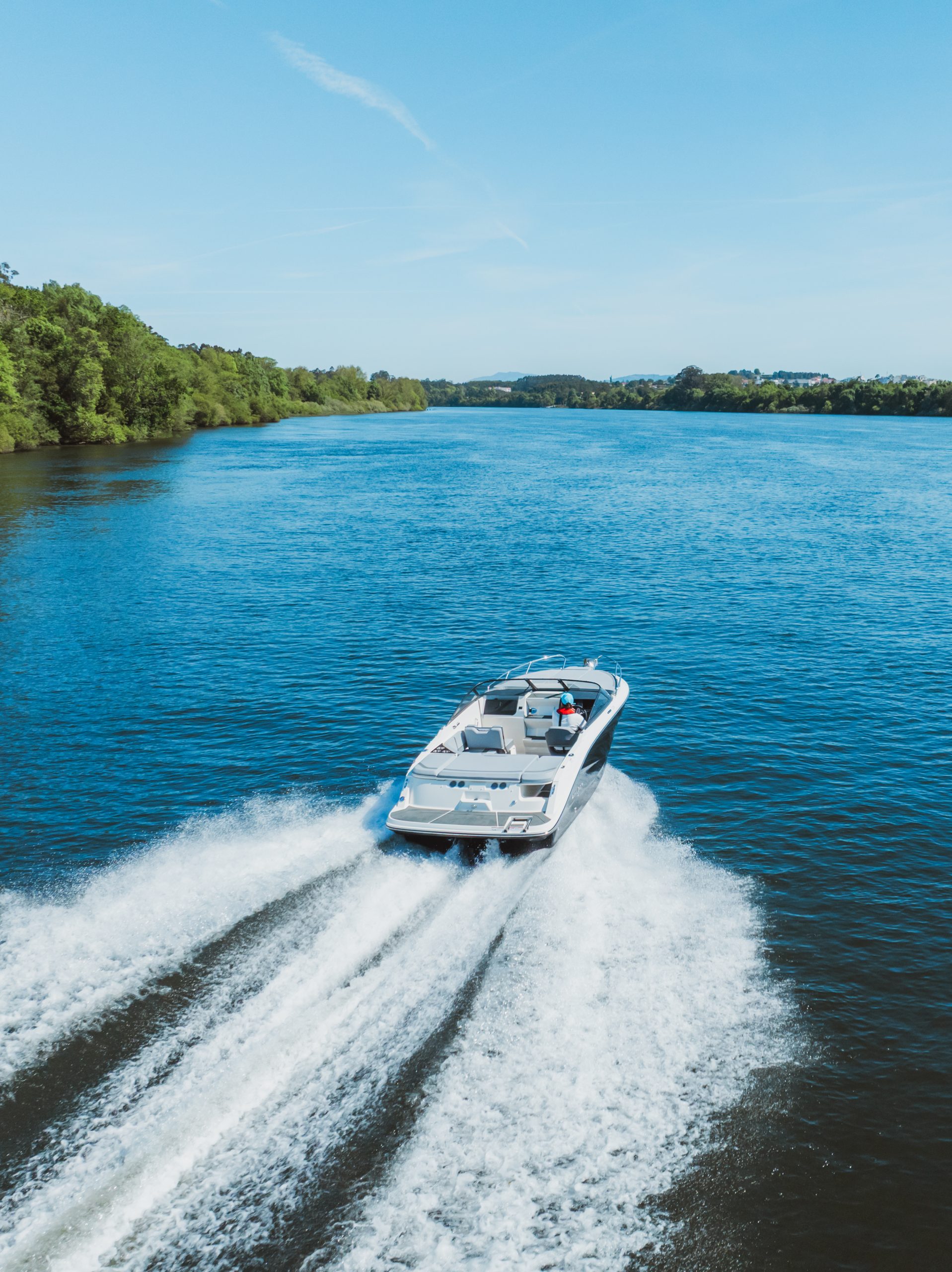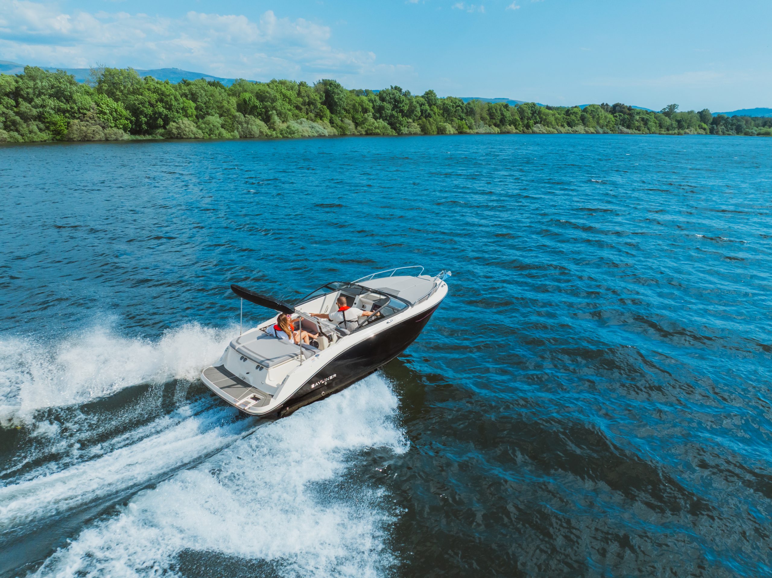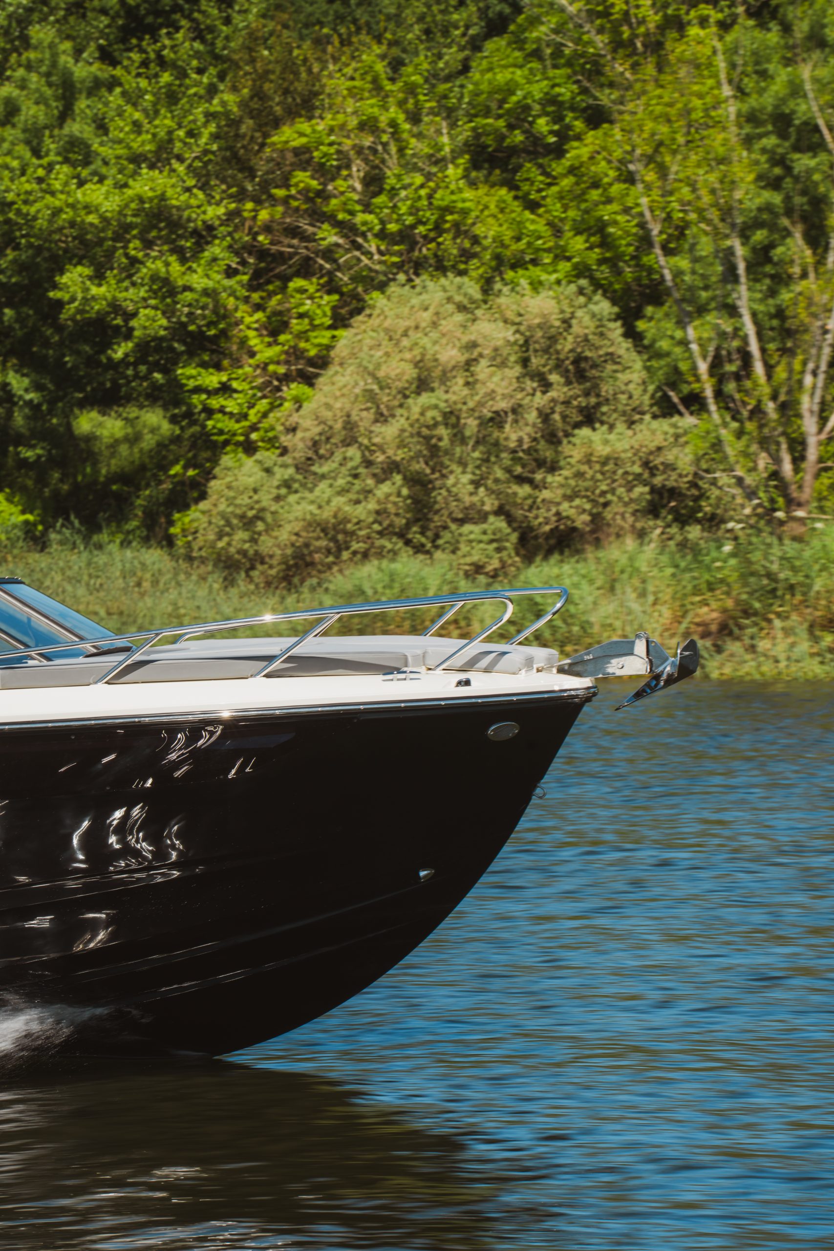 Het strakke, moderne design van de C21i springt direct in het oog. De gesculpteerde romp, de sportieve lijnen en de stijlvolle wraparound voorruit zorgen voor een dynamisch en elegant silhouet. Dankzij het verhoogde ontwerp en de brede kuiptoegang is de boot niet alleen fraai om te zien, maar ook uiterst praktisch in gebruik. De grote zwemplatformen met telescoop zwemtrap maken het aan- en van boord gaan eenvoudig en veilig – ideaal voor gezinnen of vrienden die graag het water in duiken.