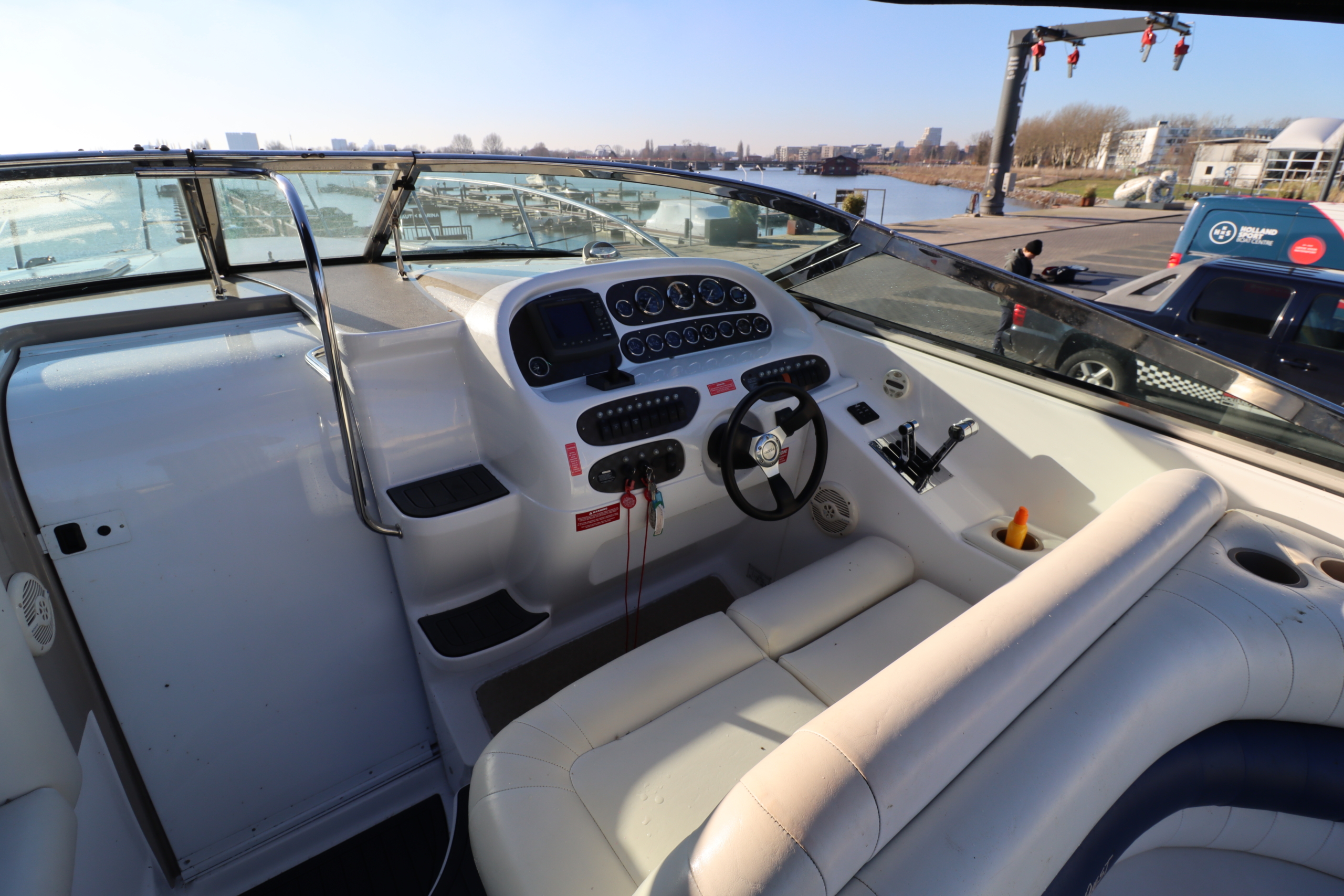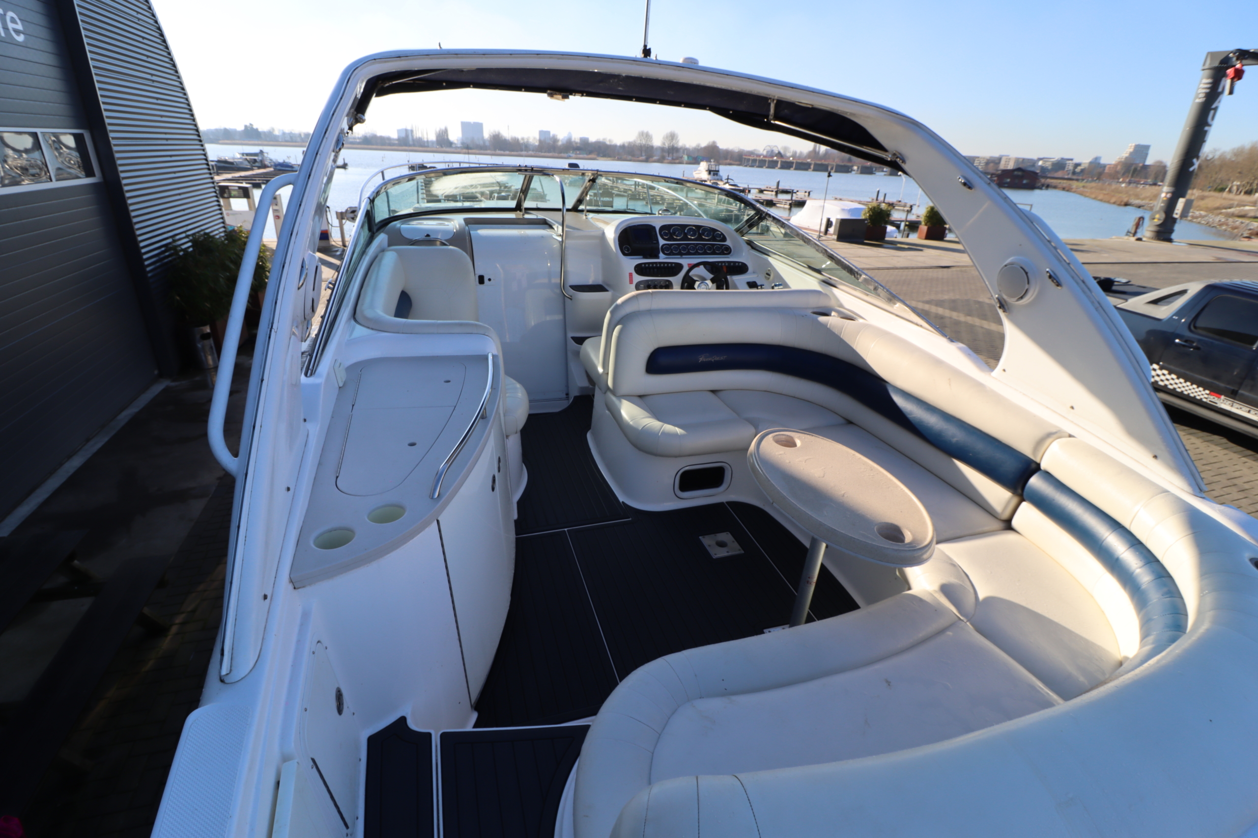 De Powerquest 320 SC is een krachtige, sportieve en luxueuze motorboot die bekendstaat om zijn indrukwekkende prestaties en comfortabele voorzieningen. Deze high-performance boot van Amerikaanse makelij combineert snelheid en stijl, waardoor hij uitermate geschikt is voor watersporters die zowel op zoek zijn naar avontuur als ontspanning. De 320 SC heeft een gestroomlijnd ontwerp met een robuuste romp die stabiliteit en snelheid biedt, zelfs bij uitdagende wateromstandigheden. Hij is uitgerust met twee krachtige motoren van MerCruiser , die garant staan voor een indrukwekkende snelheid en acceleratie. De boot kan eenvoudig een snelheid van 40-50 knopen halen, wat hem perfect maakt voor adrenalinezoekers. Het interieur van de Powerquest 320 SC is verrassend ruim en stijlvol, met hoogwaardige materialen zoals lederen bekleding en chroomaccenten. De cockpit is ruim opgezet met comfortabele zitplaatsen en biedt uitstekende zichtlijnen, zodat de bestuurder volledige controle over het vaartuig heeft. Er is voldoende zitruimte voor passagiers, en de praktische indeling maakt het eenvoudig om te socializen of te relaxen. De cabine van de Powerquest 320 SC is eveneens luxe ingericht en biedt slaapplaatsen voor twee tot vier personen, afhankelijk van de configuratie. De kajuit is voorzien van praktische voorzieningen zoals een kleine kombuis, een eethoek en een nette sanitaire ruimte, wat de boot ook geschikt maakt voor langere tochten en overnachtingen. Kortom, de Powerquest 320 SC is de ideale keuze voor mensen die willen genieten van de perfecte combinatie van snelheid, luxe en comfort op het water. Het is een indrukwekkend schip dat het beste biedt van zowel performance-boating als cruiser-ervaring, en staat garant voor onvergetelijke dagen op het water.