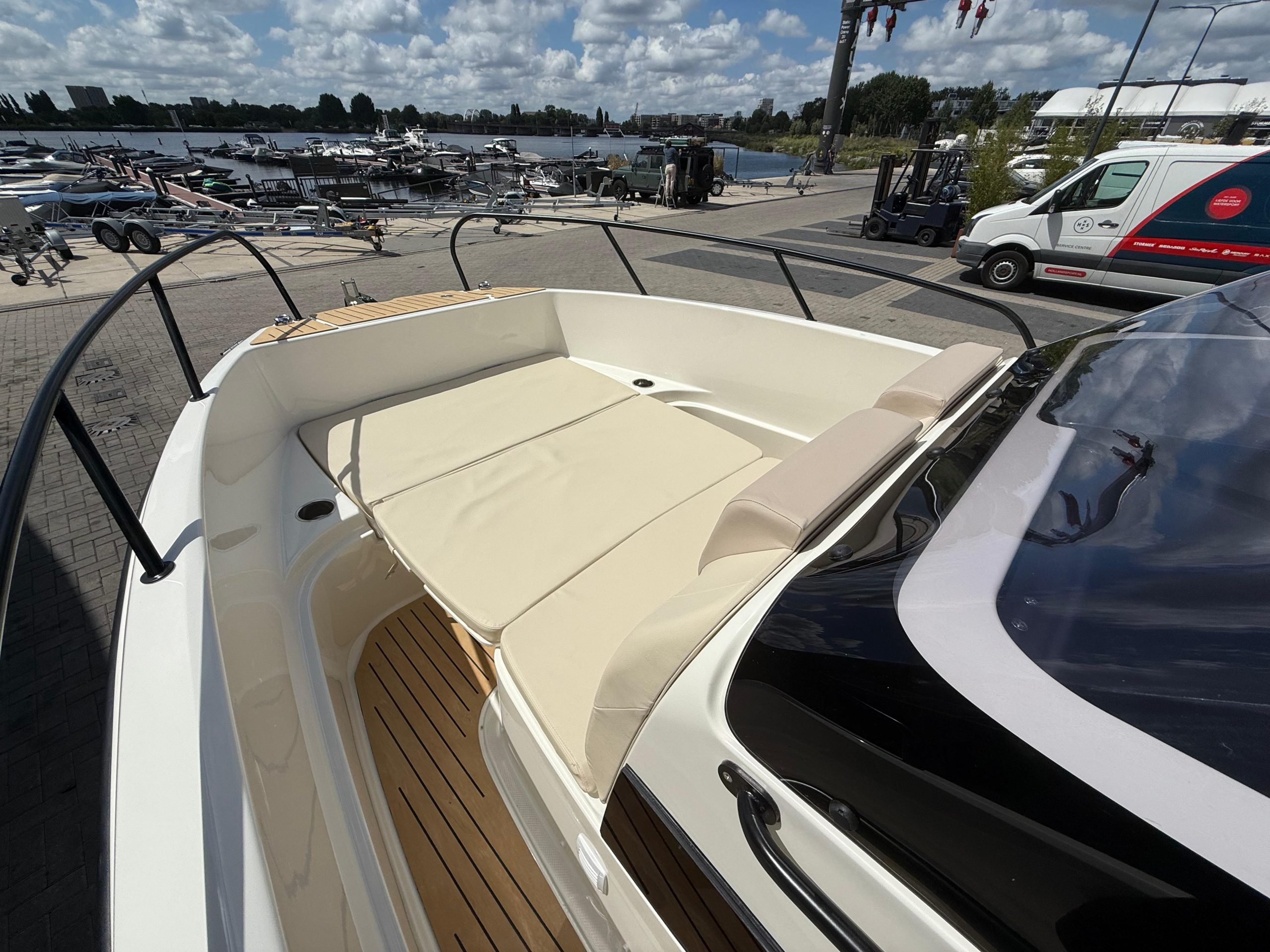 • Smart Edition pakket: cockpitdouche, ski-paal, elektrische ankerlier, Fusion stereo met 2 speakers, bow kit, luxe cockpittafel en mooring kit