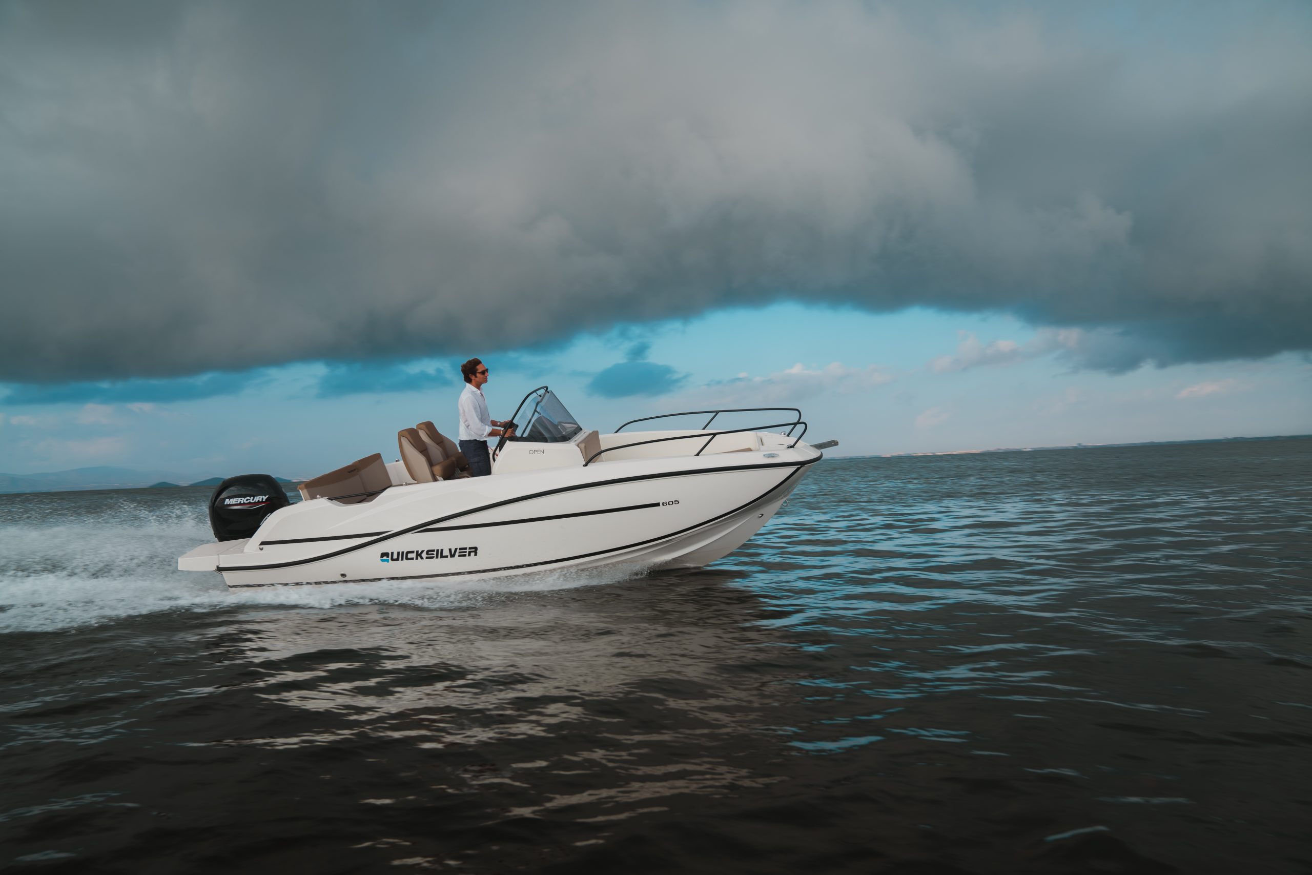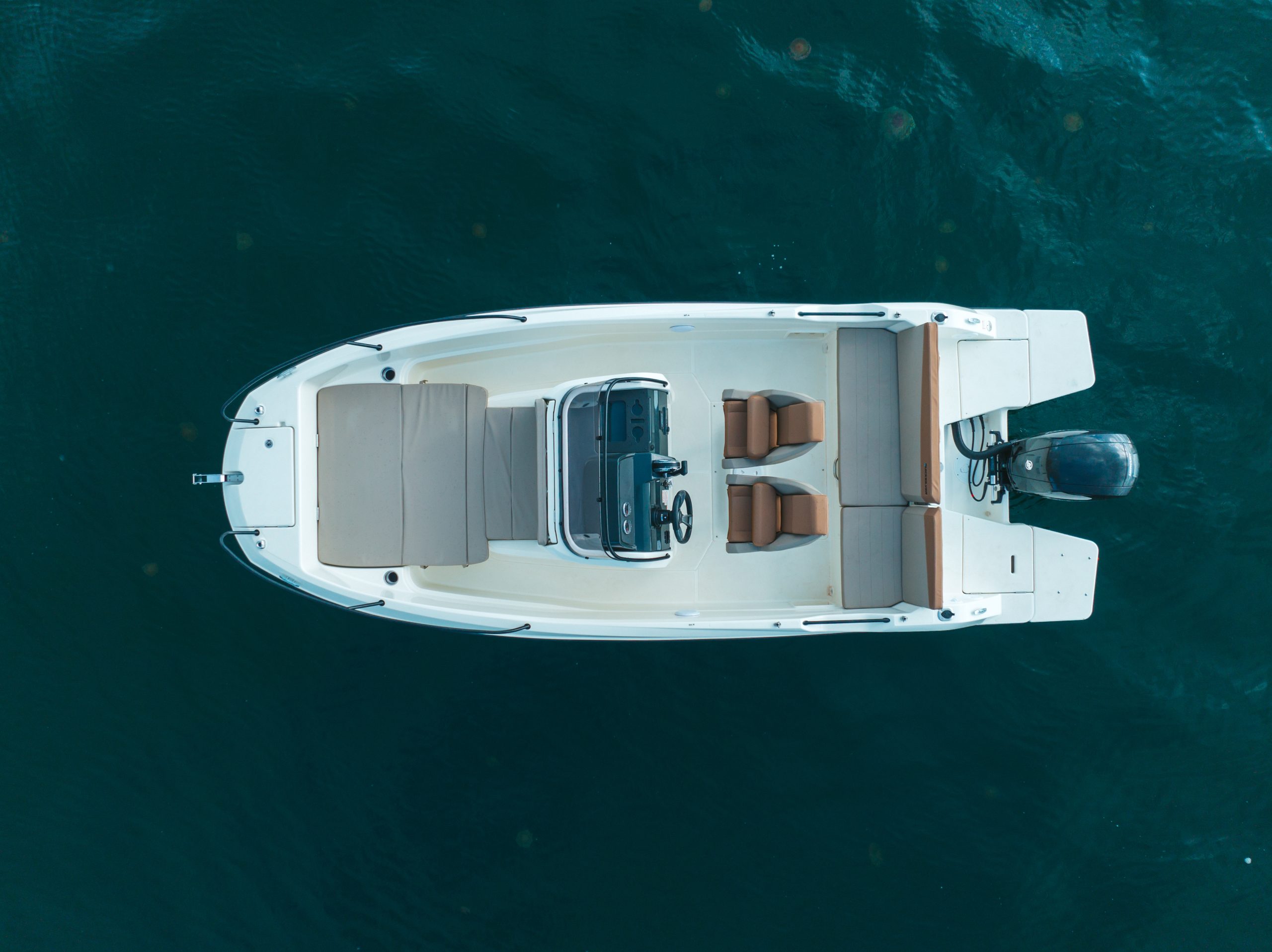 De 605 Open combineert sportieve vaareigenschappen met optimaal comfort. De draaibare stoelen voor kapitein en co-piloot maken het makkelijk om gezellig met de rest mee te praten. De stuurstand is stijlvol uitgevoerd in tweekleurig design, met bekerhouders, een opbergvak en ruimte voor een 7†GPS/kaartplotter. Na het zwemmen frist u zich eenvoudig op met de optionele cockpitdouche.