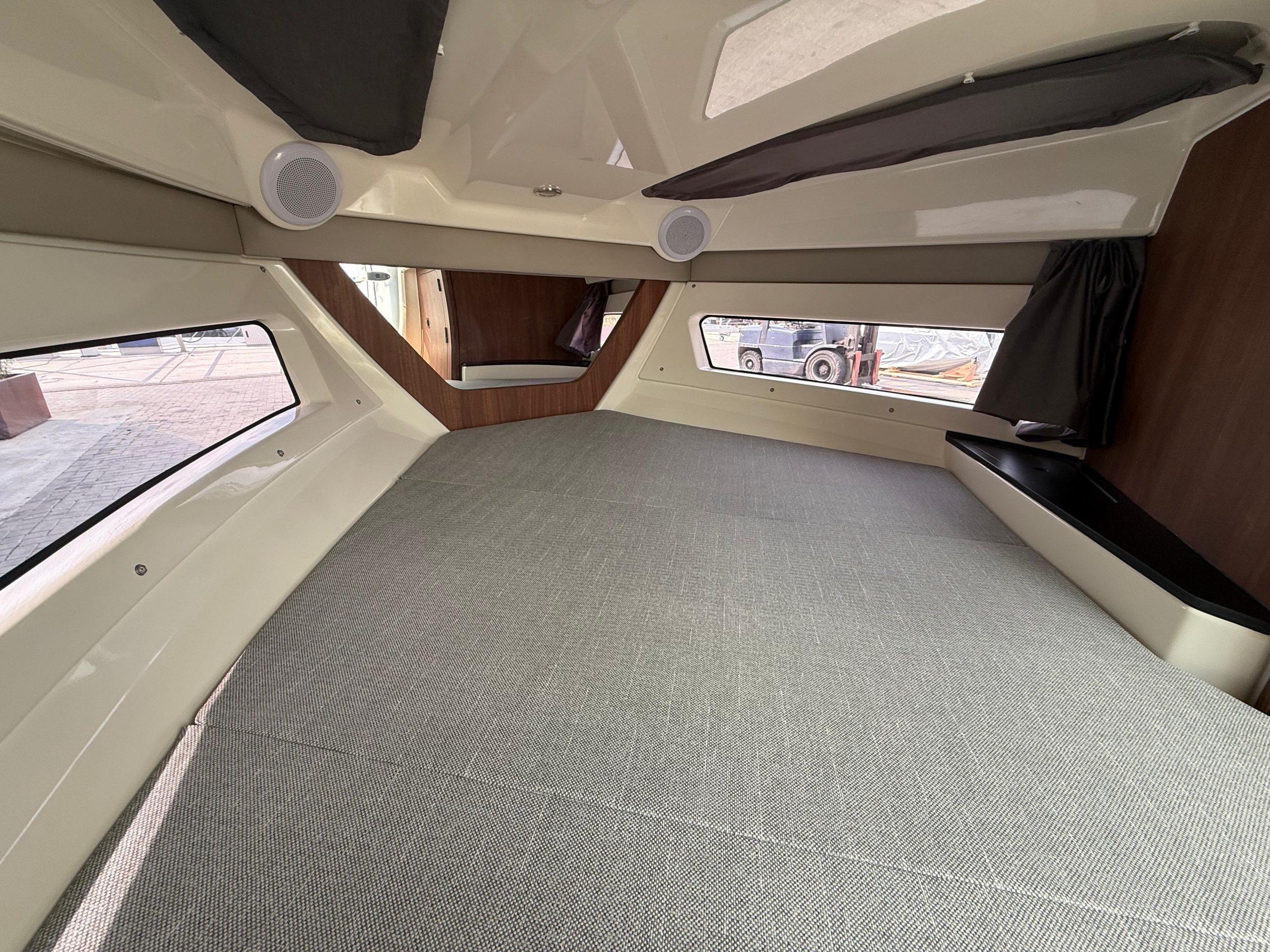 Geniet van het uitzicht! Er even tussenuit voor een dagje uit of een weekend op het water. De diepe cockpit en volledige voorruit van de Activ 755 Cruiser houden u en uw passagiers veilig en droog tijdens de rit. Binnen bieden de brede ramen van de cabine het beste uitzicht dat je ooit zult vinden in een boot van 7 meter. Maatwerk is de sleutel. De cockpit biedt 3 configuraties, verschillende pakketten maken aanzienlijke upgrades van de accessoires van de boot.