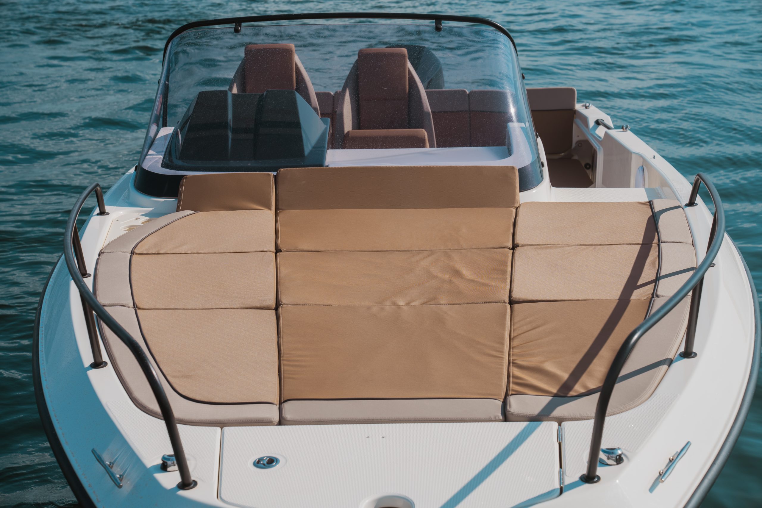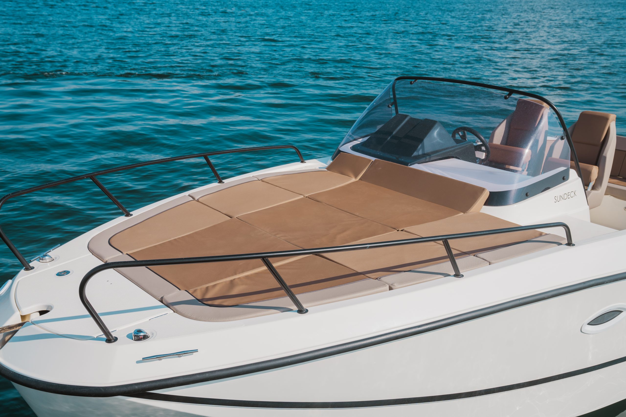 Voor zonaanbidders biedt de 755 Sundeck een extra groot zonnedek op de boeg, geschikt voor 3 personen en voorzien van hoofdsteunen en bekerhouders. Voor een drankje of een maaltijd beschikt de boot over een complete kombuis met spoelbak, koelkast en kooktoestel. Binnen in de cabine is ruimte om overdag te zitten of te dineren met 4 personen, terwijl deze ’s avonds eenvoudig is om te bouwen tot een comfortabele slaapplaats voor 2.