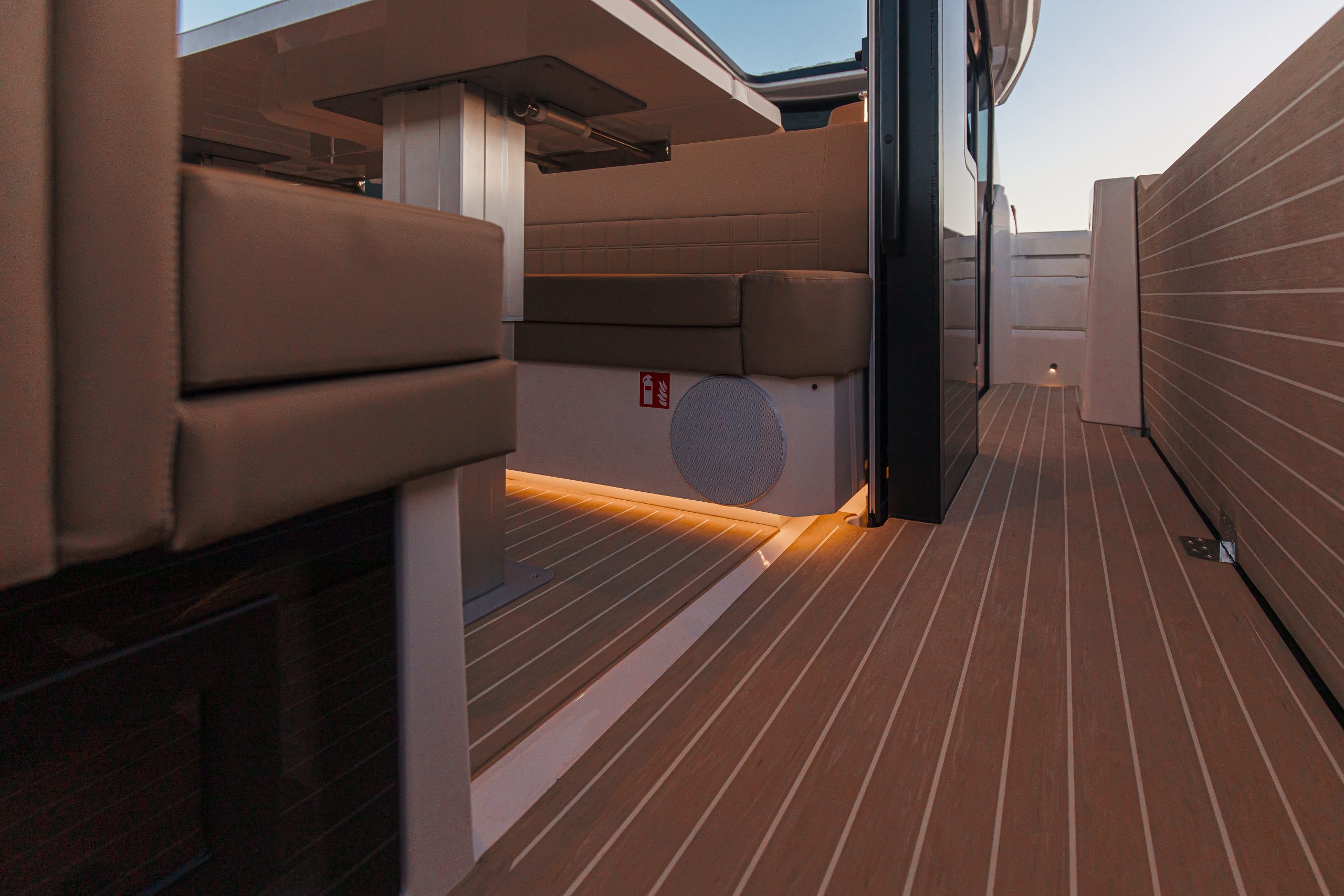 - Ambient floor lights around deck modules, ceiling and in cabins,
