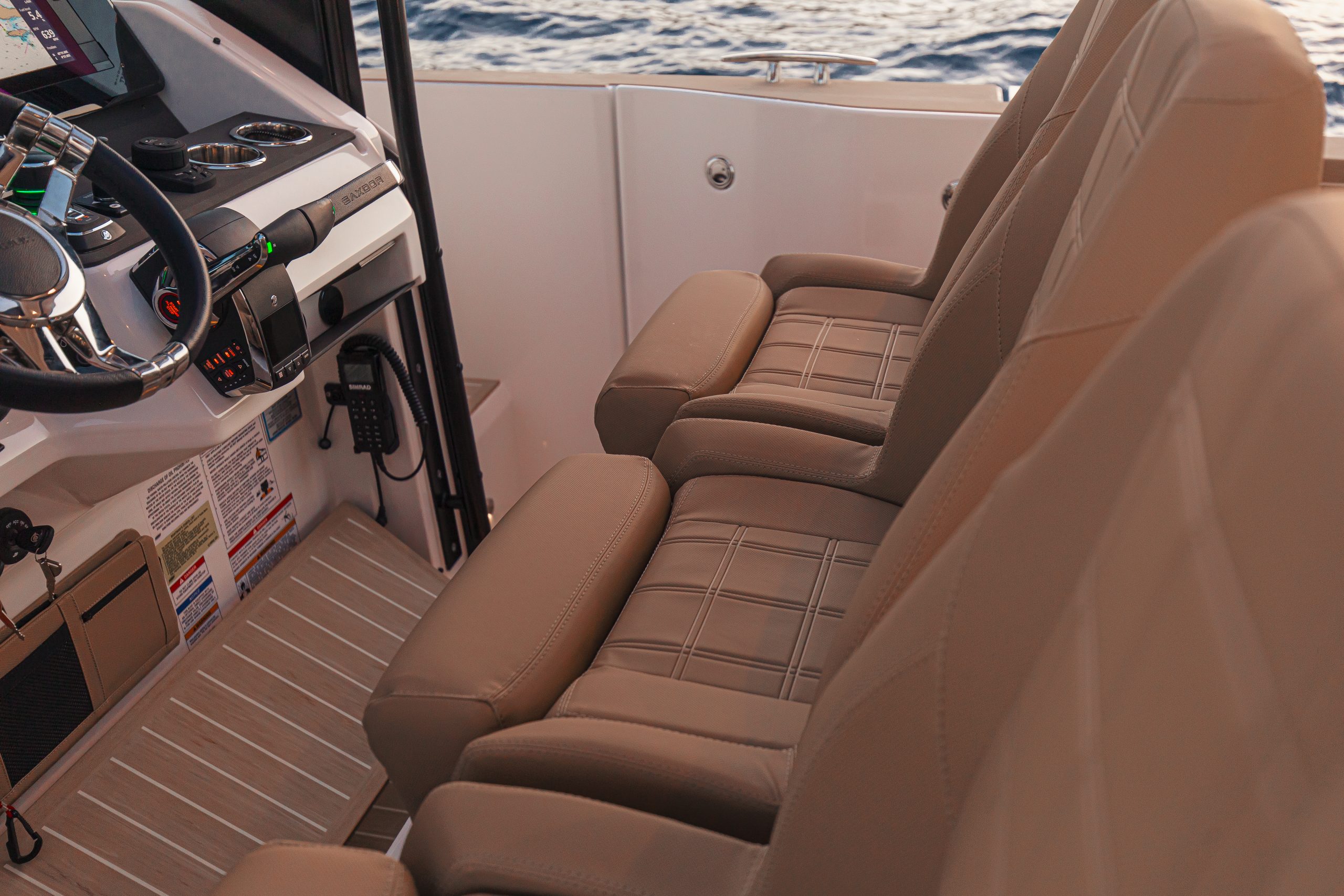 - Helm area with 3 x individual bucket helm seats with armrests