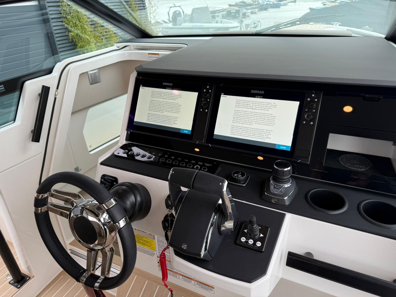 De 320 GTO is niet alleen stijlvol, maar ook volledig uitgerust voor comfortabel cruisen. Het Advanced Navigation Package met moderne displays, sonar en GPS zorgt voor volledige controle, terwijl het Joystick Pilot System (JPO) moeiteloos manoeuvreren in de haven mogelijk maakt. De boegschroef biedt extra precisie bij aanleggen, en het Catapult ankersysteem maakt afmeren eenvoudiger dan ooit.