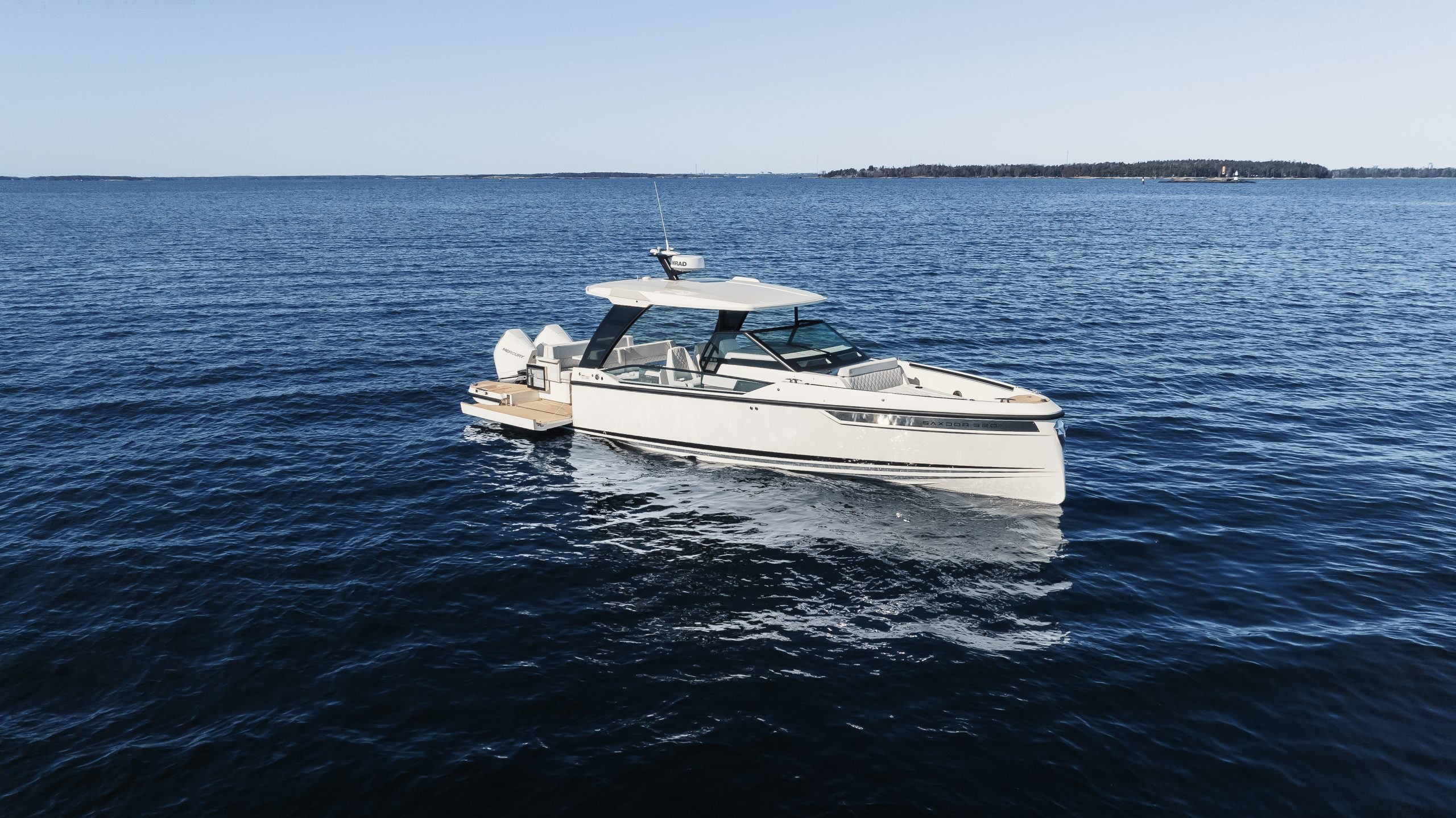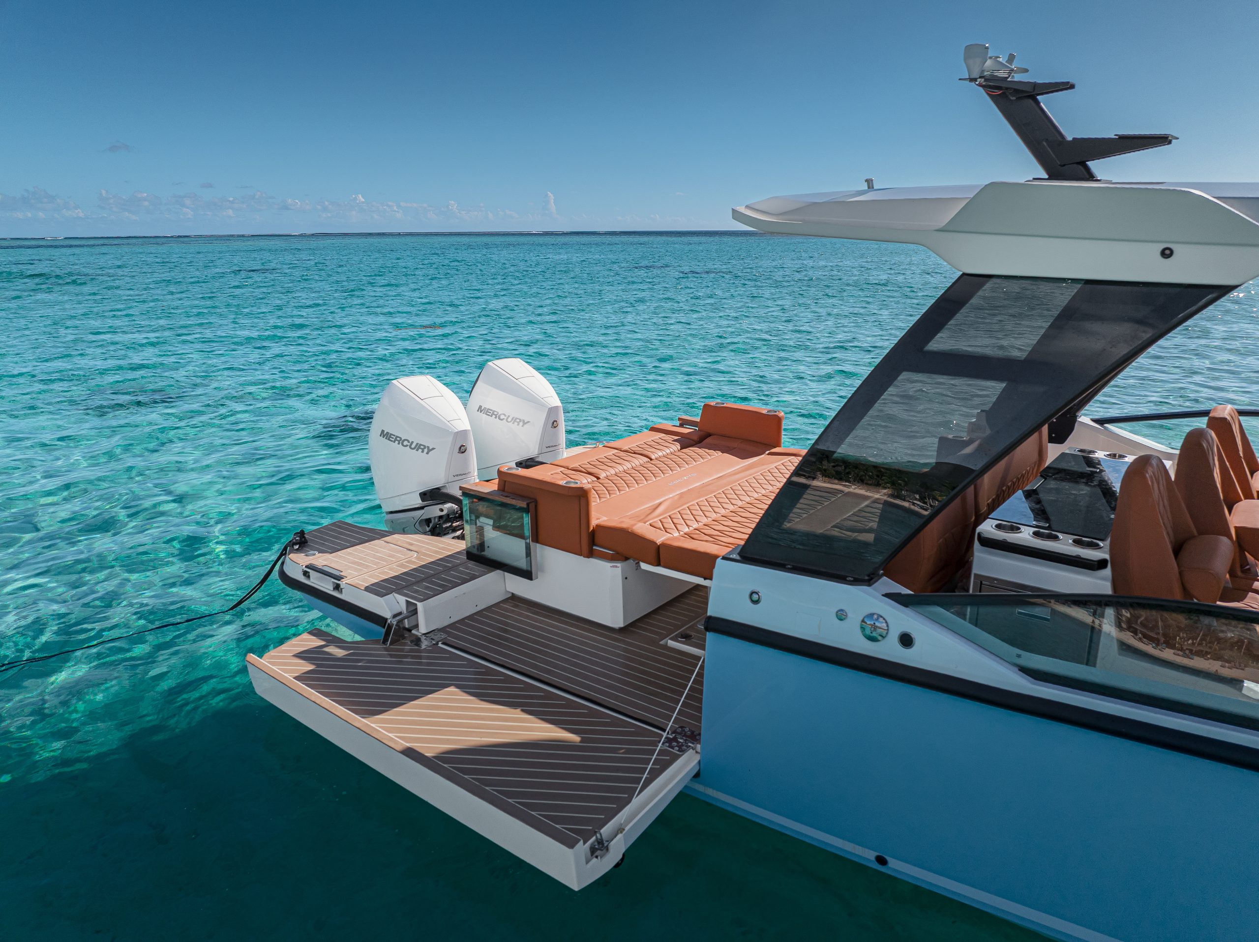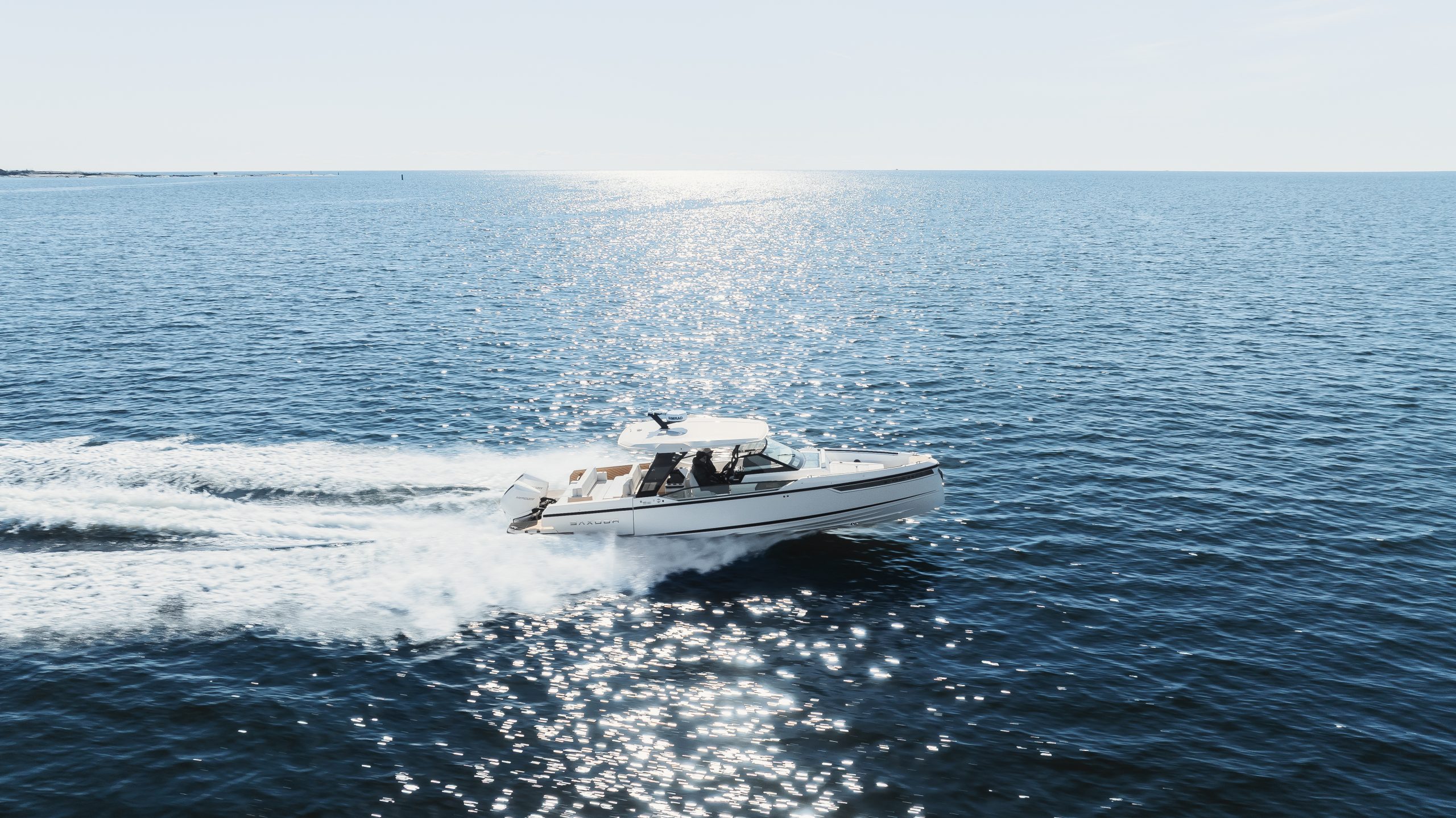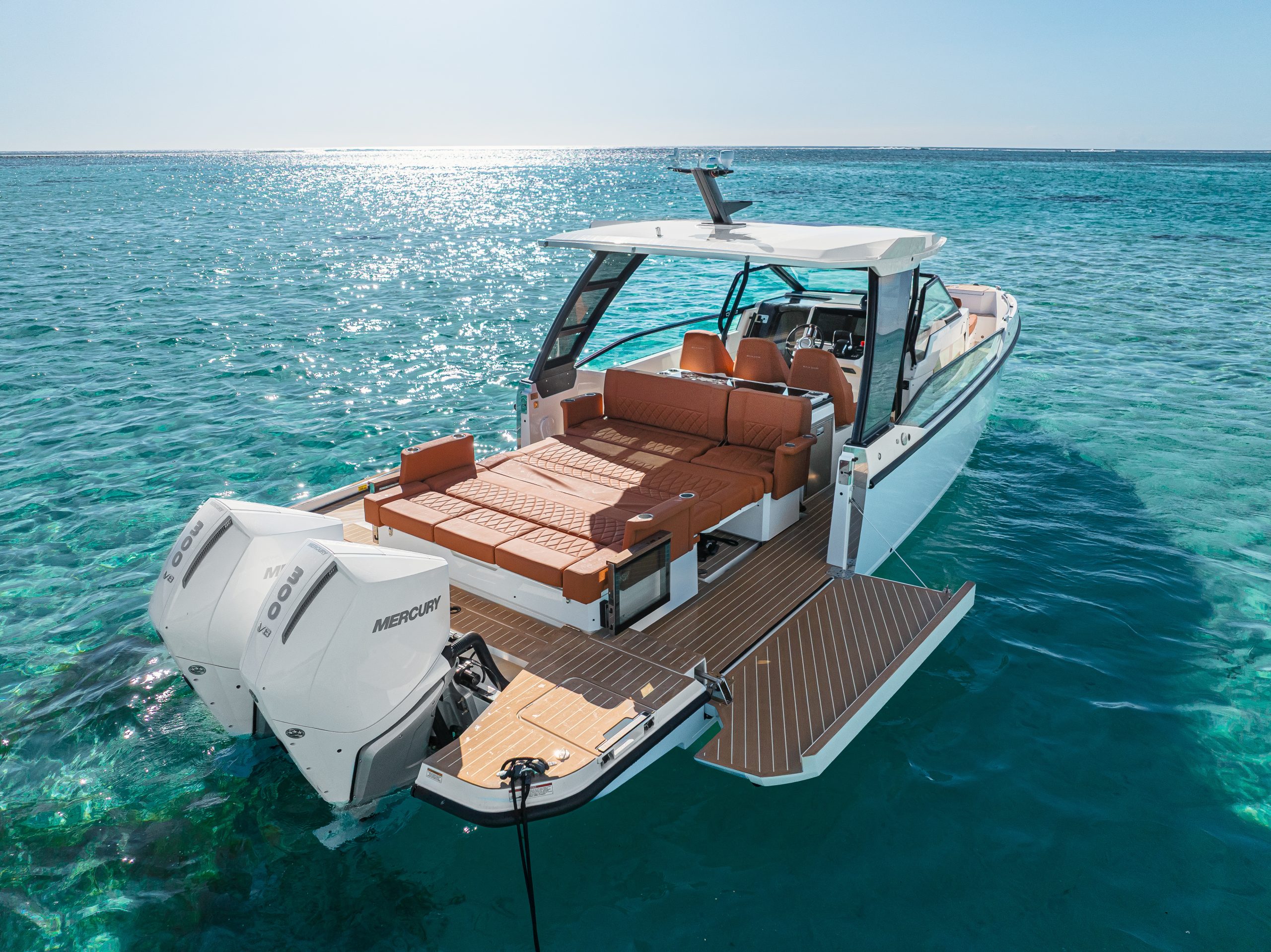 De Saxdor 320 GTO levert een vaareigenschap die je zelden ervaart. Aangedreven door twee krachtige Mercury 300 pk buitenboordmotoren behaalt hij moeiteloos snelheden van ruim 50 knopen, met een ideale kruissnelheid tussen de 20 en 40 knopen. De besturing is uiterst precies en responsief, waardoor u volledige controle heeft, of u nu door rustige baaien vaart of met hoge snelheid over open zee glijdt. De dubbele traptreden in de romp zorgen voor extra lift, minder weerstand en een ongelooflijk soepele rit — elke meter op het water voelt als puur rijplezier.