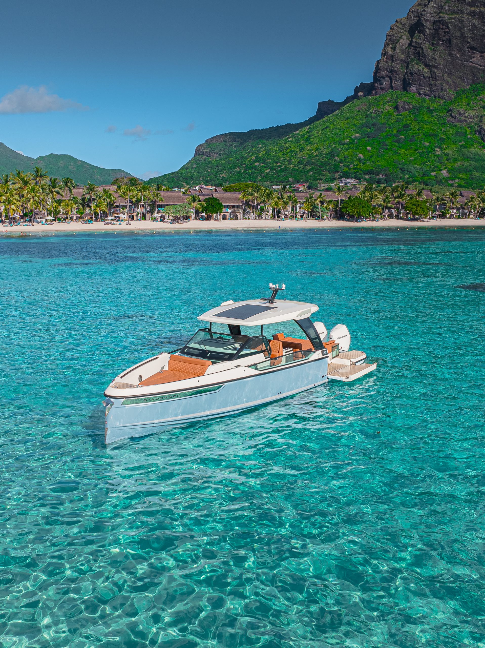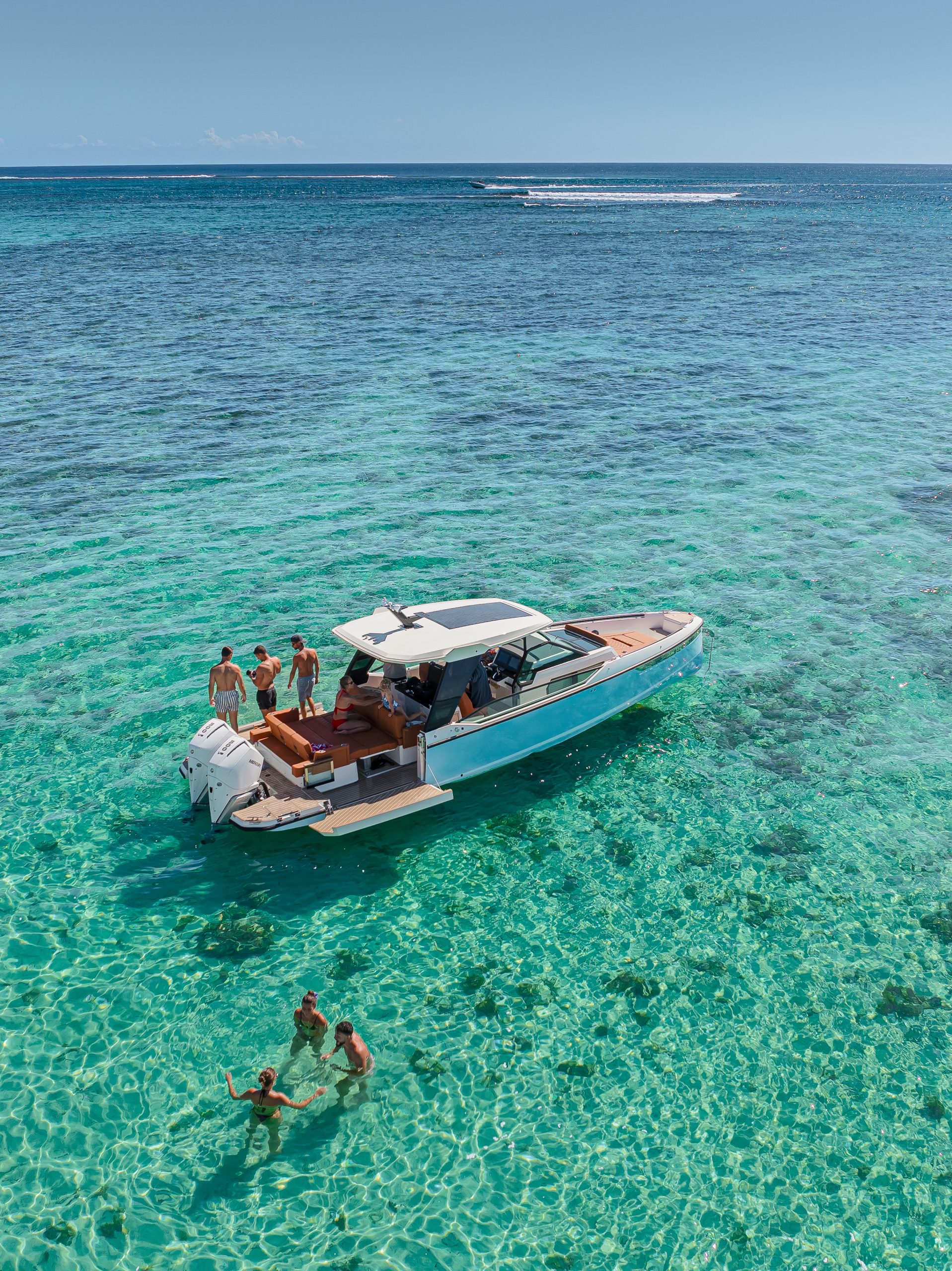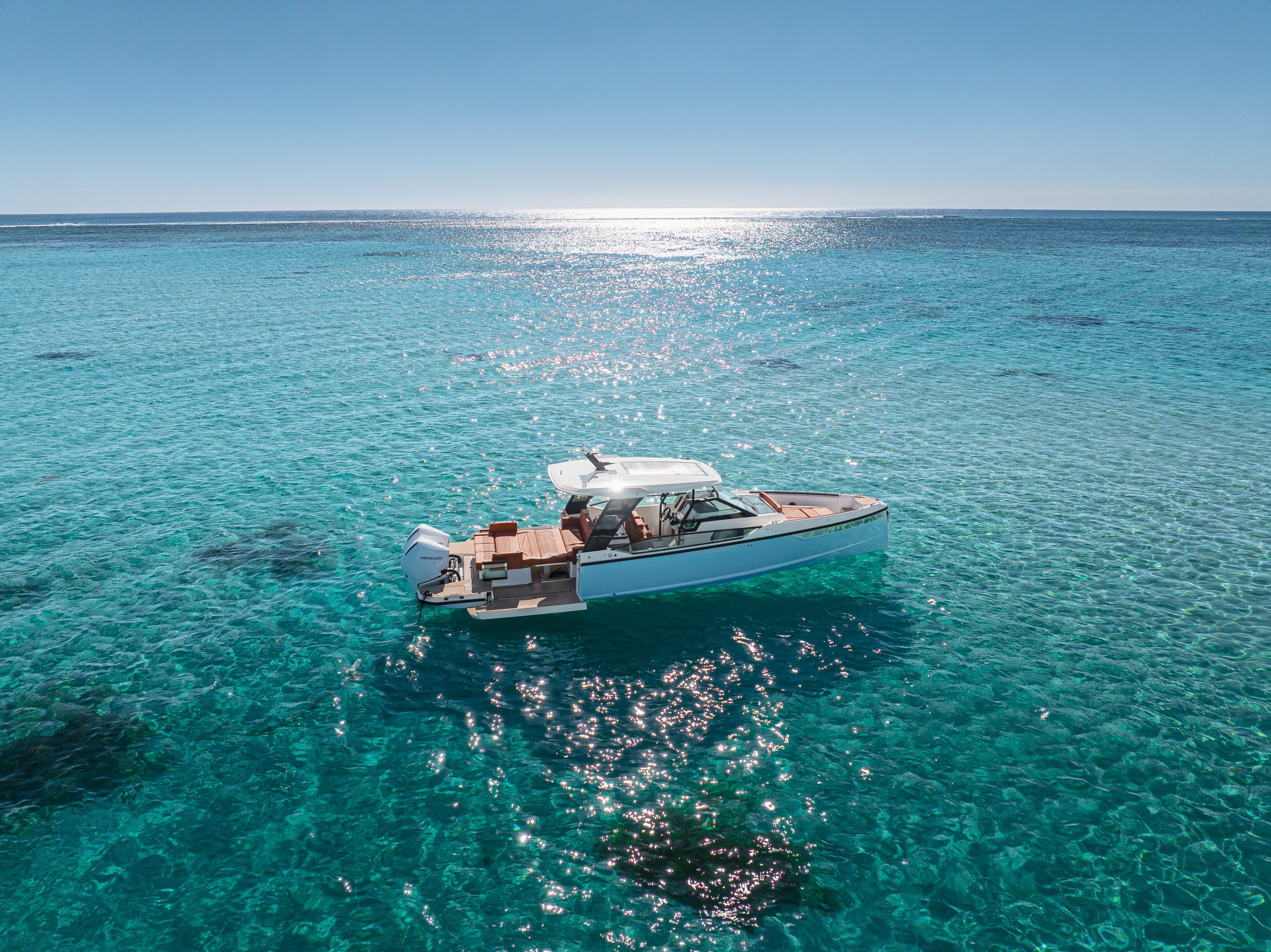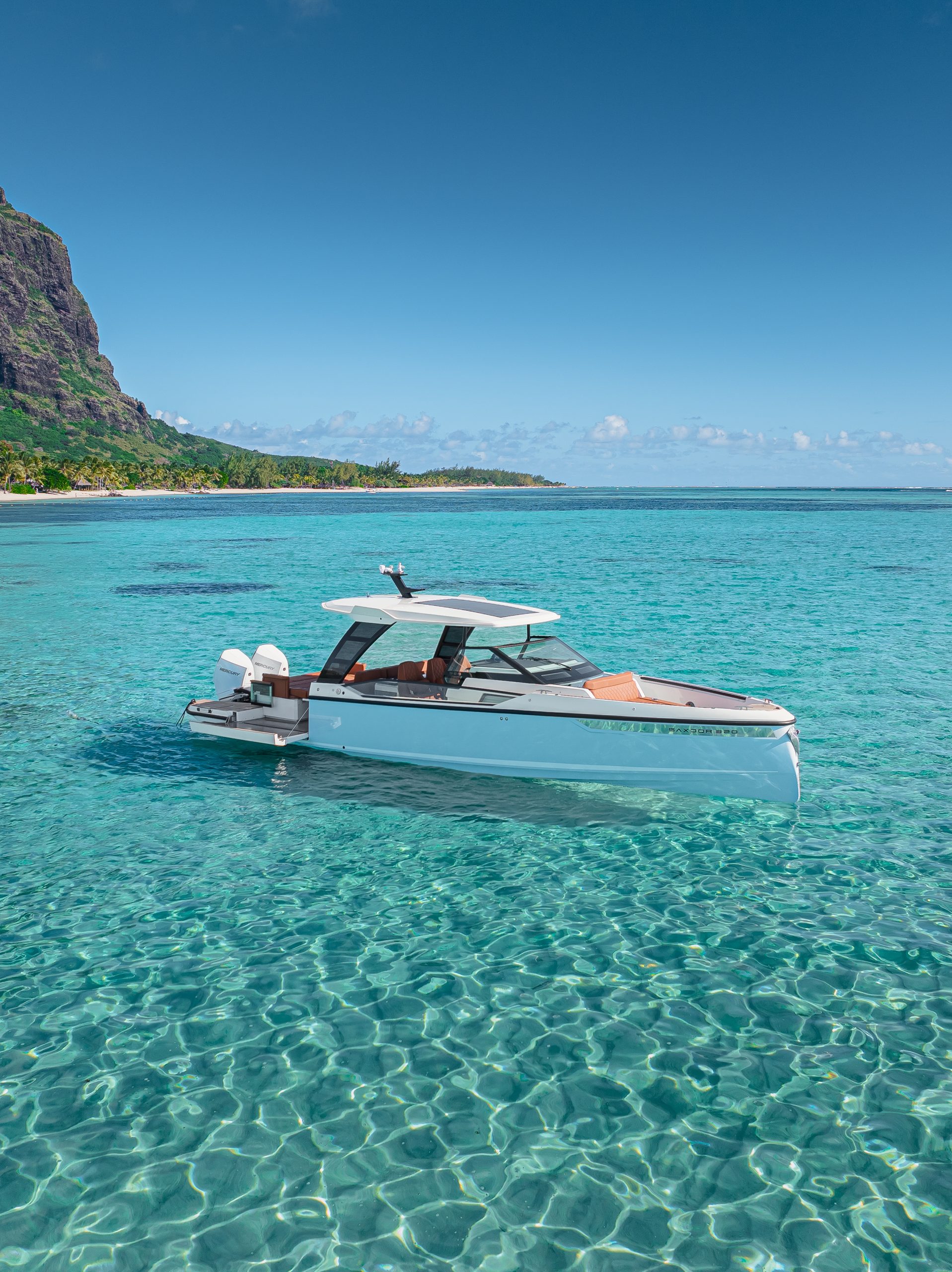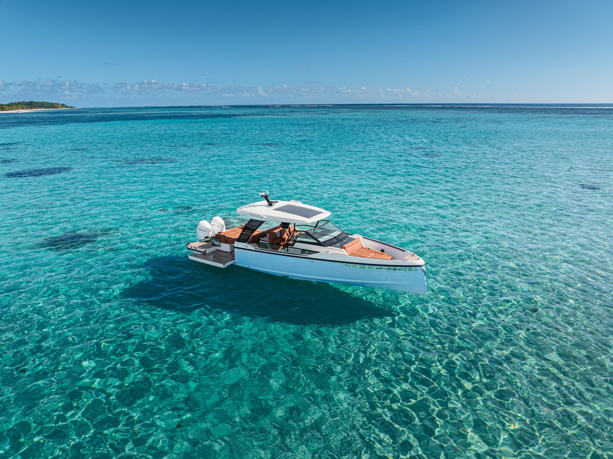 De Saxdor 320 GTO levert een vaareigenschap die je zelden ervaart. Aangedreven door twee krachtige Mercury 300 pk buitenboordmotoren behaalt hij moeiteloos snelheden van ruim 50 knopen, met een ideale kruissnelheid tussen de 20 en 40 knopen. De besturing is uiterst precies en responsief, waardoor u volledige controle heeft, of u nu door rustige baaien vaart of met hoge snelheid over open zee glijdt. De dubbele traptreden in de romp zorgen voor extra lift, minder weerstand en een ongelooflijk soepele rit — elke meter op het water voelt als puur rijplezier.