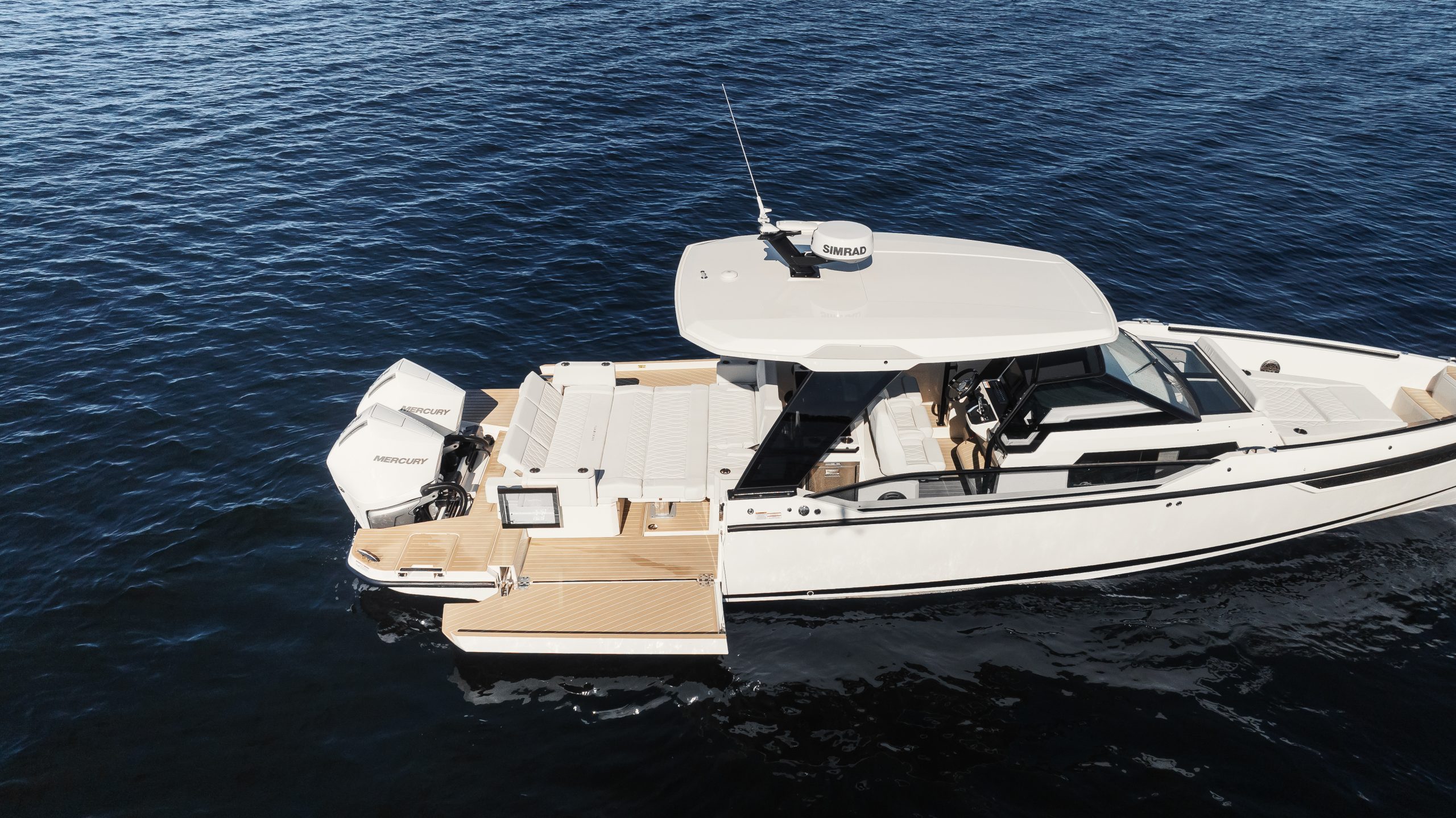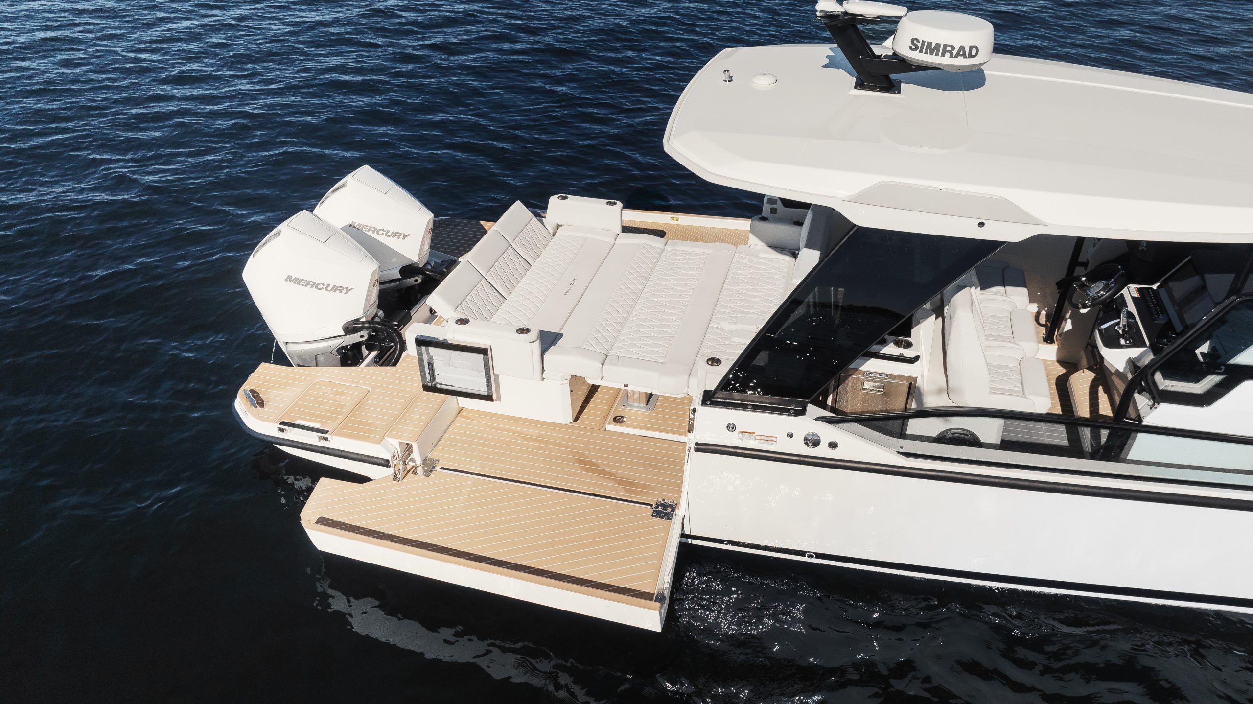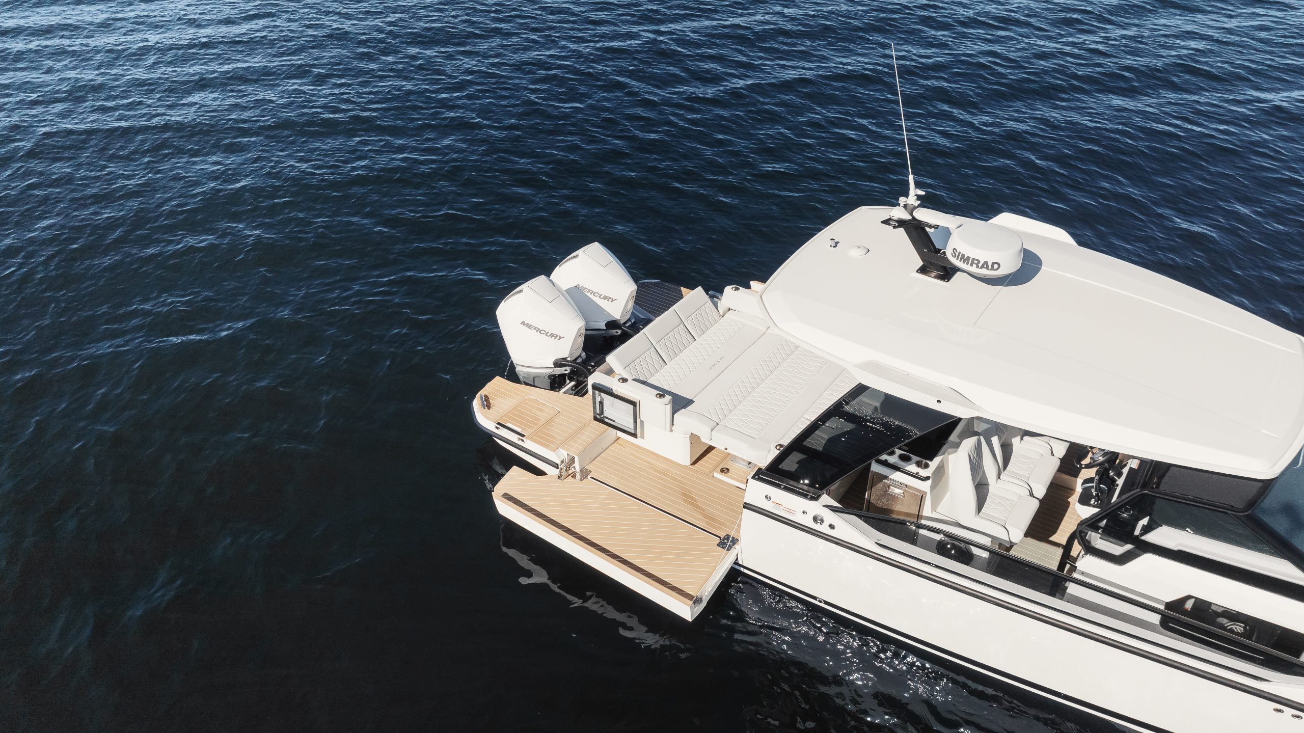 De moderne technologie aan boord tilt de vaarervaring naar een hoger niveau. Het geavanceerde navigatiepakket bestaat uit twee Simrad-displays, radar, VHF en AIS, zodat u altijd volledig overzicht houdt over navigatie, motorprestaties en vaarroutes. Dankzij het Mercury Joystick Piloting-systeem wordt aanmeren kinderspel: u manoeuvreert moeiteloos zijwaarts of draait op de plaats, zelfs bij wind of stroming.