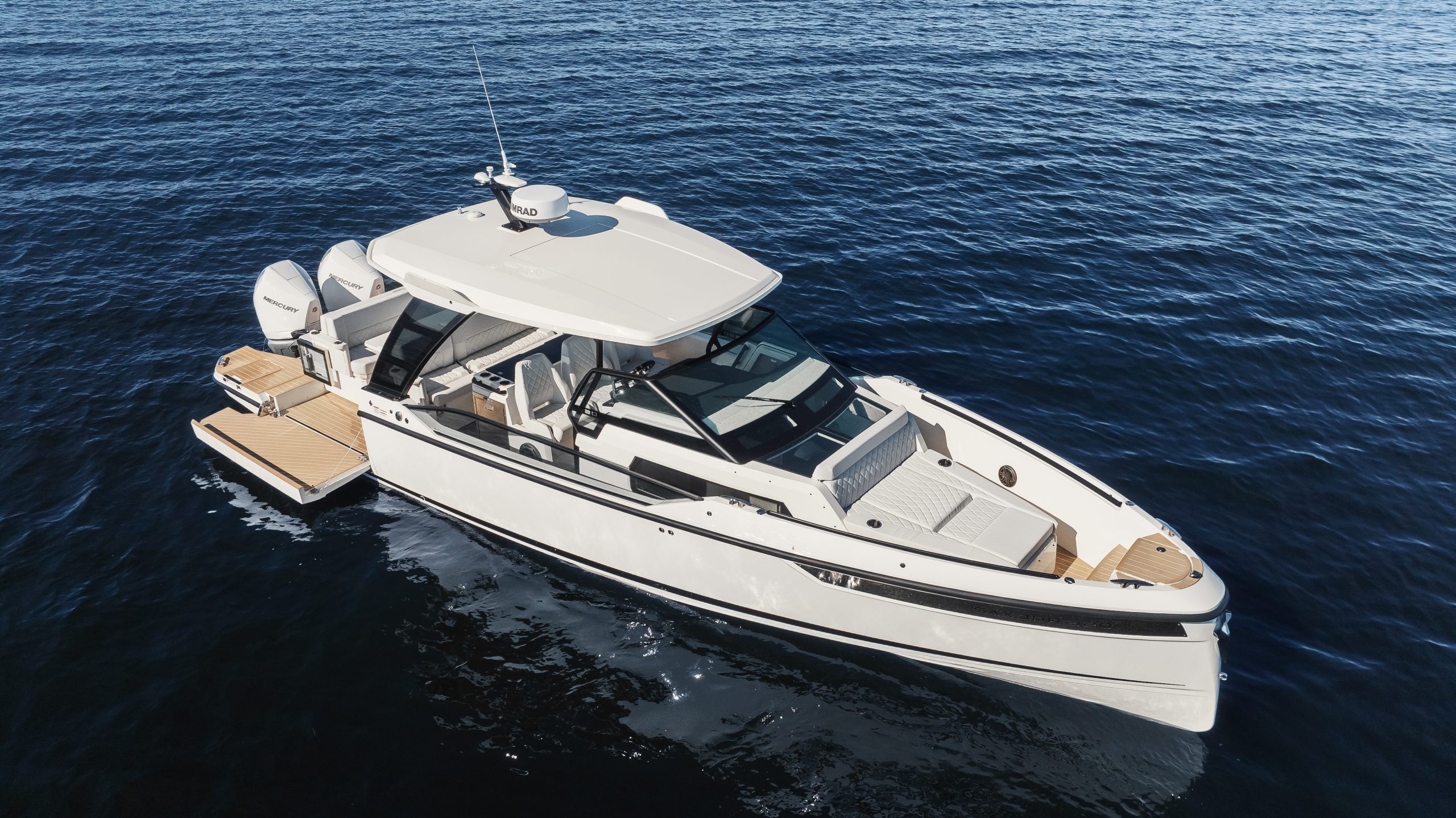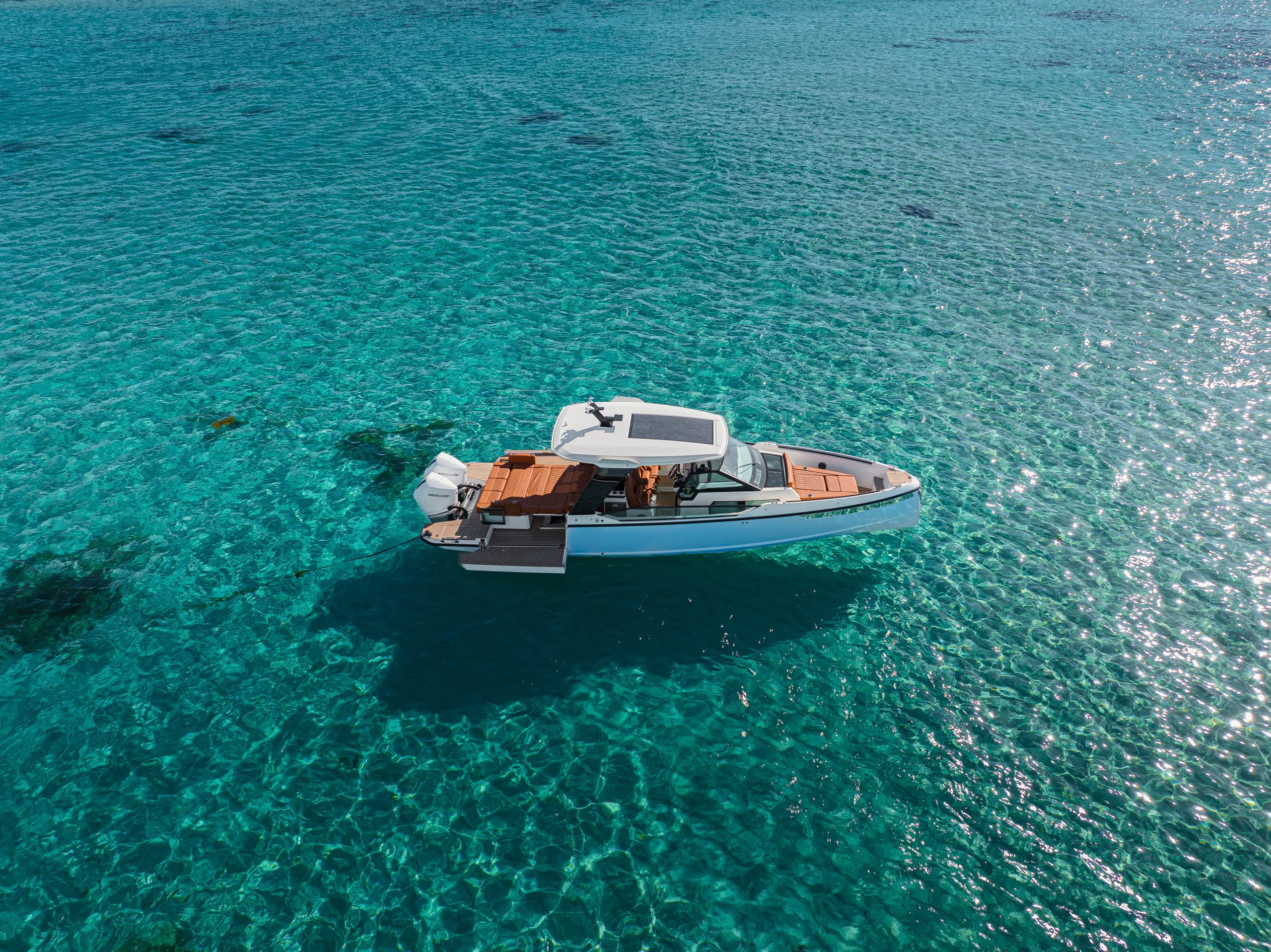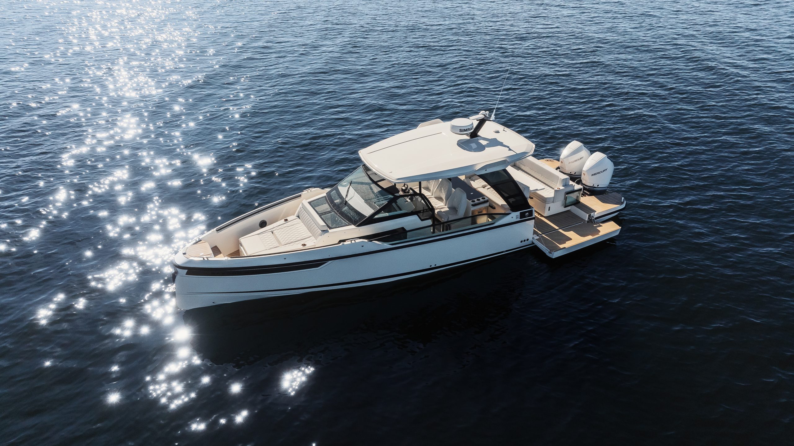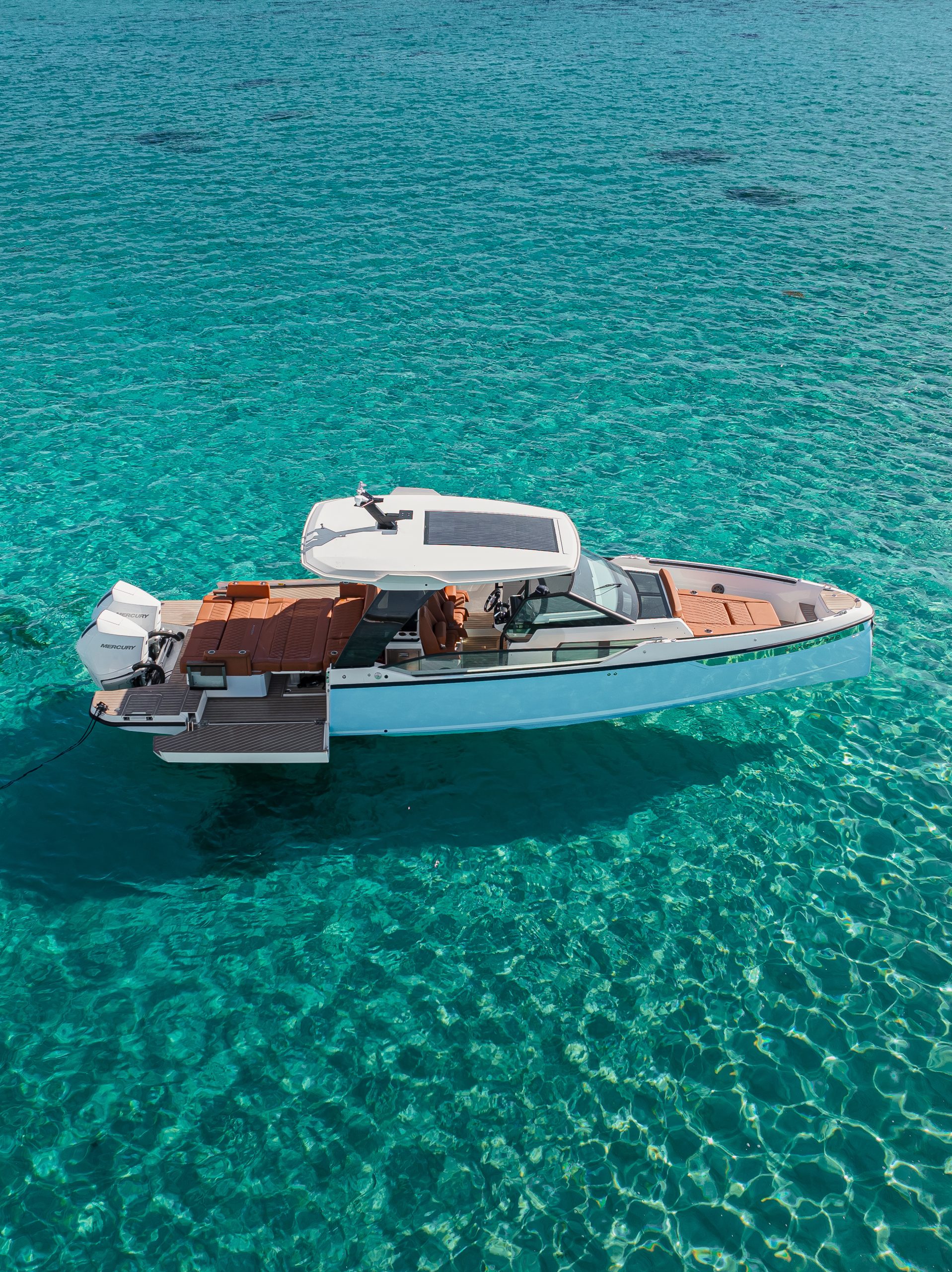 De moderne technologie aan boord tilt de vaarervaring naar een hoger niveau. Het geavanceerde navigatiepakket bestaat uit twee Simrad-displays, radar, VHF en AIS, zodat u altijd volledig overzicht houdt over navigatie, motorprestaties en vaarroutes. Dankzij het Mercury Joystick Piloting-systeem wordt aanmeren kinderspel: u manoeuvreert moeiteloos zijwaarts of draait op de plaats, zelfs bij wind of stroming.