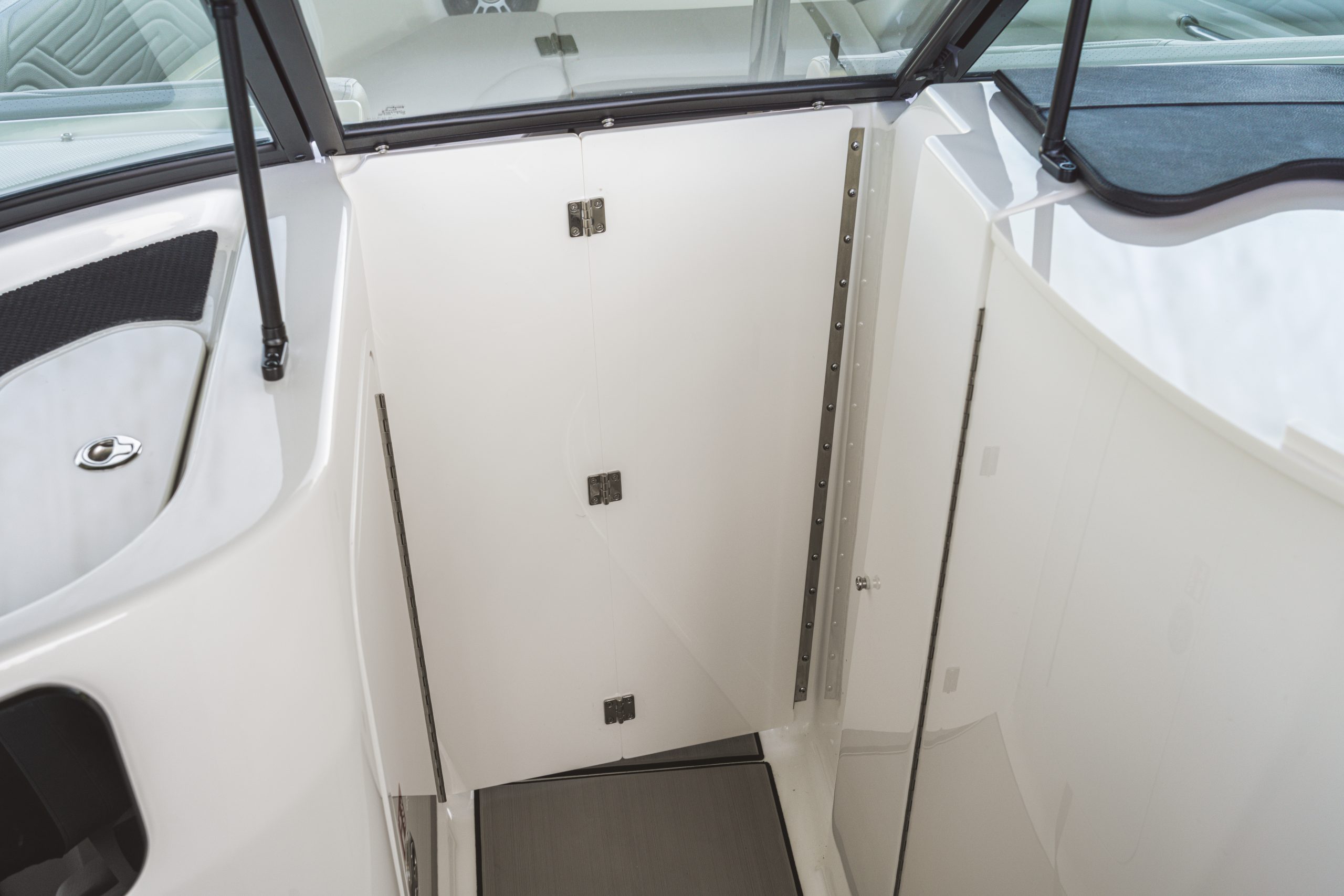 • Bow walkthrough with hinged windshield door & fiberglass block-off door