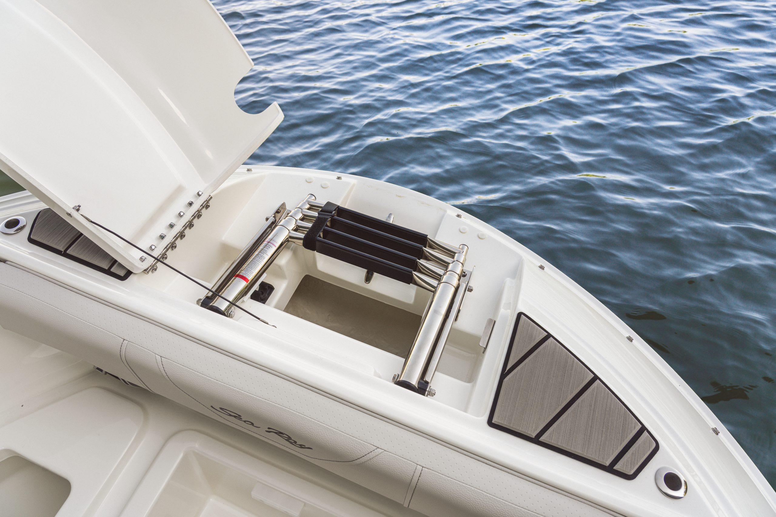 De grote zwemplatform met optionele handmatig onderdompelbare zwemtrap maakt het instappen in het water eenvoudig en veilig. Met een lengte van 7,06 meter, een breedte van 2,59 meter en een diepe V-romp van 21° biedt de SDX 230 Surf de perfecte balans tussen wendbaarheid, stabiliteit en comfort.