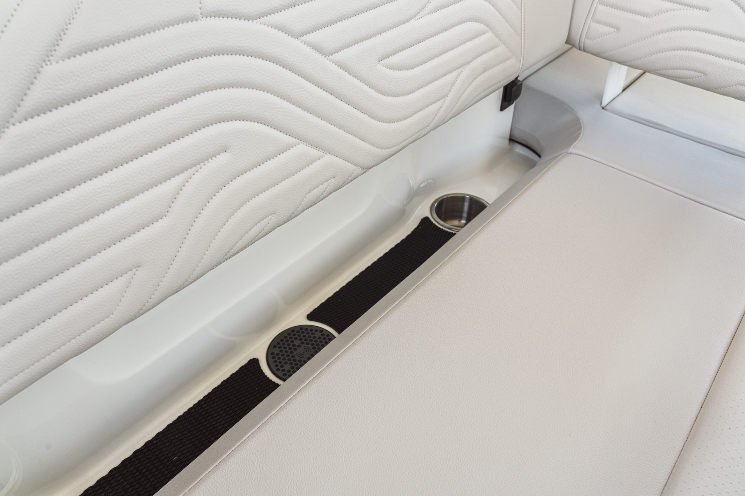 Na een actieve dag op het water verandert de SDX 230 Surf moeiteloos in een comfortabele loungeboot. De ruime boeg met luxe zitplaatsen en de vergrote zonneweide bieden volop ruimte om te ontspannen. De achterbank kan eenvoudig worden omgevormd tot een brede zonnebank met verstelbare rugleuning, terwijl een geïntegreerde koelbox zorgt dat drankjes altijd koud staan.