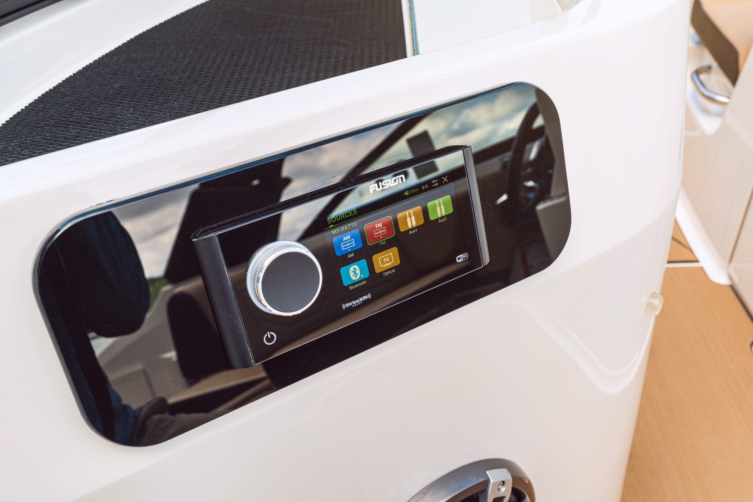 De moderne stuurstand is uitgerust met twee digitale Simrad® NSX® 9” touchscreens met Mercury® SmartCraft® Connect, waardoor alle gegevens over snelheid, navigatie en motorprestaties altijd binnen handbereik zijn.
