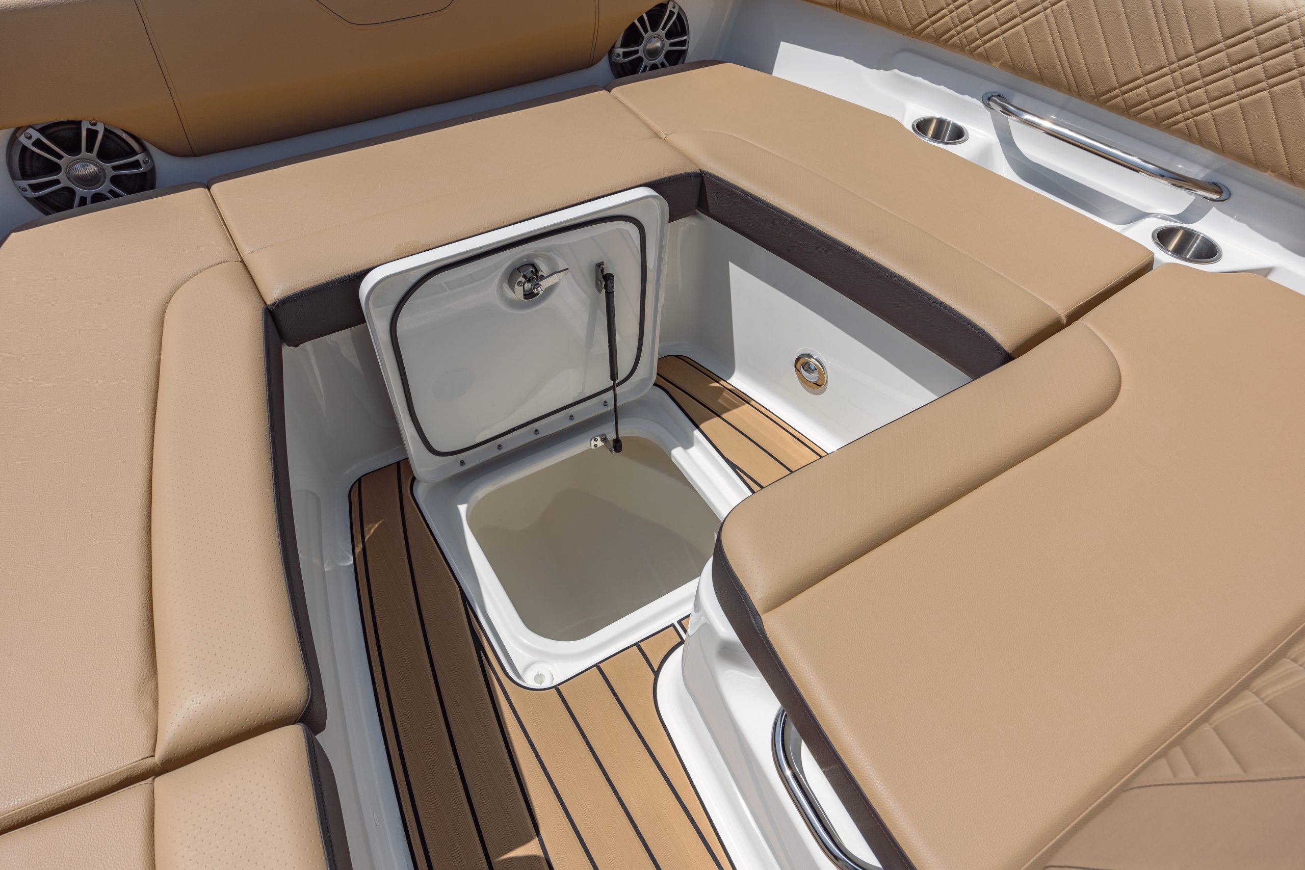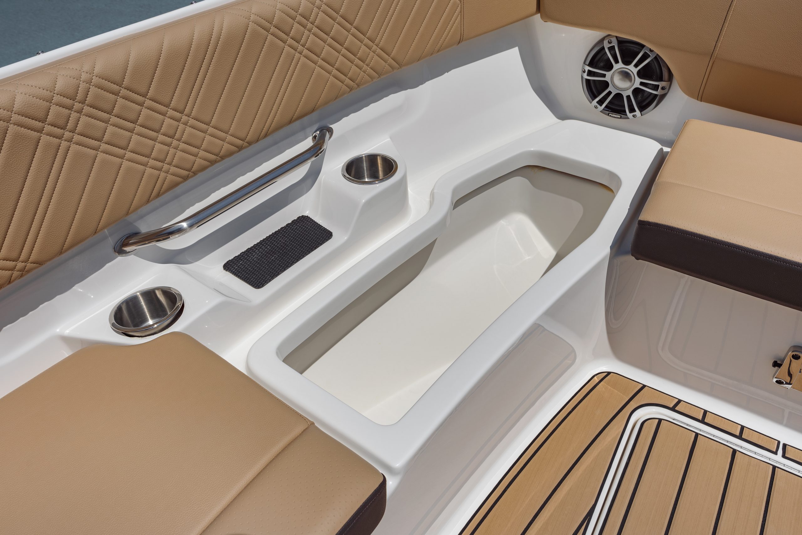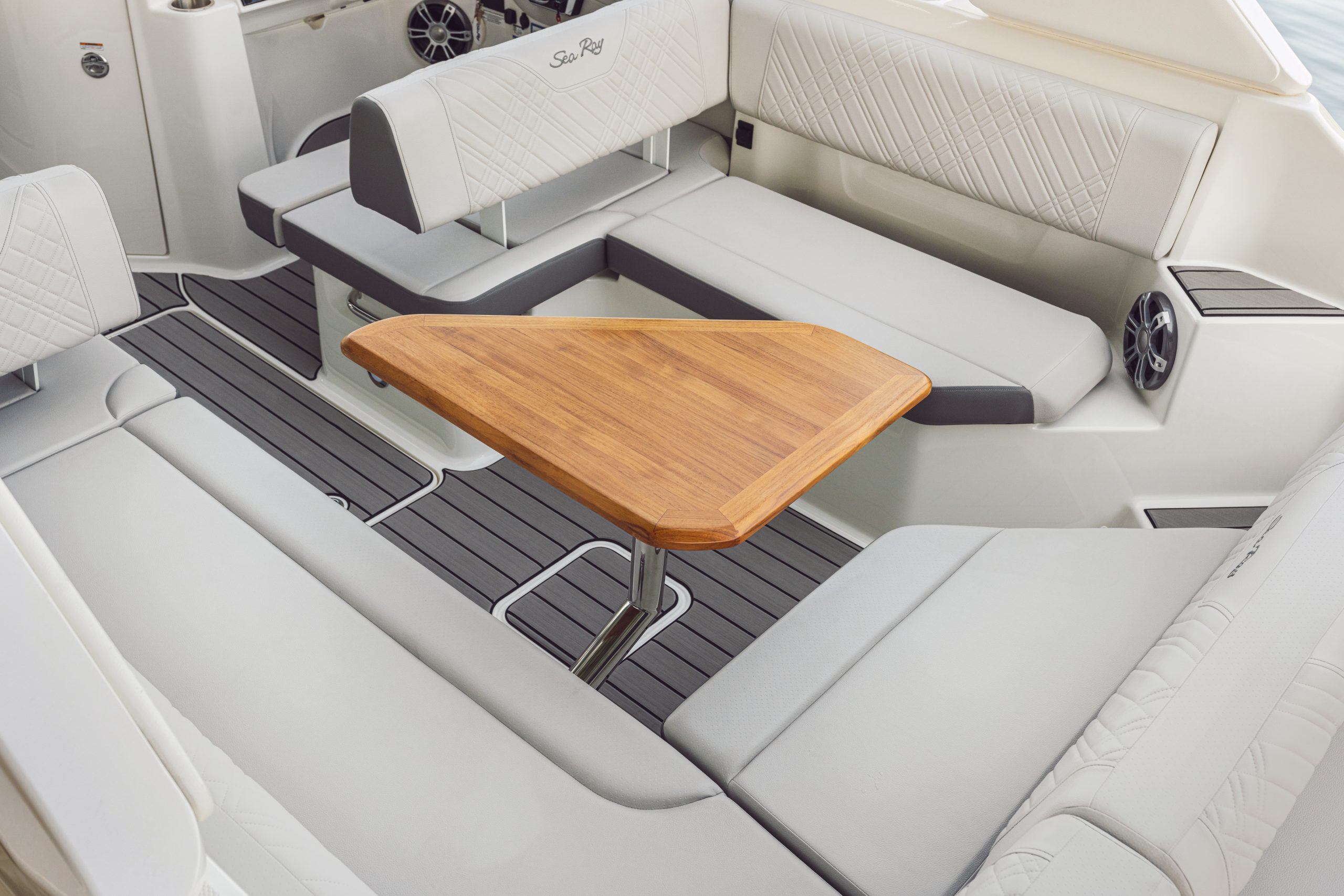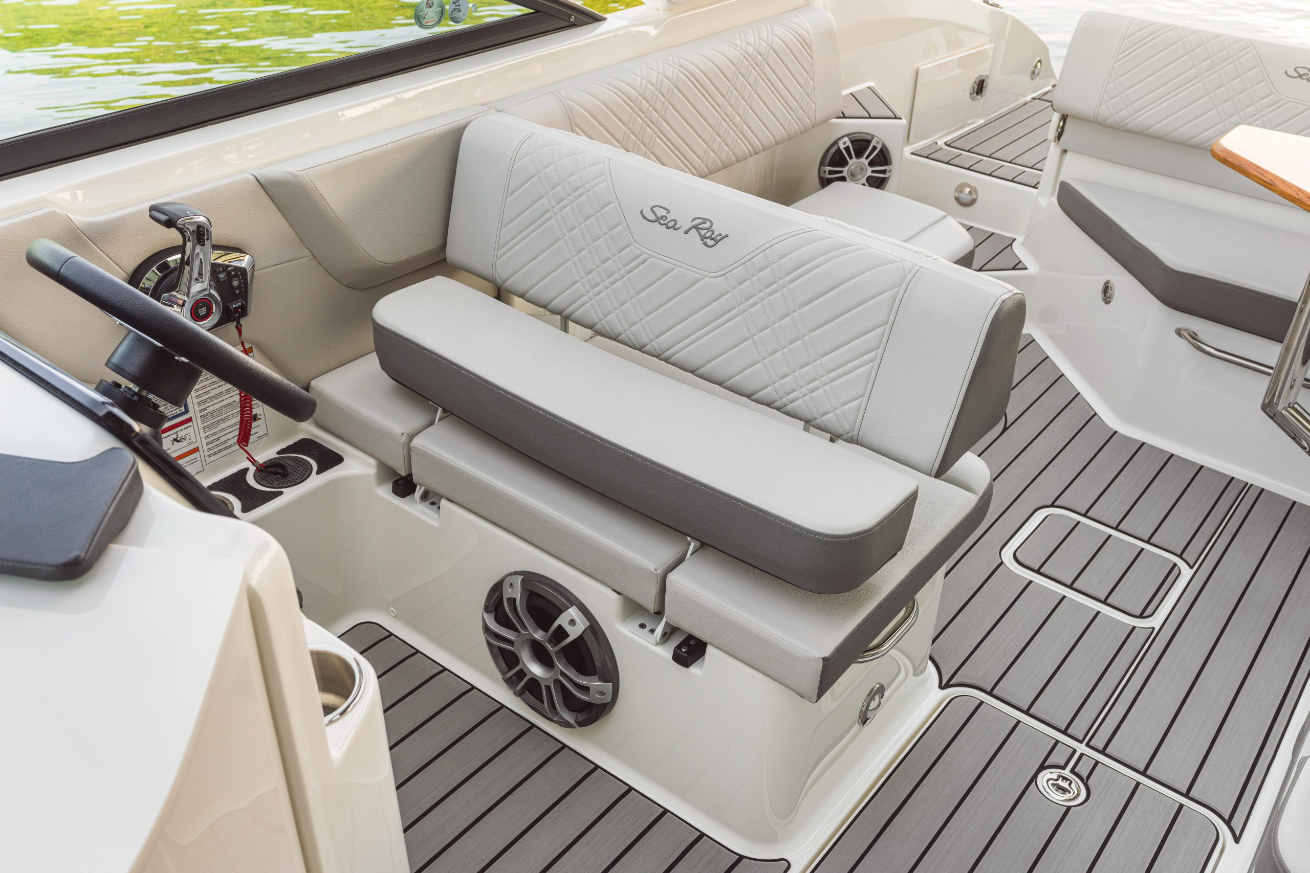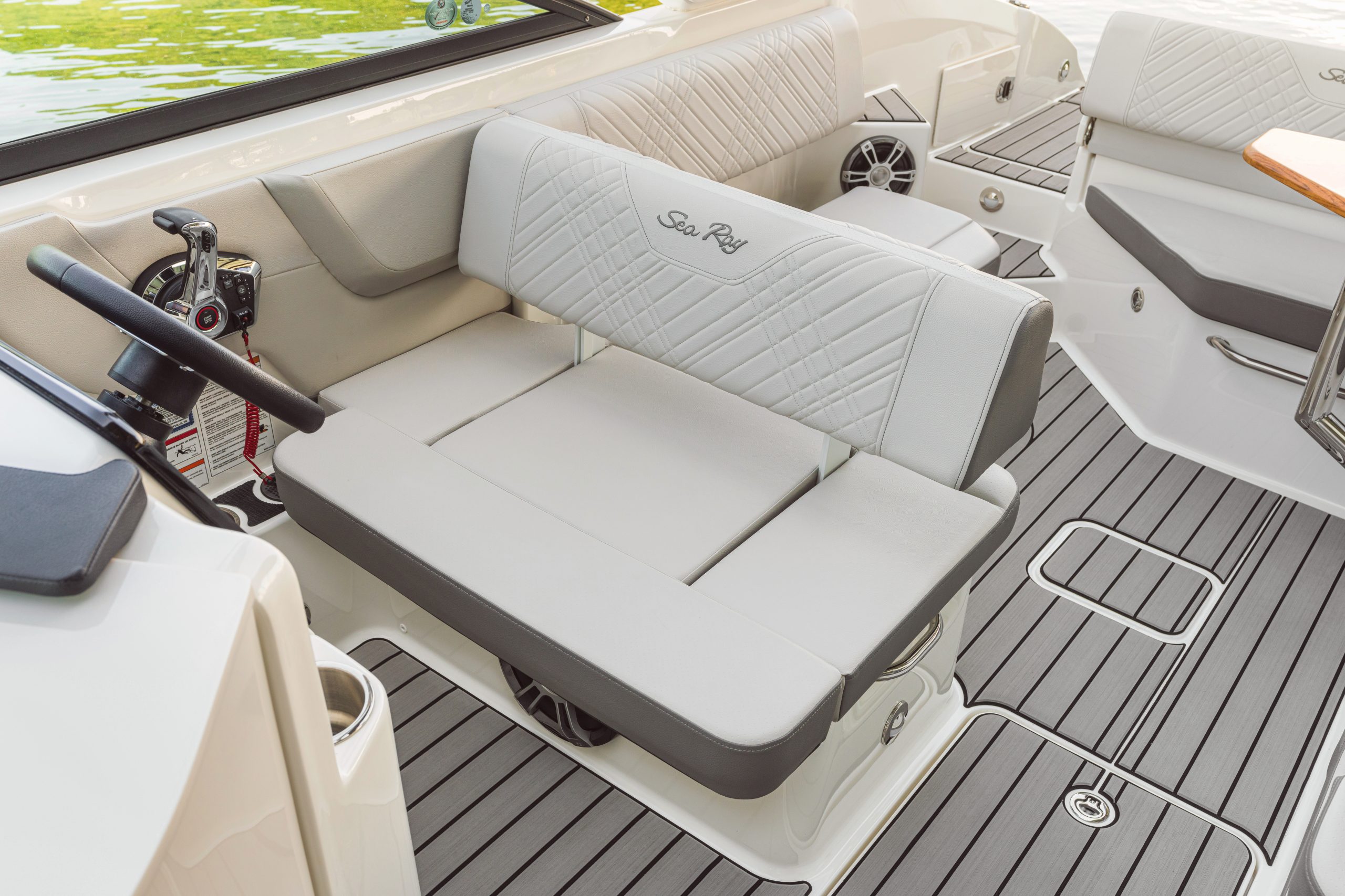 Het strakke, sportieve ontwerp met Sea Ray’s kenmerkende lijnen en hoogwaardige afwerking straalt klasse en karakter uit.
