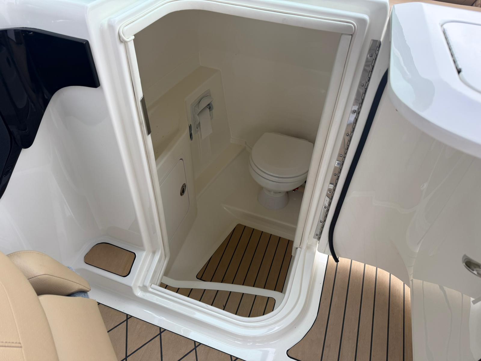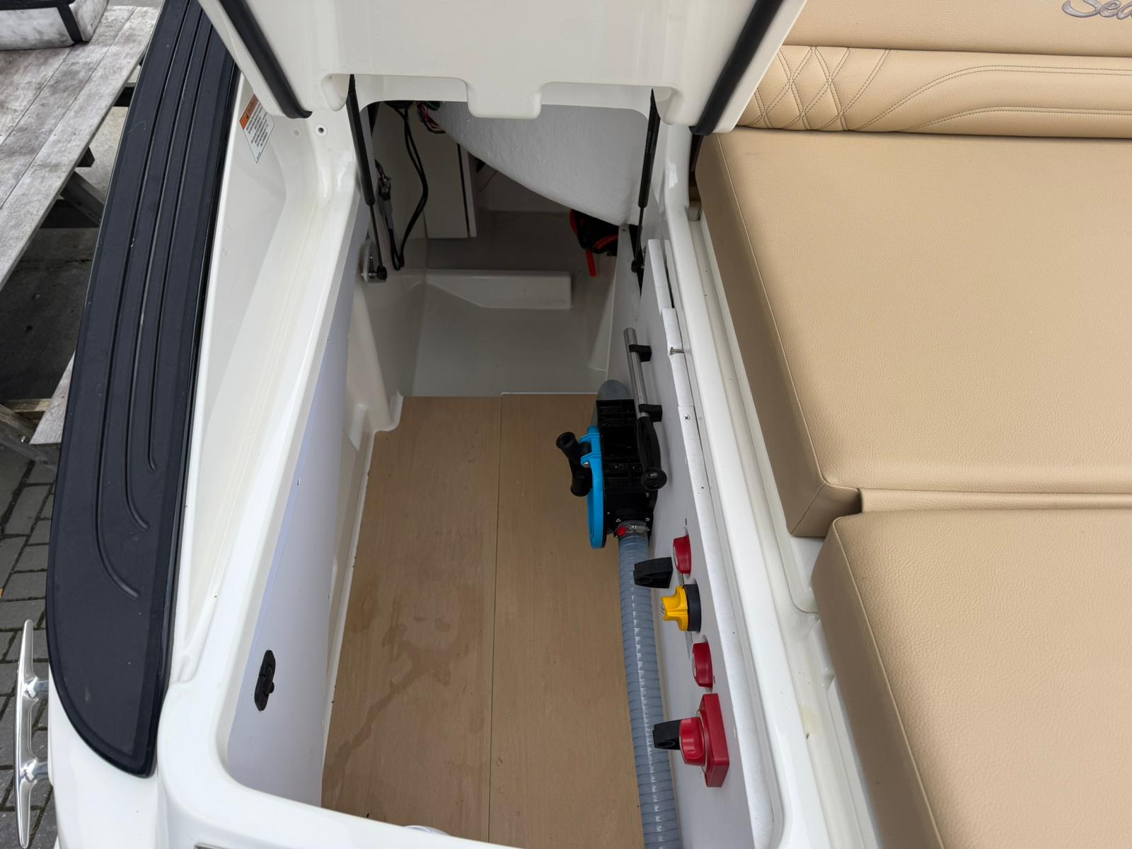 Alles aan deze boot nodigt uit om te genieten. De royale cockpit biedt comfortabele, diepe zitplaatsen die perfect zijn afgestemd op lange dagen op het water. De slimme indeling zorgt ervoor dat iedereen gezellig bij elkaar zit, terwijl er toch meer dan voldoende ruimte is om vrij te bewegen. Overal vind je subtiel geïntegreerde opbergmogelijkheden, zodat uitrusting, waterspeelgoed en persoonlijke spullen netjes uit het zicht blijven en de boot altijd opgeruimd oogt.