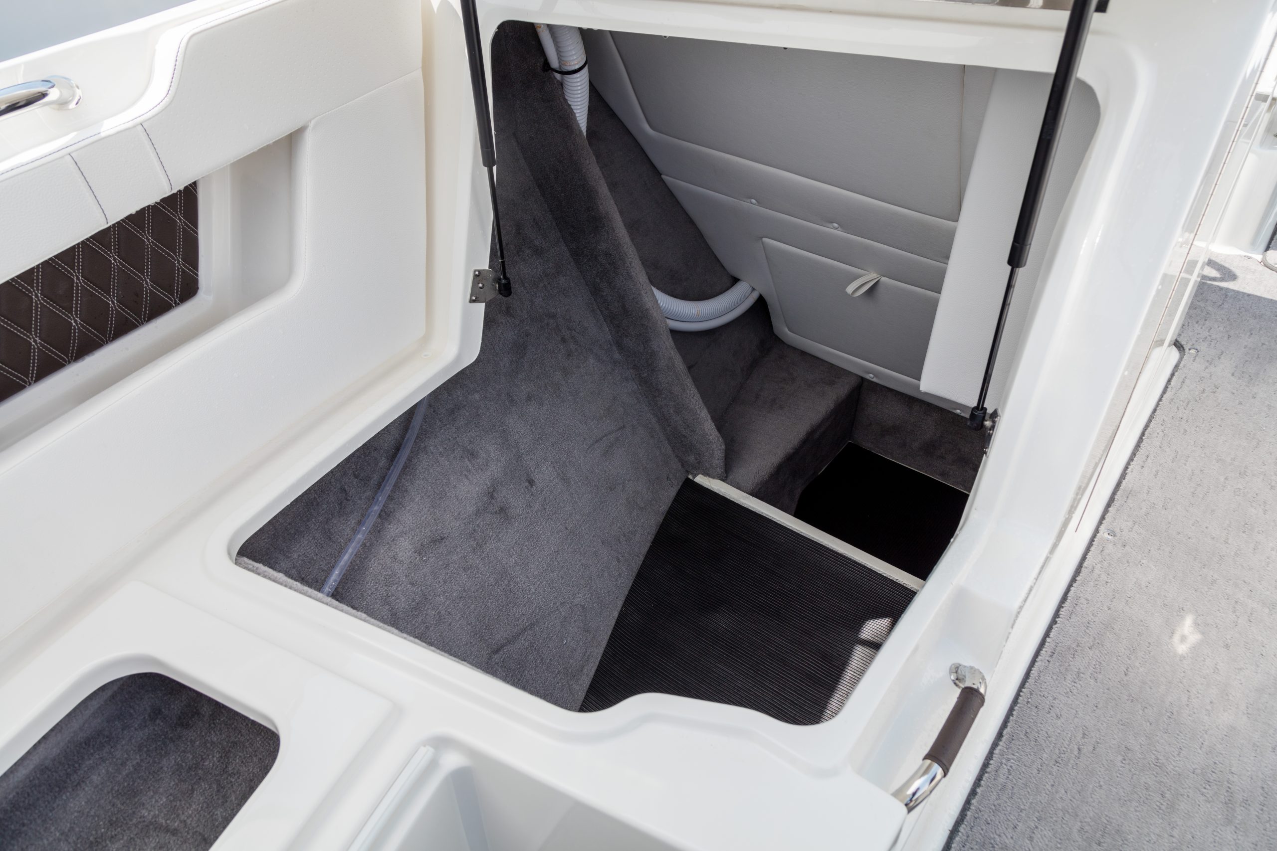 Zodra je de motoren start, komt de ware kracht van deze boot tot leven. De dubbele Mercury® MerCruiser® 4.5L MPI motoren, gecombineerd met Joystick Piloting en het innovatieve Quiet Ride™-rompontwerp, bieden een ongekend stille, stabiele en responsieve vaarervaring. Elke bocht, elke versnelling voelt moeiteloos en precies. Je merkt: dit is meer dan varen – dit is beleven.