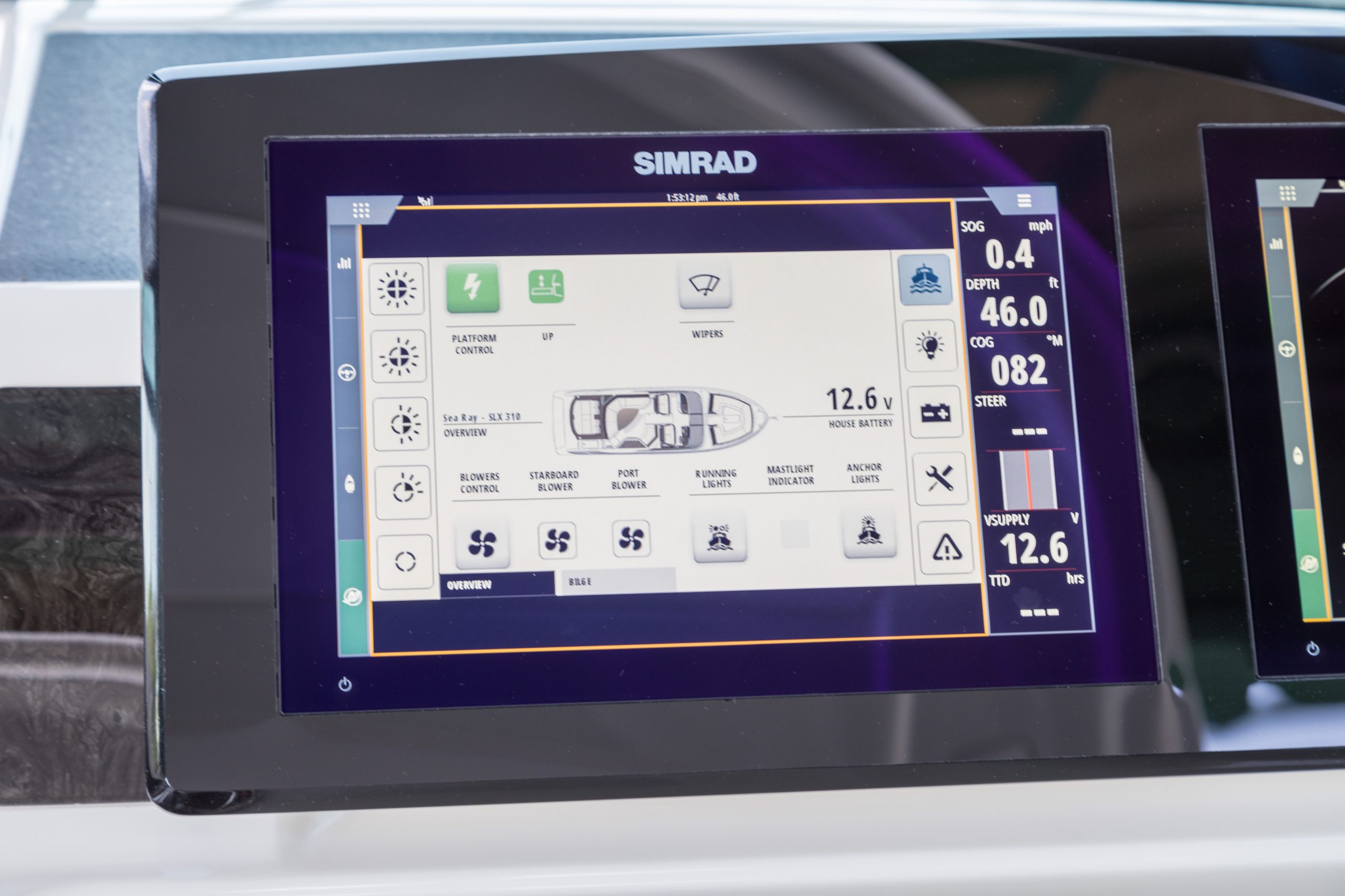 De stuurstand is modern en intuïtief, met standaard twee 9†Simrad Glass Dash-displays, die optioneel uit te breiden zijn naar 12 inch. Deze displays geven je in één oogopslag alle essentiële gegevens, inclusief kaartplotter, dieptemeter en viszoeker. Dankzij Mercury VesselView Link houd je volledige controle over je motoren, brandstofverbruik en navigatie. Alles is ontworpen om je vaartocht zo eenvoudig én indrukwekkend mogelijk te maken.