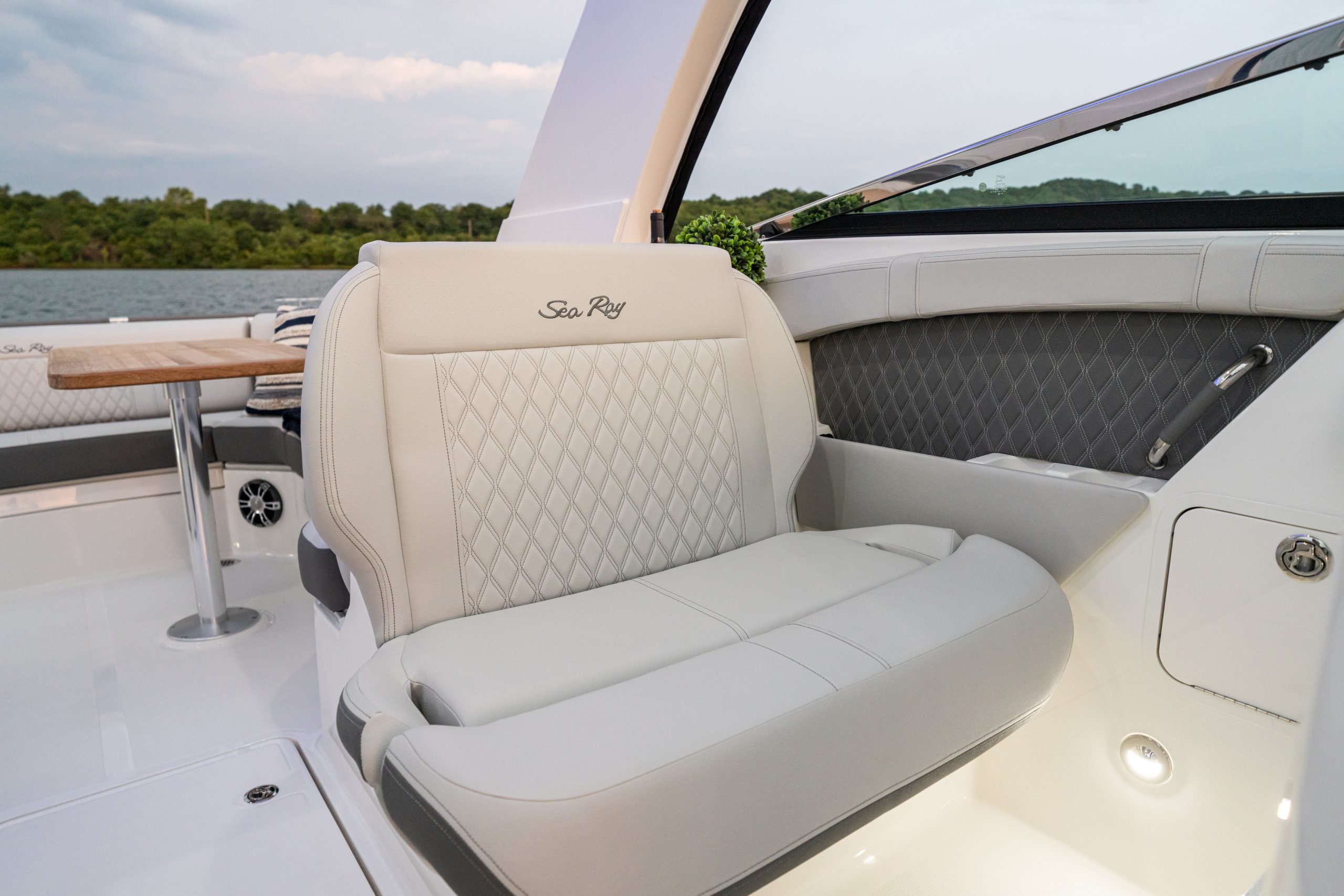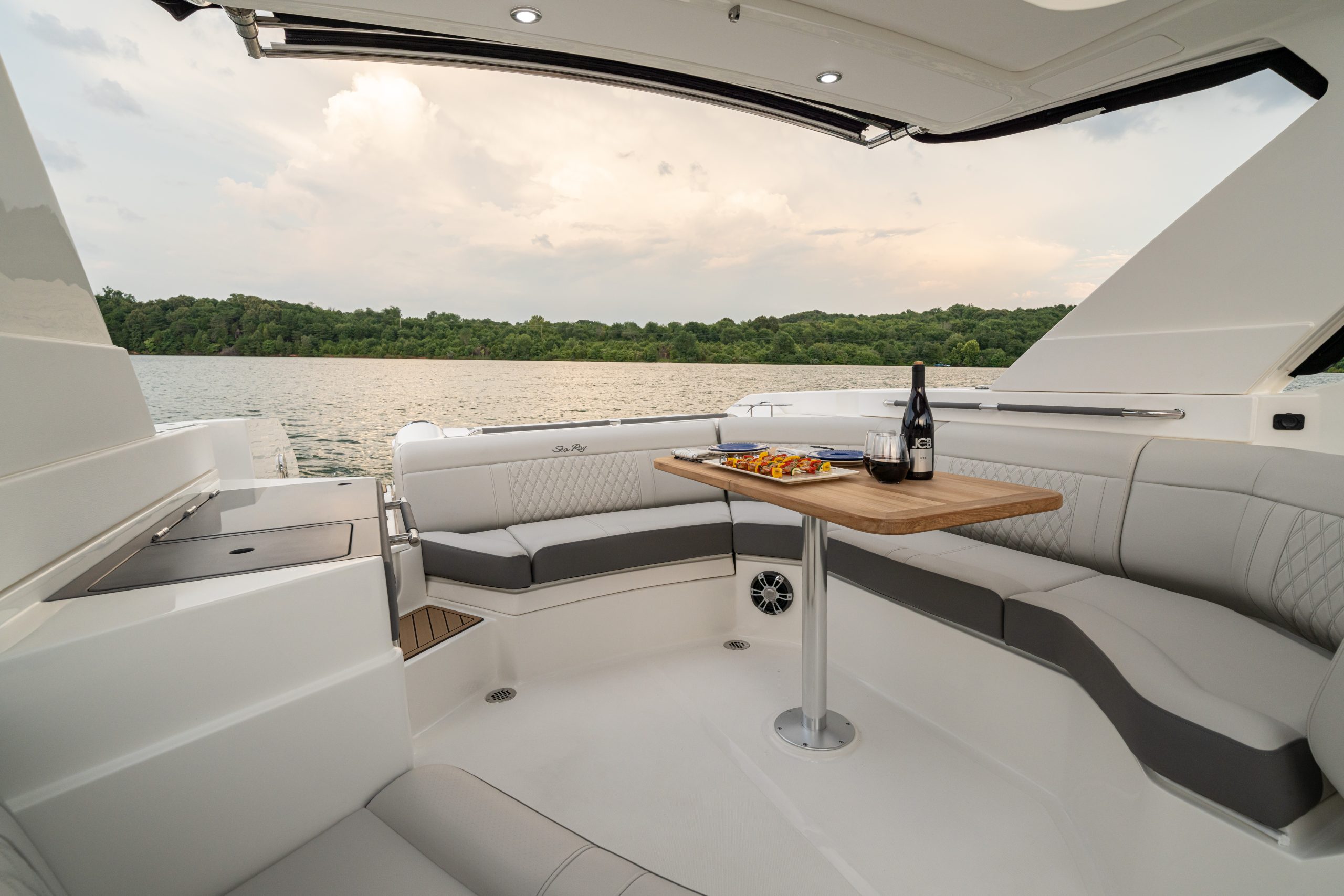 Zodra je voet zet aan boord van de Sea Ray SLX 350, voelt het alsof je een exclusieve wereld betreedt – een wereld waarin luxe, innovatie en vaargenot naadloos samenkomen. Deze sportboot is niet zomaar een boot, maar een statement van stijl en comfort. Met een lengte van bijna 11 meter biedt de SLX 350 ruimte en vrijheid, verpakt in een elegant, krachtig ontwerp.