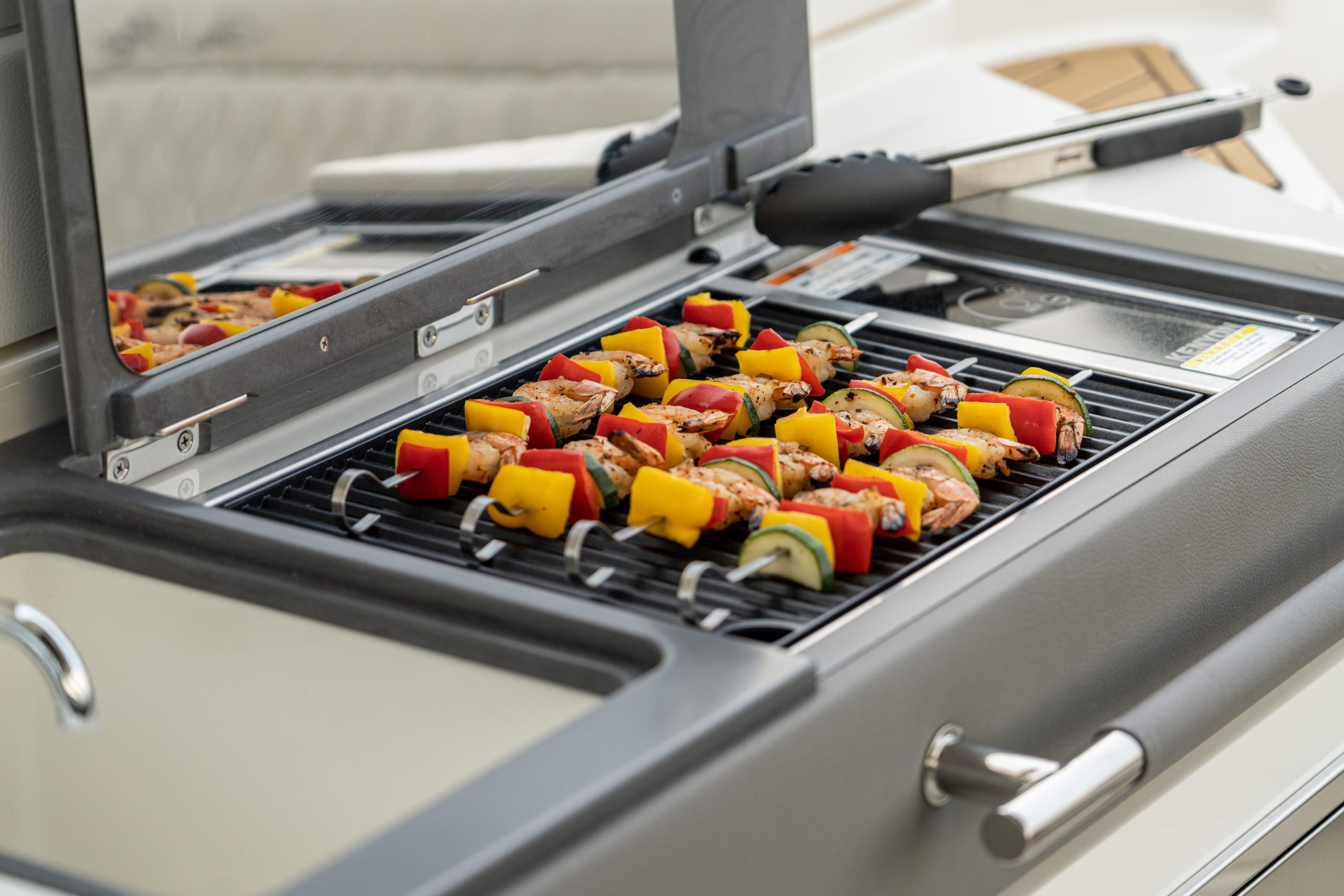 Met een brandstoftank van 606 liter, een watercapaciteit van 114 liter, en de Yacht Certified-capaciteit biedt de SLX 350 alles wat je nodig hebt voor lange, ontspannen dagen op het water. Elk detail is ontworpen voor comfort, prestaties en gebruiksgemak, van het standaard wetbar tot de brede doorgangen en royale opbergruimte.