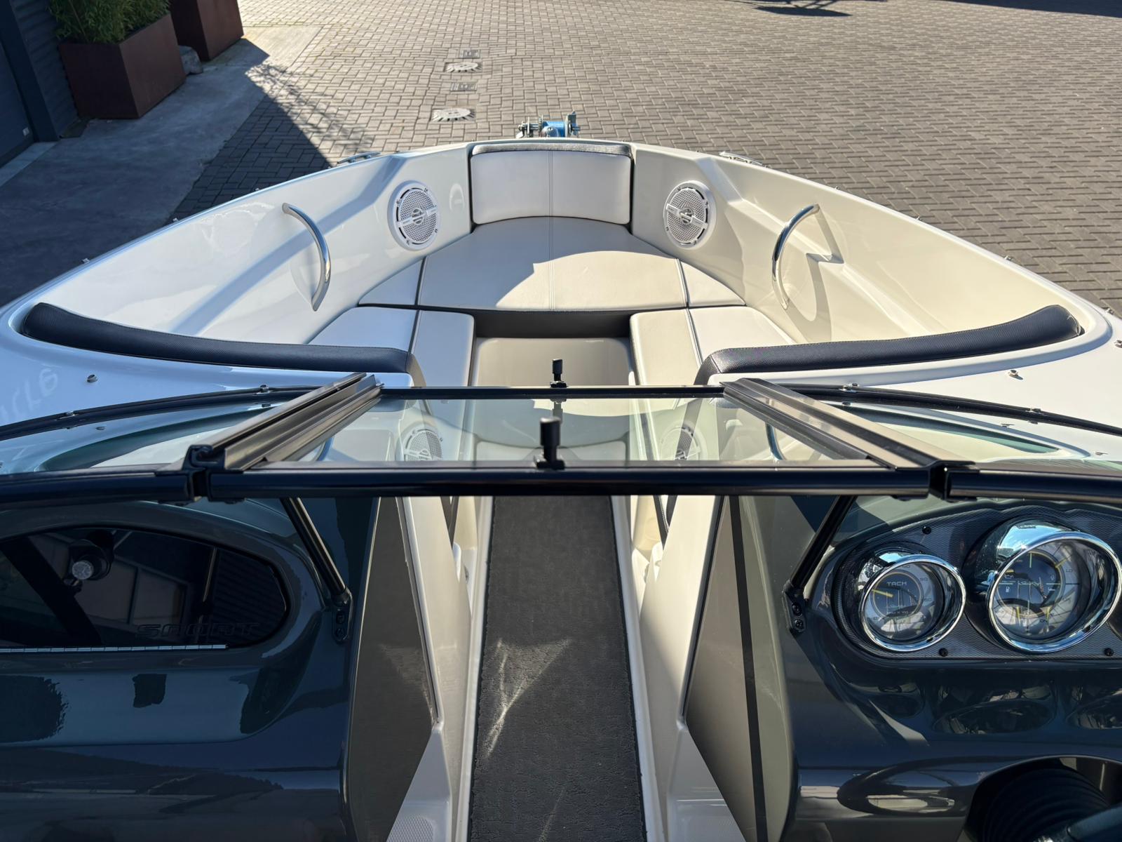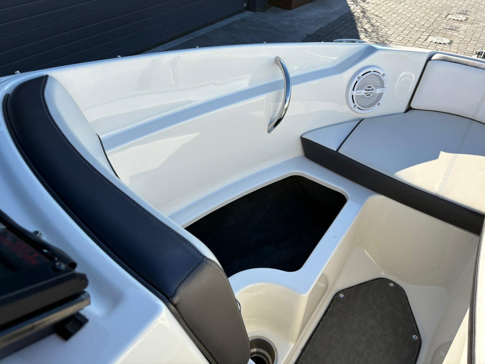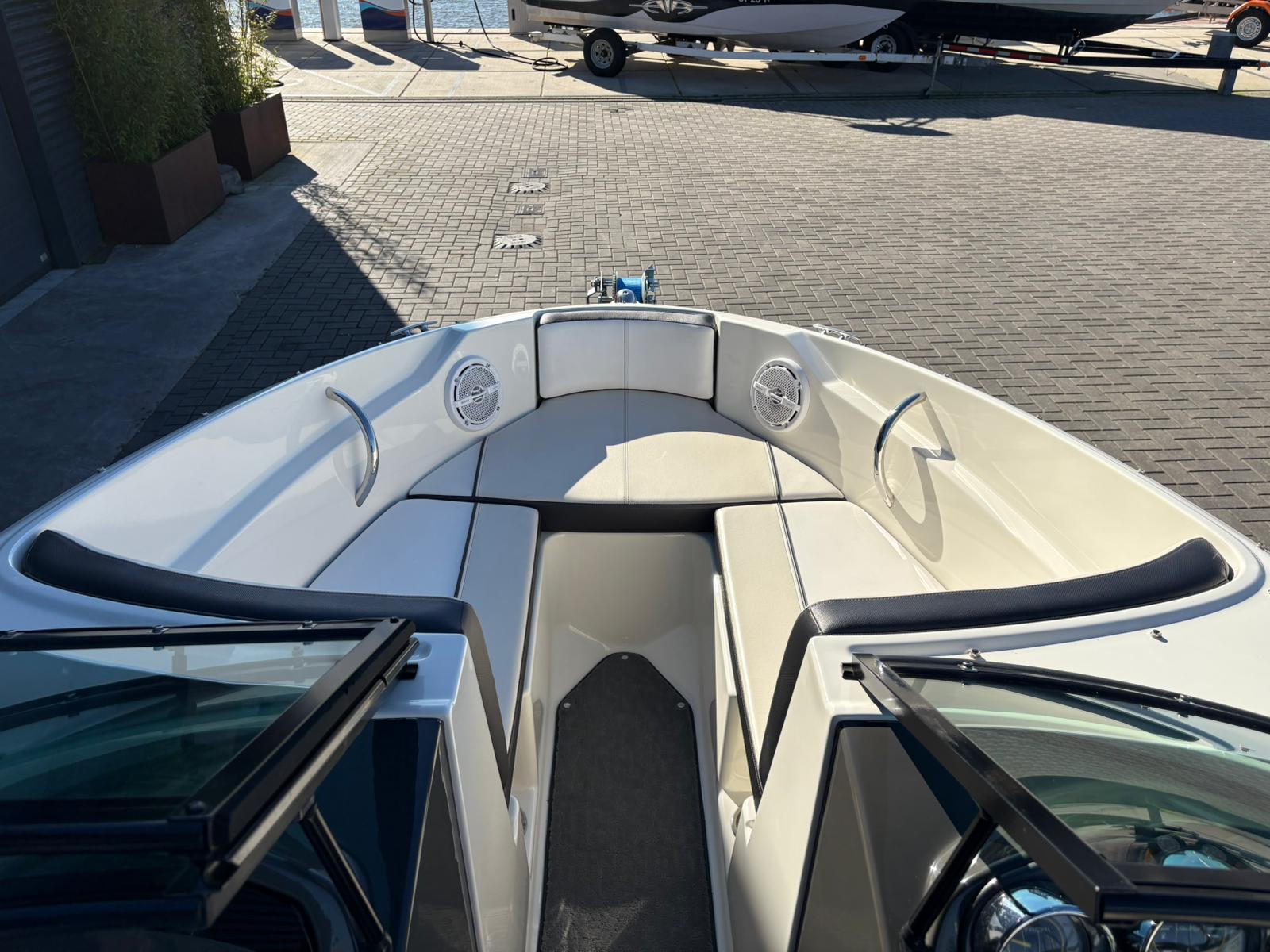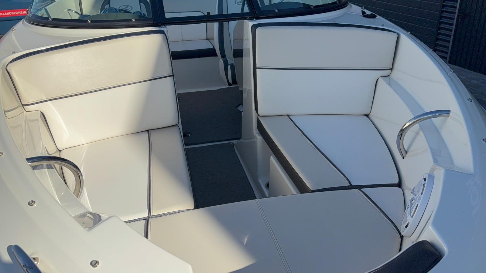 De stuurpositie is sportief en overzichtelijk uitgevoerd met klassieke analoge klokken, wat zorgt voor een tijdloze uitstraling en directe controle. De geïntegreerde dieptemeter geeft extra zekerheid tijdens het varen. Aan boord ontbreekt het bovendien niet aan comfort. De aanwezige geluidsinstallatie zorgt voor sfeer tijdens zonnige dagen op het water, terwijl de bimini top aangename schaduw biedt wanneer u even uit de zon wilt zitten.