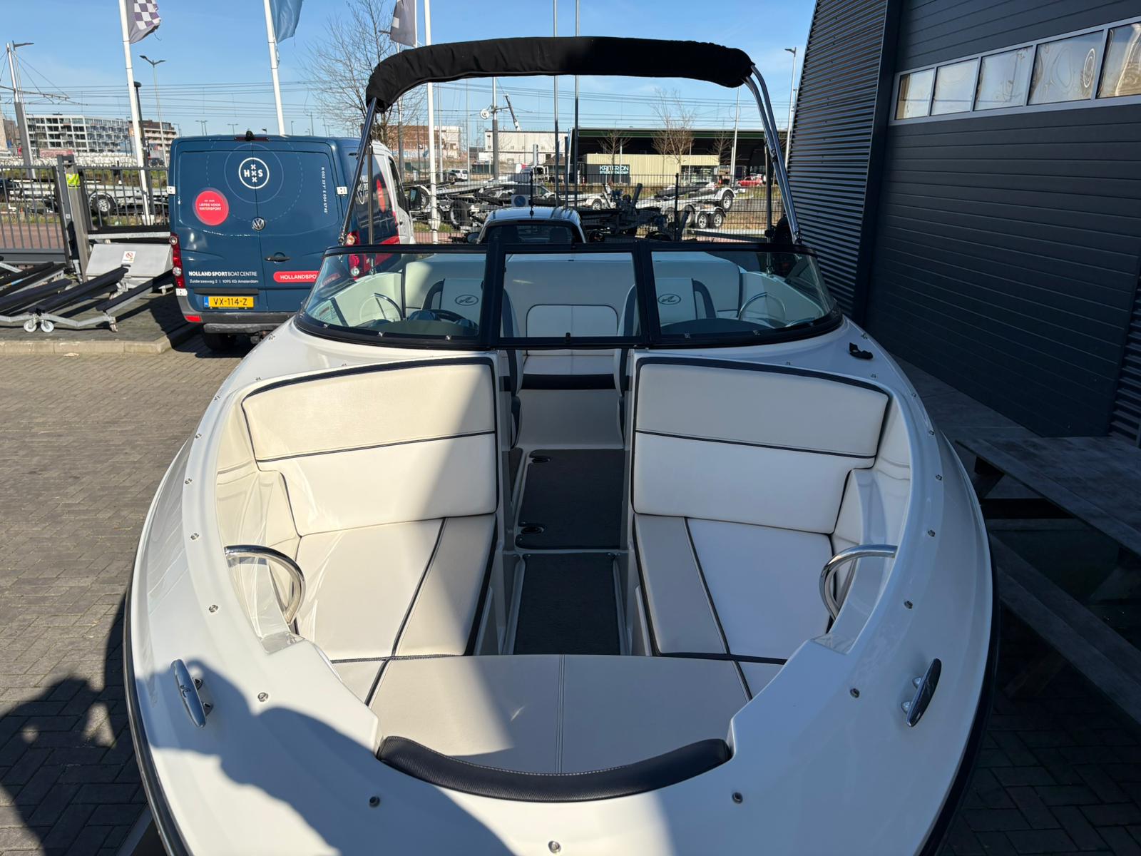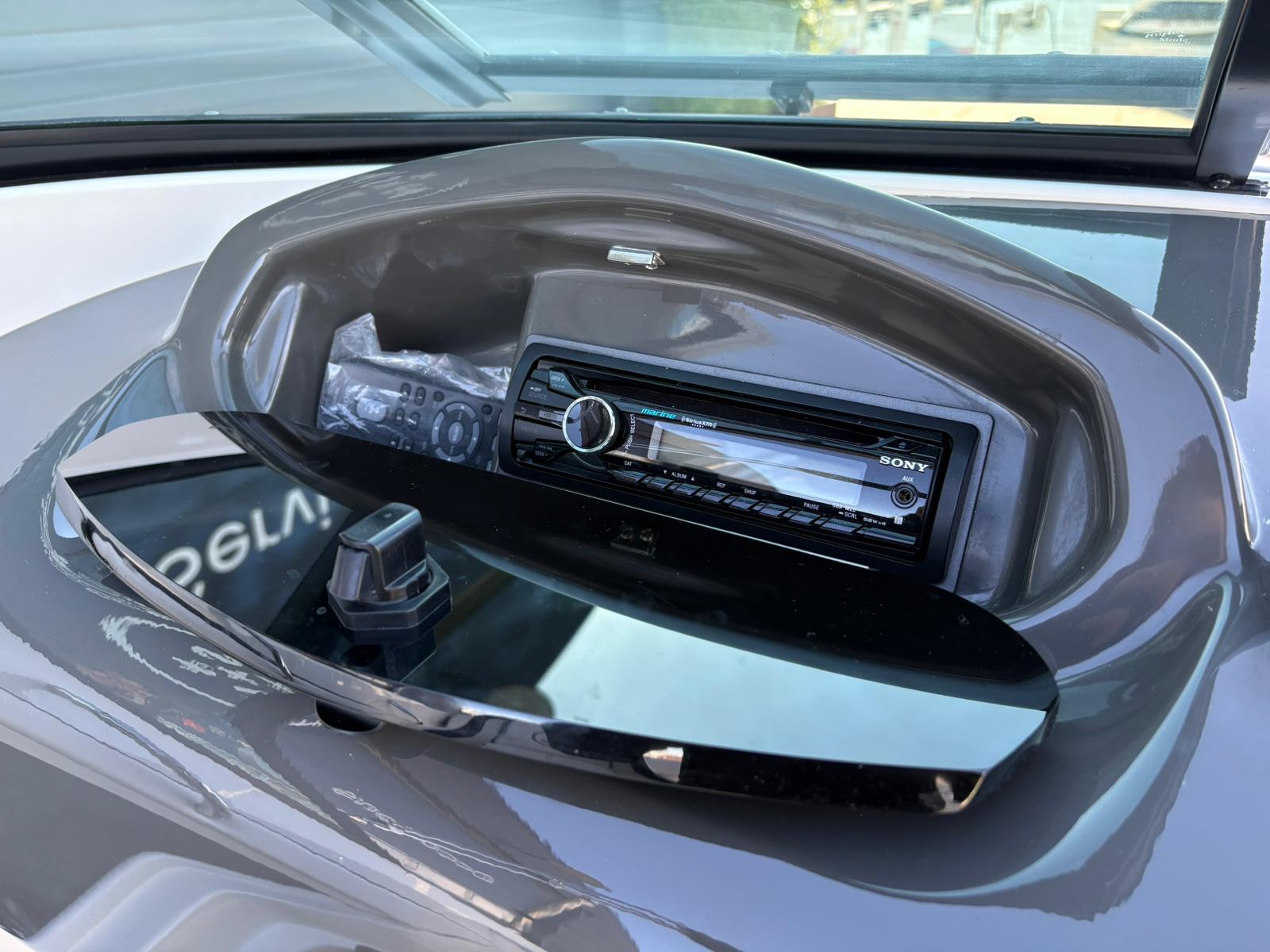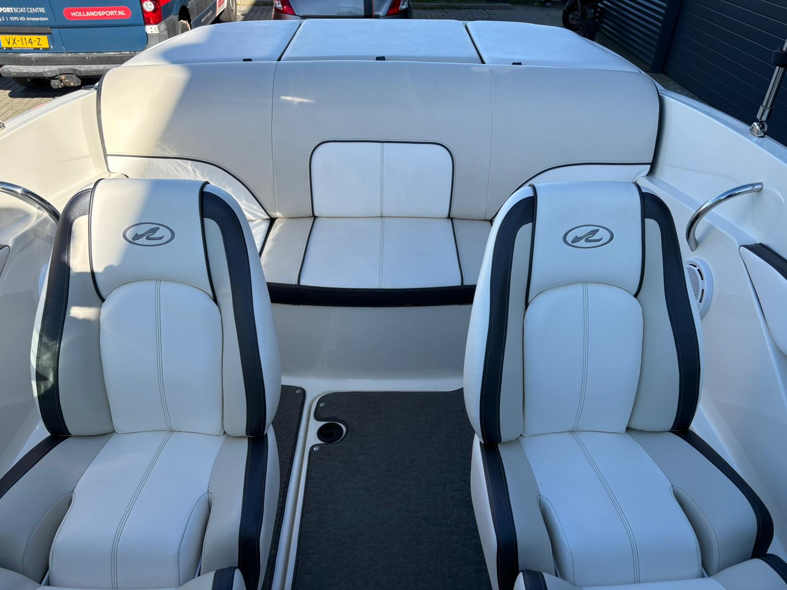 De stuurpositie is sportief en overzichtelijk uitgevoerd met klassieke analoge klokken, wat zorgt voor een tijdloze uitstraling en directe controle. De geïntegreerde dieptemeter geeft extra zekerheid tijdens het varen. Aan boord ontbreekt het bovendien niet aan comfort. De aanwezige geluidsinstallatie zorgt voor sfeer tijdens zonnige dagen op het water, terwijl de bimini top aangename schaduw biedt wanneer u even uit de zon wilt zitten.