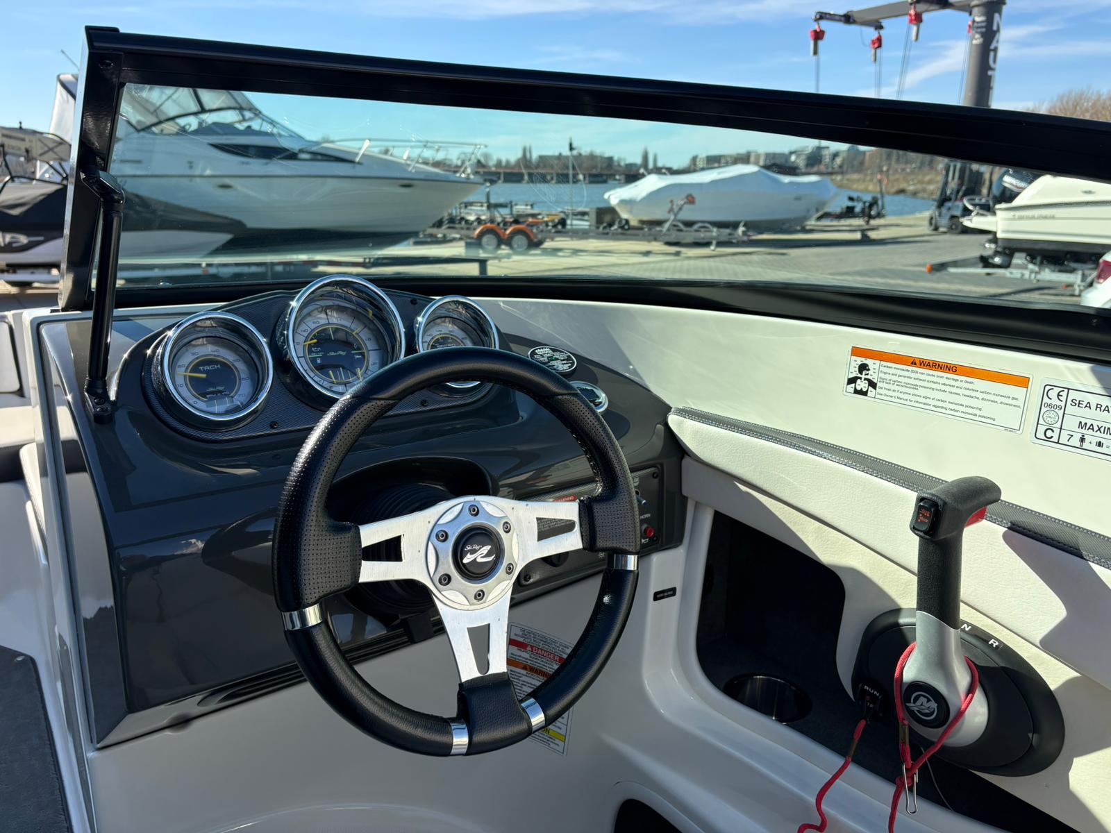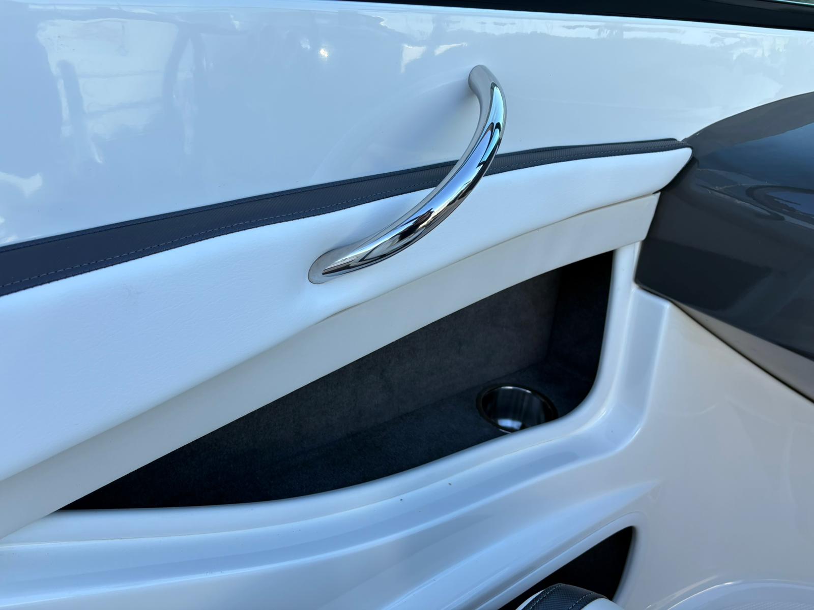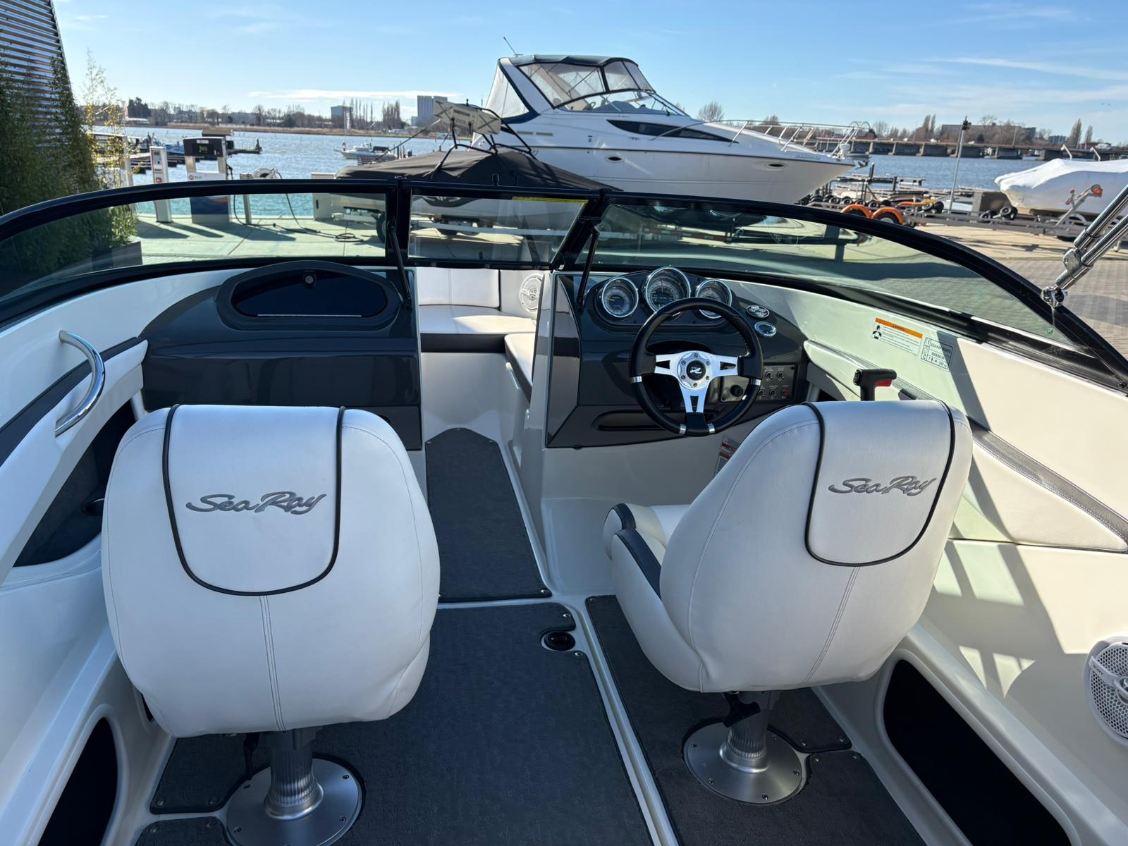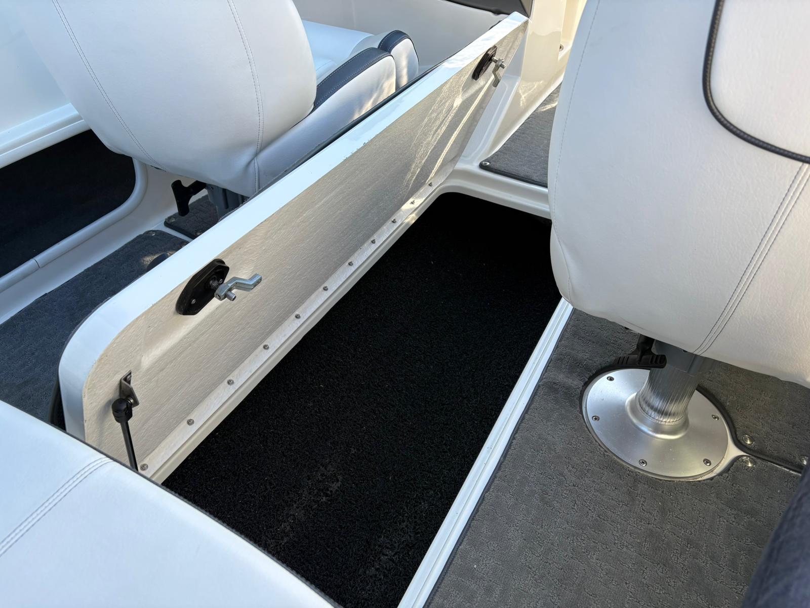 De stuurpositie is sportief en overzichtelijk uitgevoerd met klassieke analoge klokken, wat zorgt voor een tijdloze uitstraling en directe controle. De geïntegreerde dieptemeter geeft extra zekerheid tijdens het varen. Aan boord ontbreekt het bovendien niet aan comfort. De aanwezige geluidsinstallatie zorgt voor sfeer tijdens zonnige dagen op het water, terwijl de bimini top aangename schaduw biedt wanneer u even uit de zon wilt zitten.