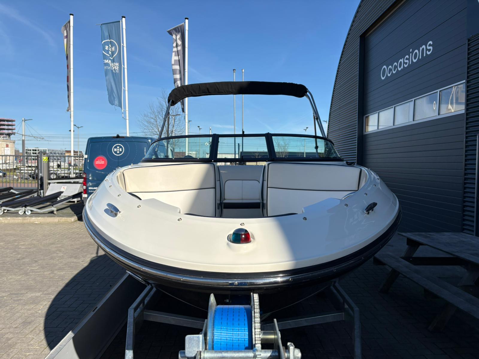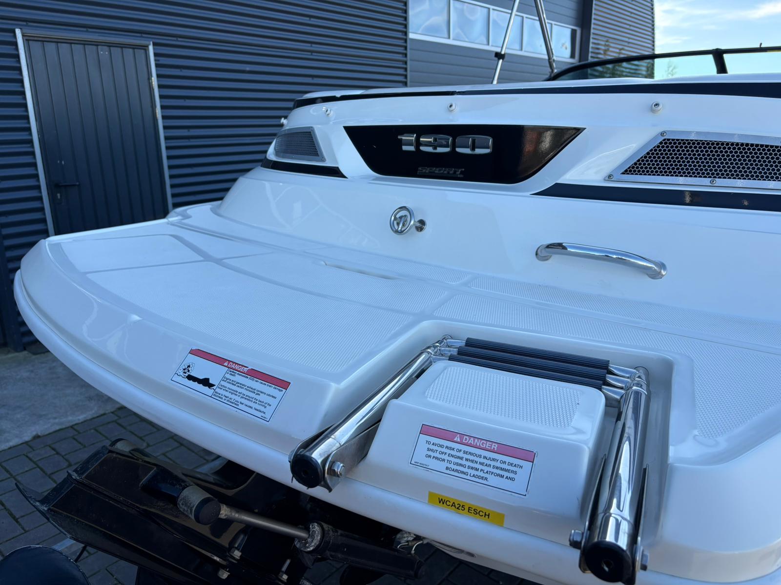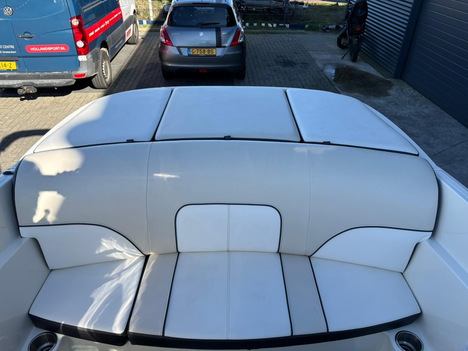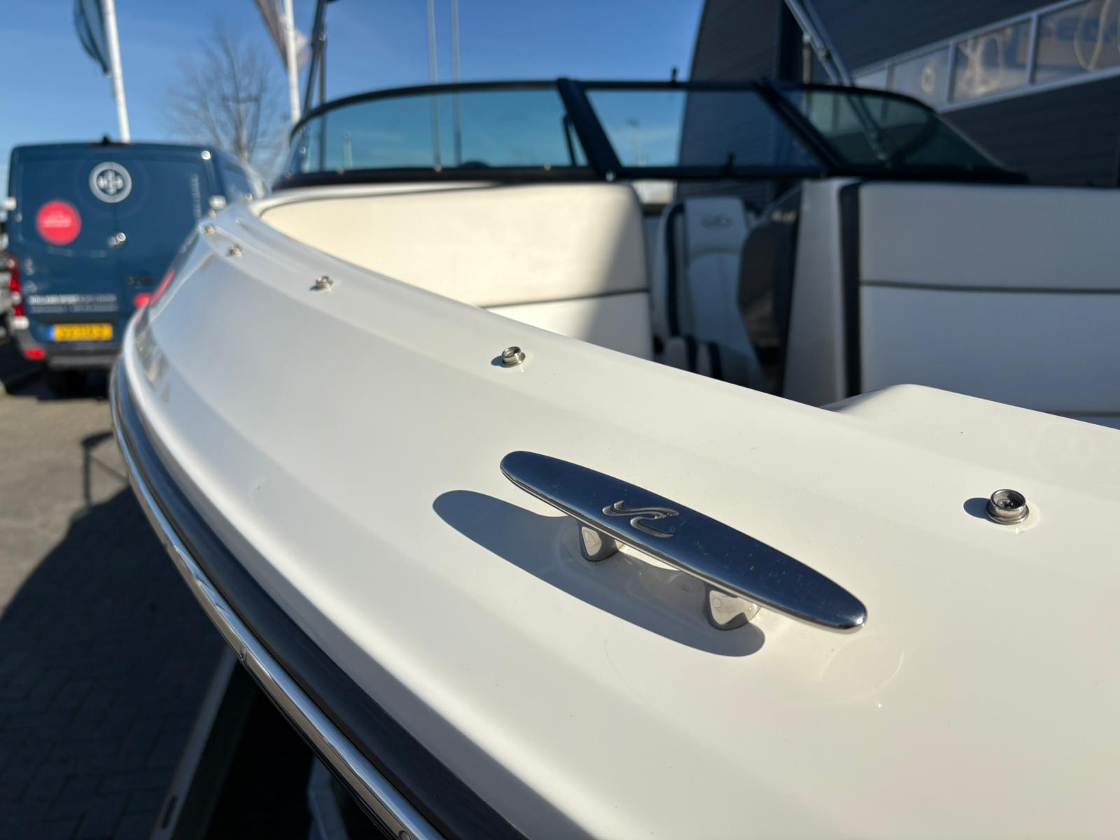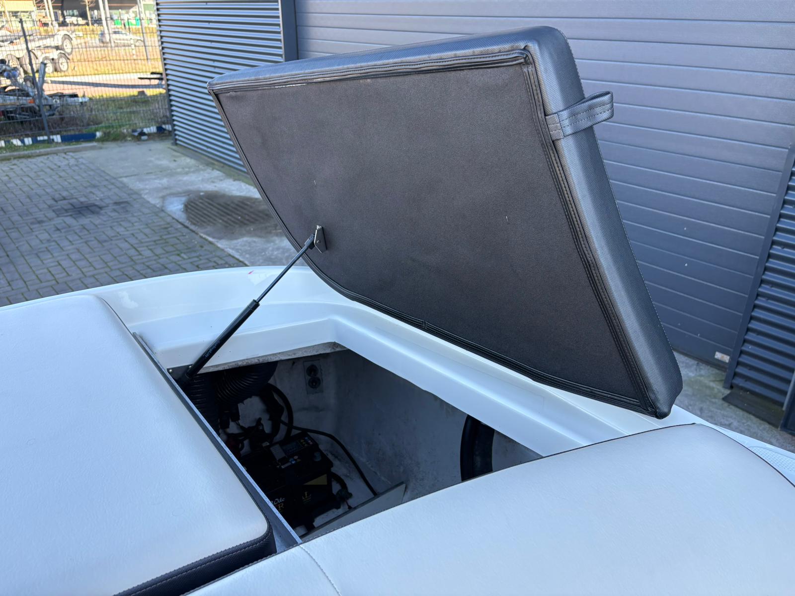Wat deze uitvoering extra aantrekkelijk maakt, is het verlengde zwemplateau. Dit biedt niet alleen extra ruimte achterop, maar maakt ook zwemmen en watersport nog comfortabeler. De boegcover en tonneau cover zorgen ervoor dat de boot netjes en beschermd blijft wanneer zij niet in gebruik is, wat bijdraagt aan de uitstekende staat waarin zij verkeert.