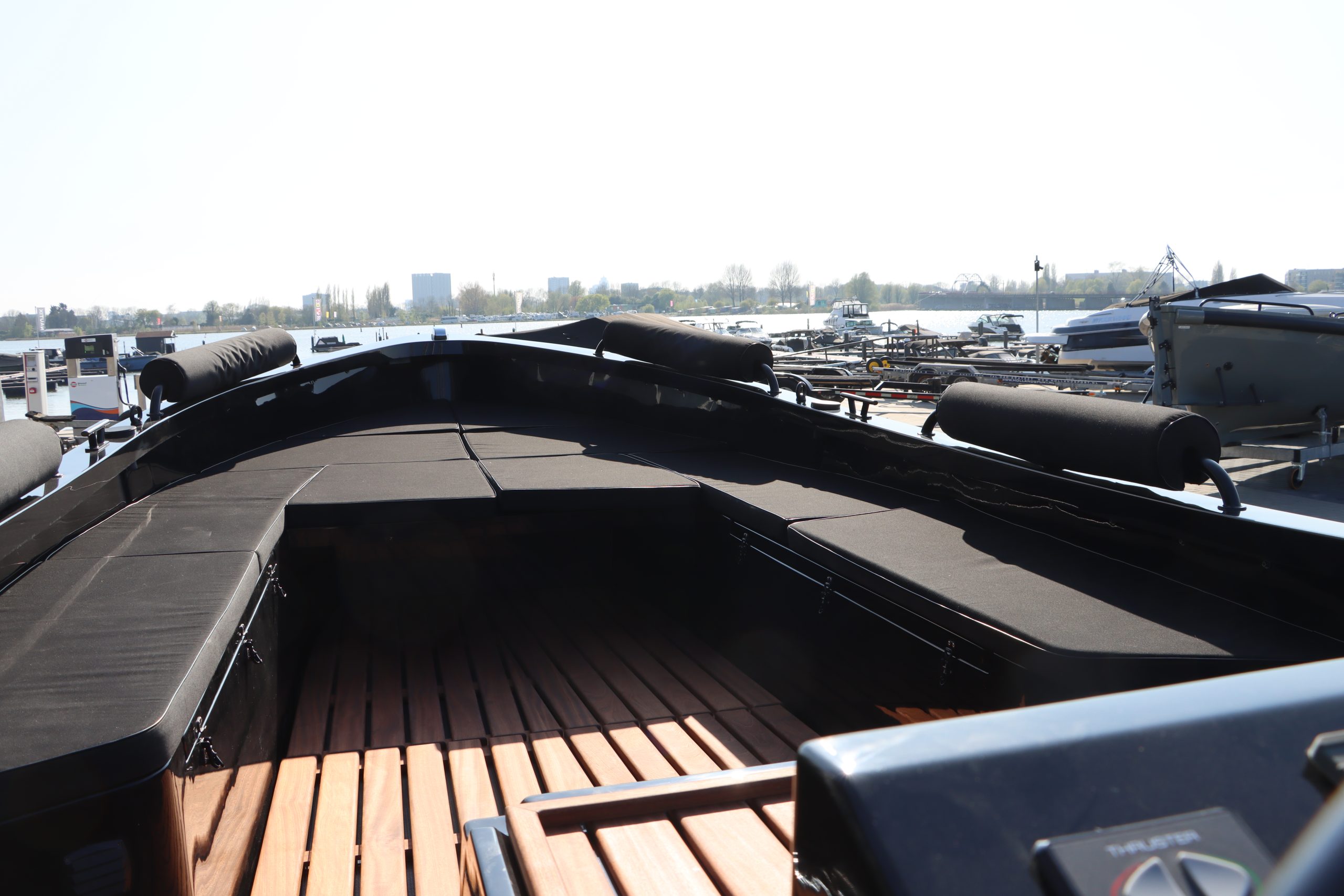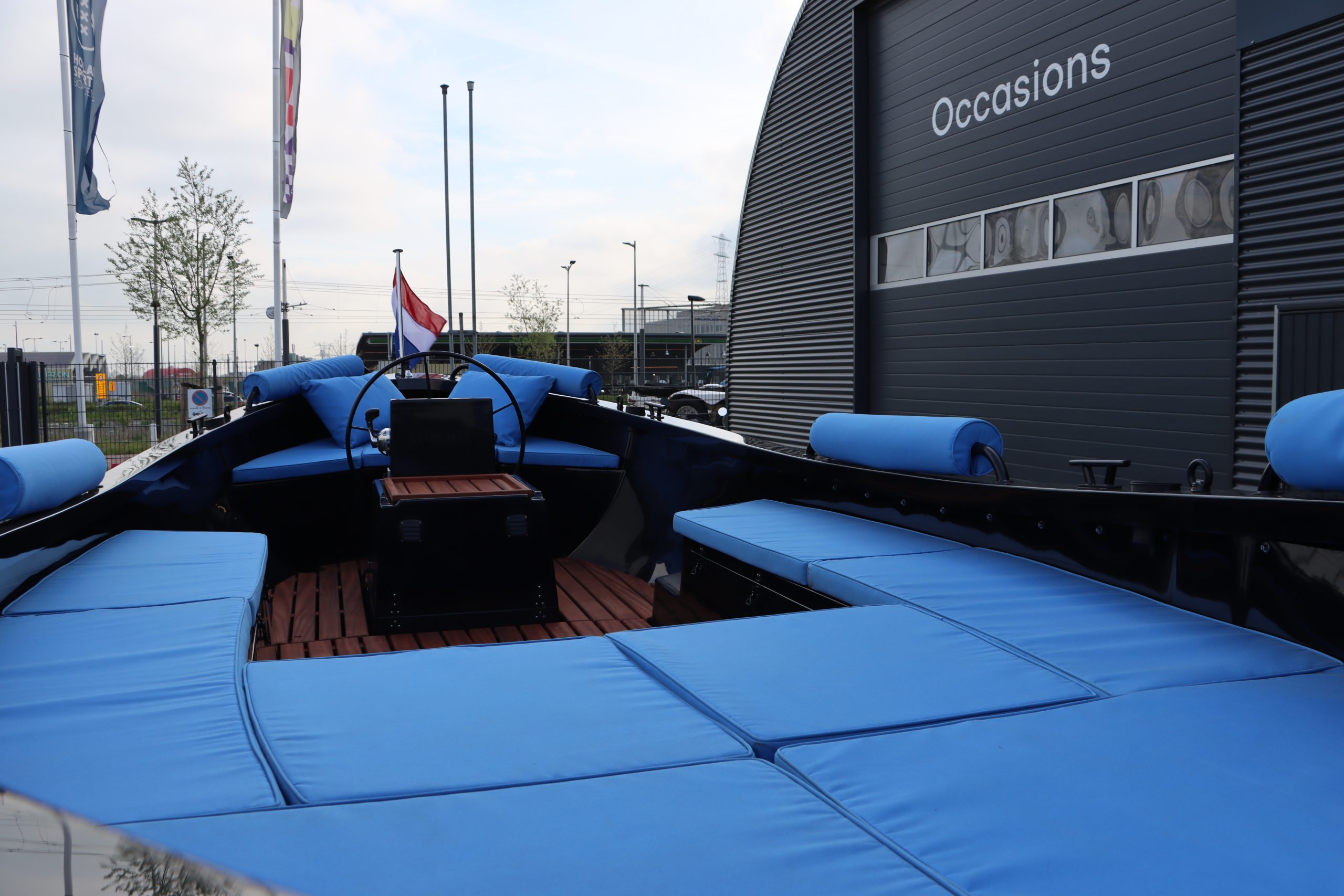 Deze nieuw te leveren sloep is uitgerust met een fluisterstille elektrische Vetus E-Line motor (6 kW), inclusief boegschroef voor eenvoudig manoeuvreren. De kuip is voorzien van een luxe hardhouten vloer en een stijlvolle grp tafel, waardoor elke vaartocht een exclusieve beleving wordt.