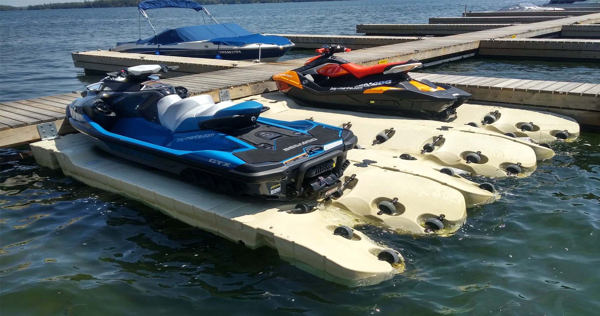 Met de modulaire drijvende steigerdelen van EZ-Dock bouw je heel eenvoudig modulair jouw eigen docksysteem. Zoek je een lift voor je waterscooter of jetski, dan is het EZ-PORT systeem echt ideaal. Je vaart er heel gemakkelijk op en af en houdt je voeten droog bij het aan boord stappen.